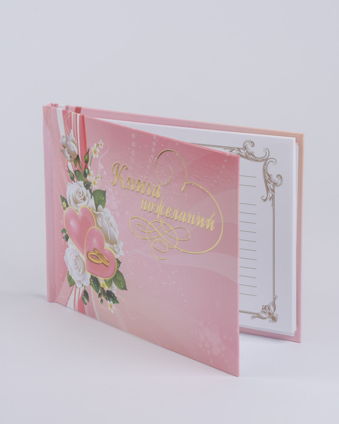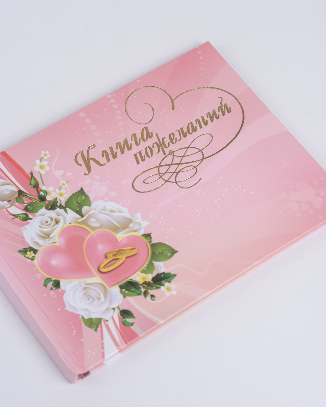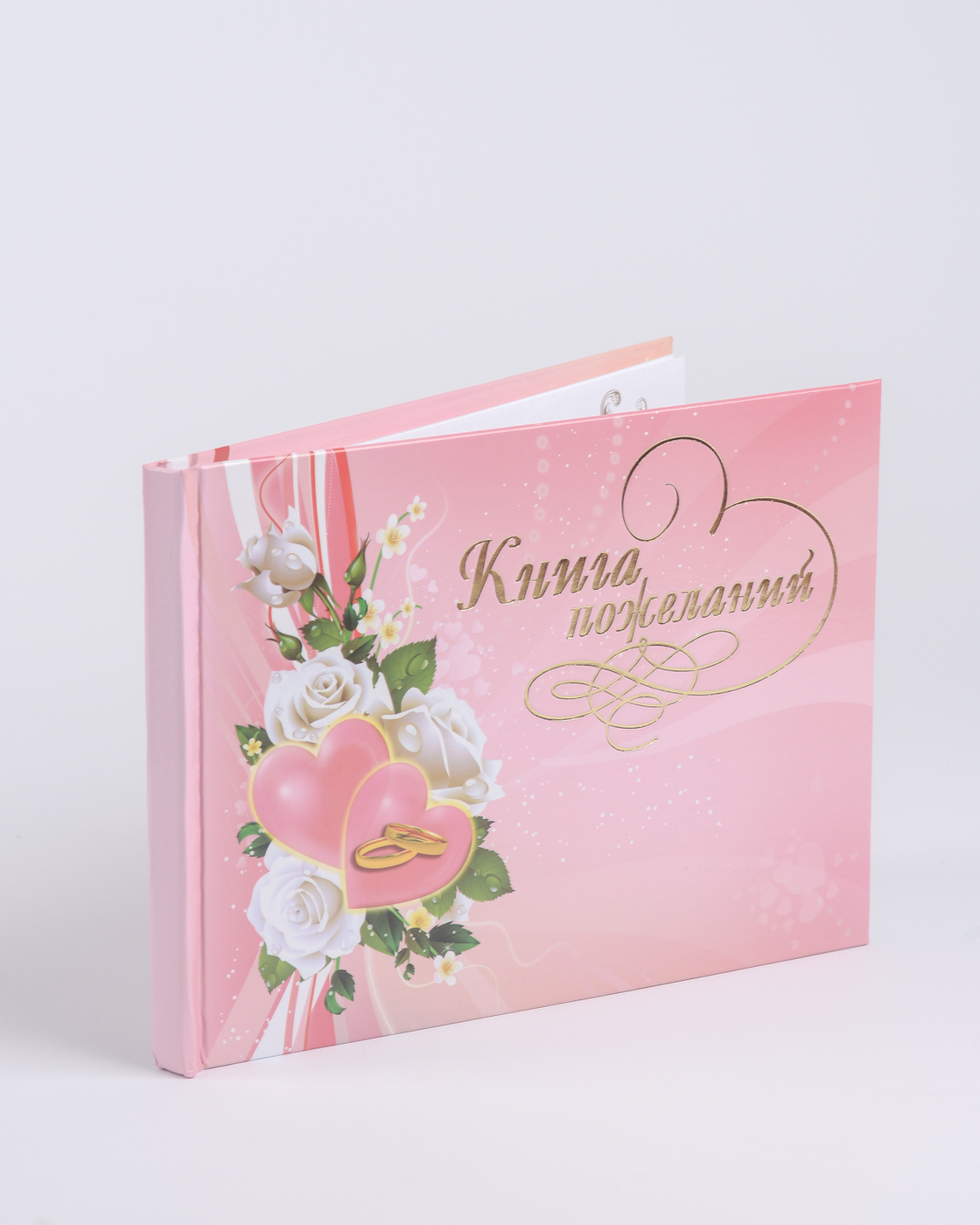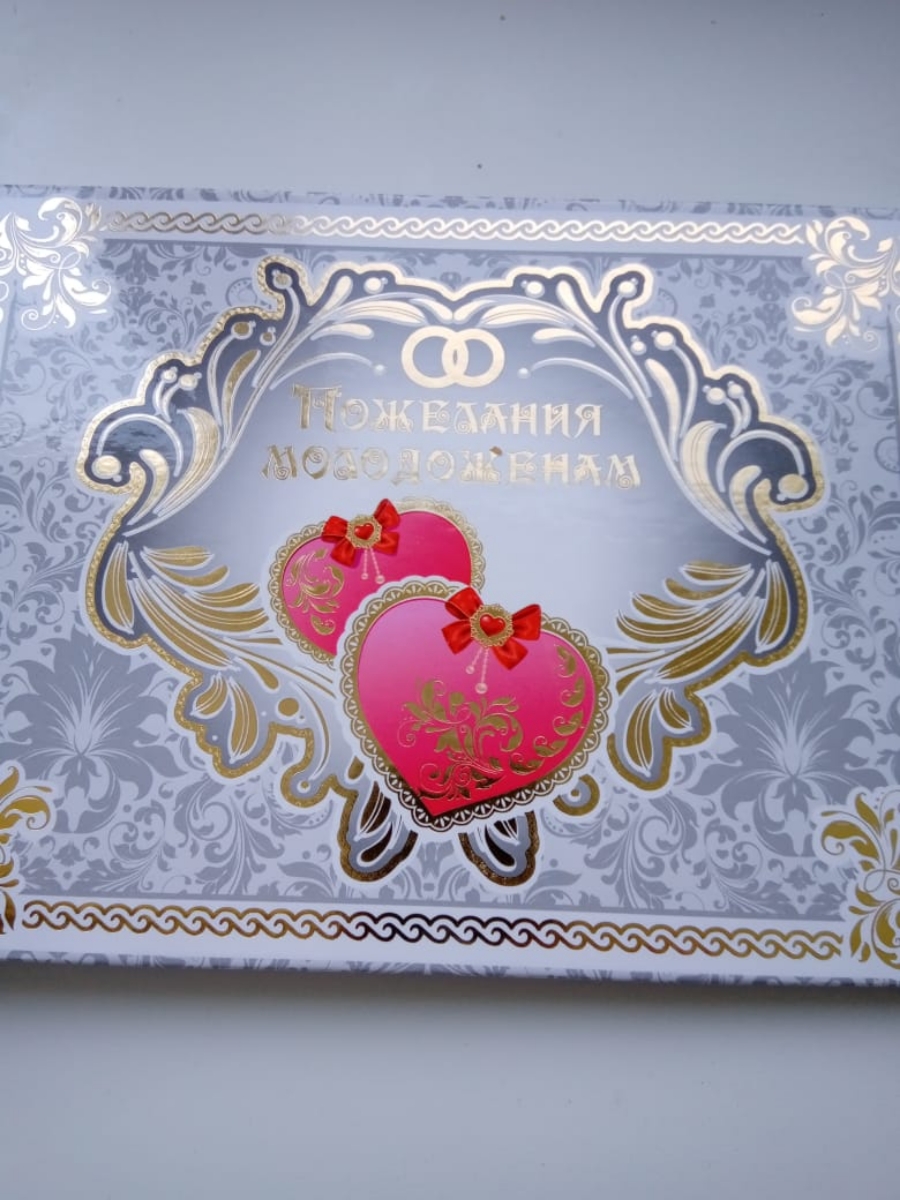 Альбом для пожеланий молодоженам на свадьбу Love is белого цвета с золотым рисунком и надписью, А5