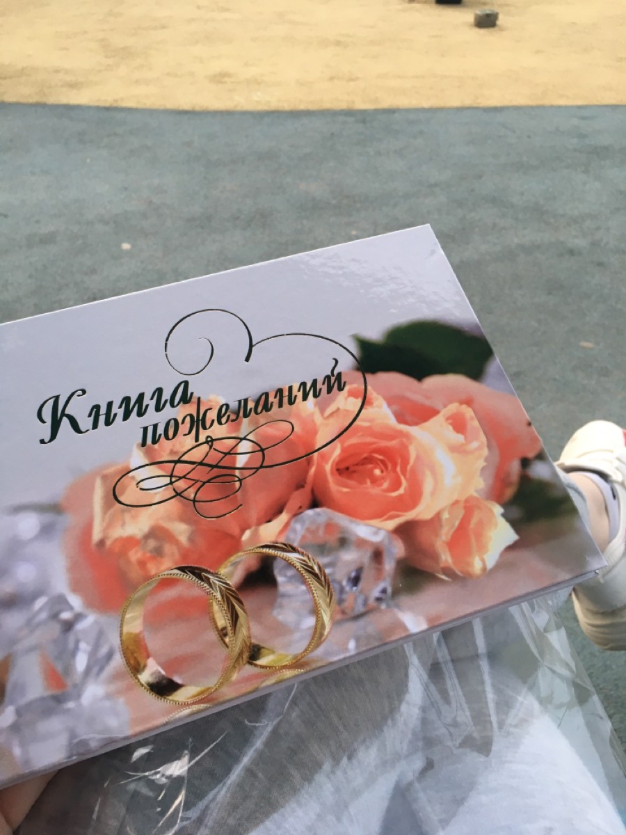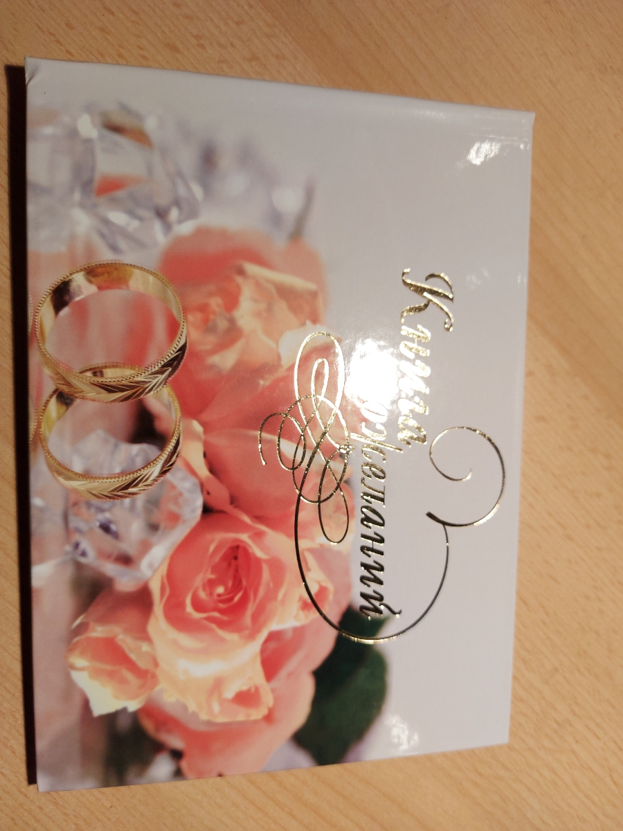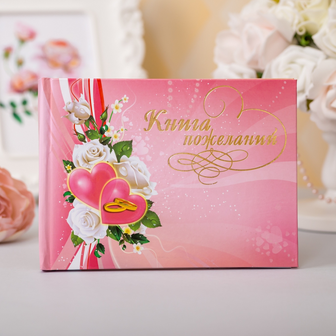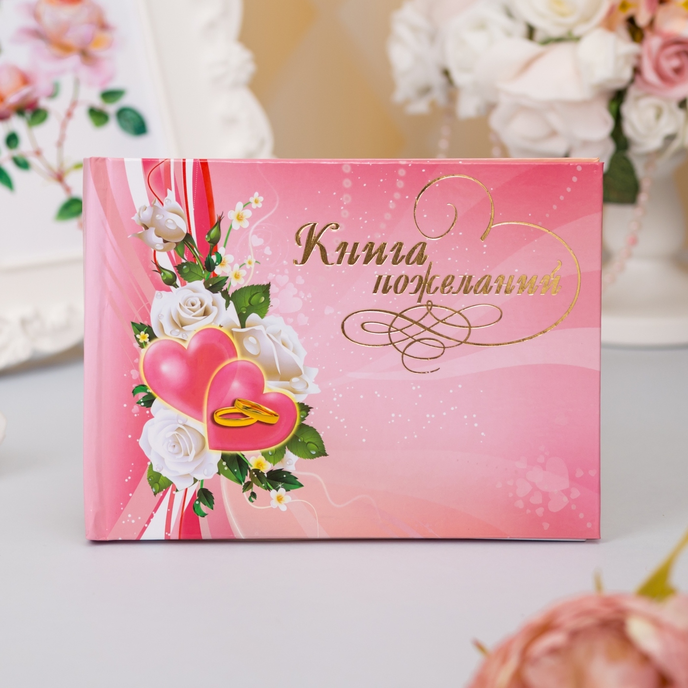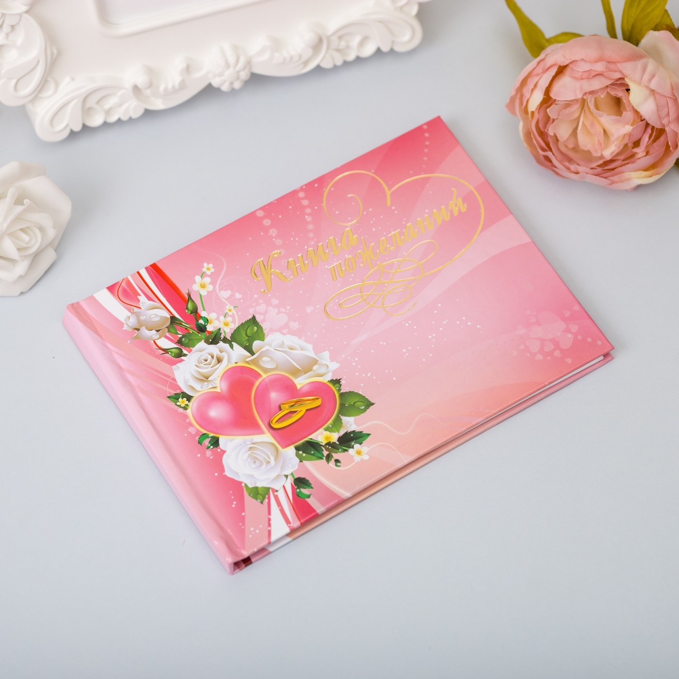 Альбом для пожеланий молодоженам на свадьбу Love is белого цвета с золотым рисунком и надписью, А5