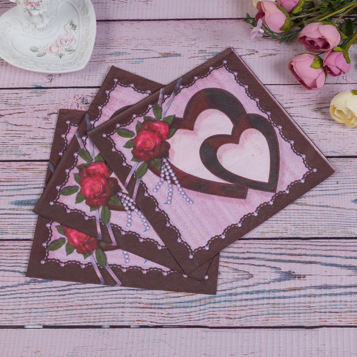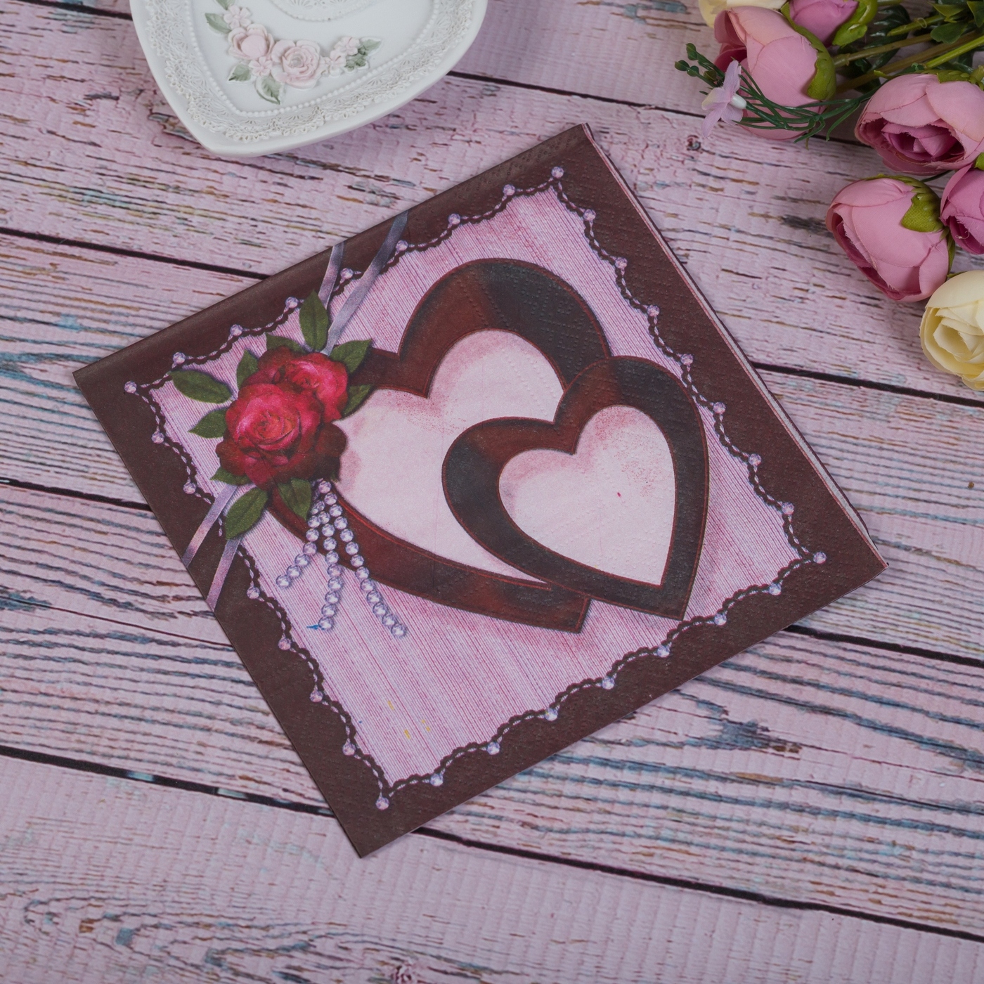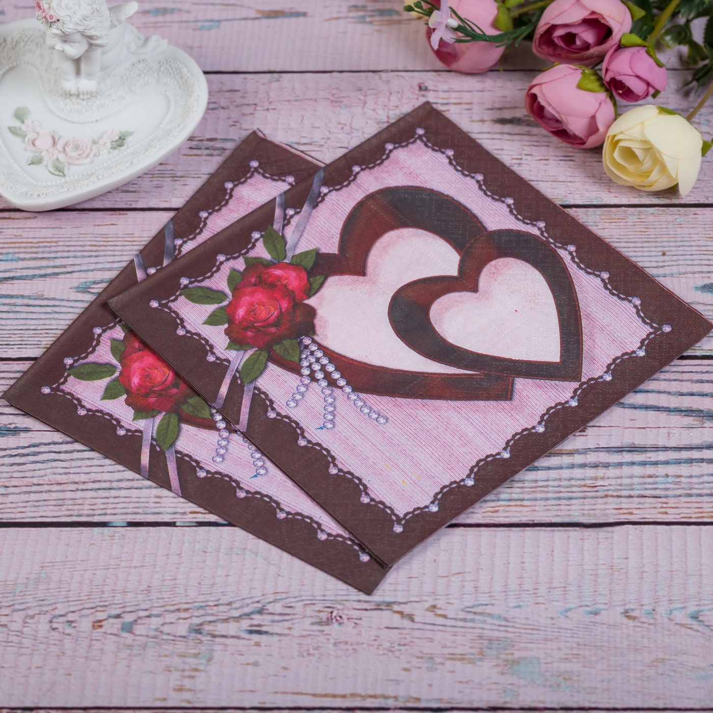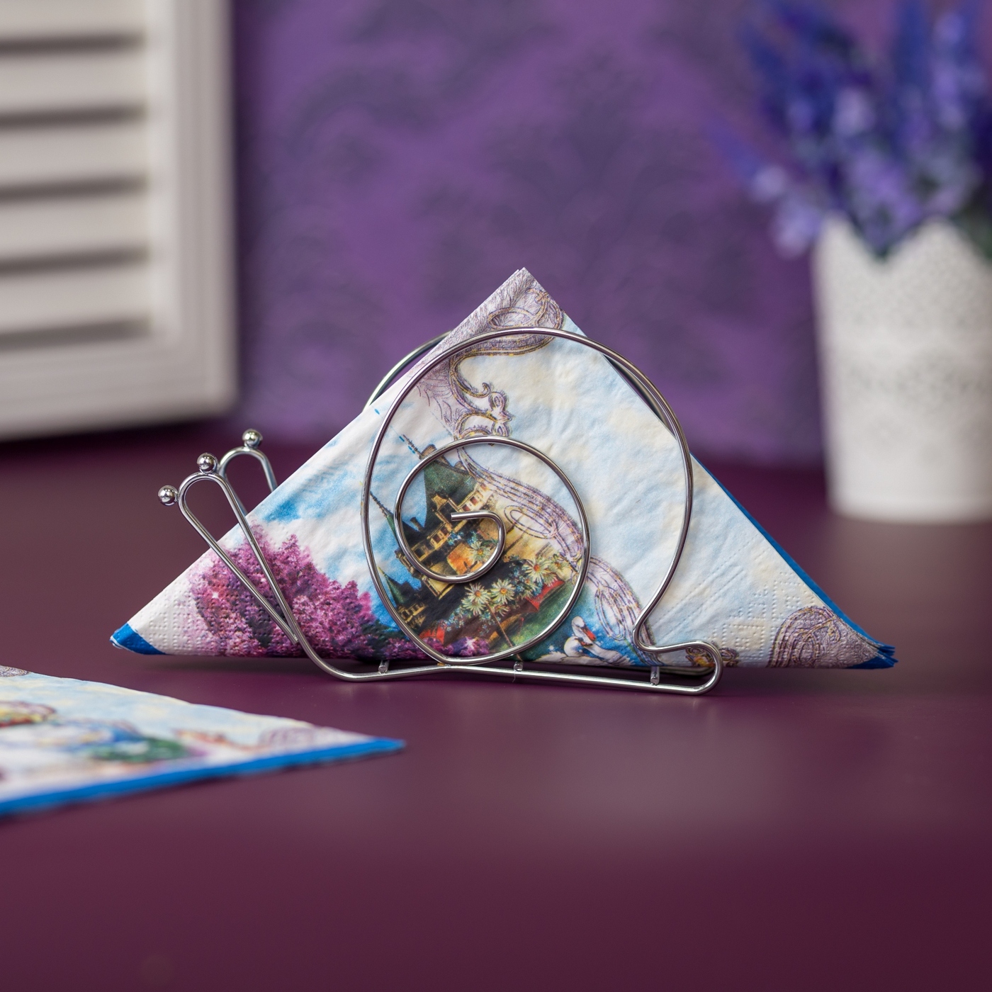 Салфетки праздничные "Свадьба во Флоренции" в лавандовых тонах, с рисунком замка, невесты, белых лебедей и кольцами, 3 пачки