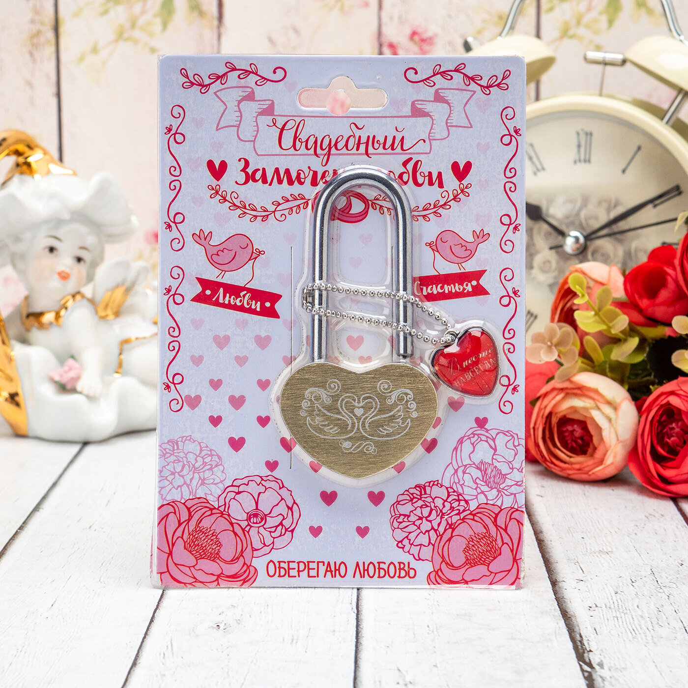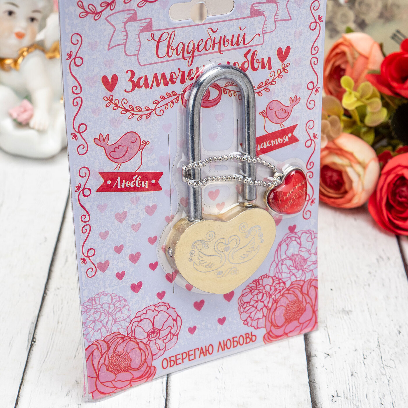 Свадебный декоративный замок для жениха и невесты на счастье амбарный из металла белого цвета