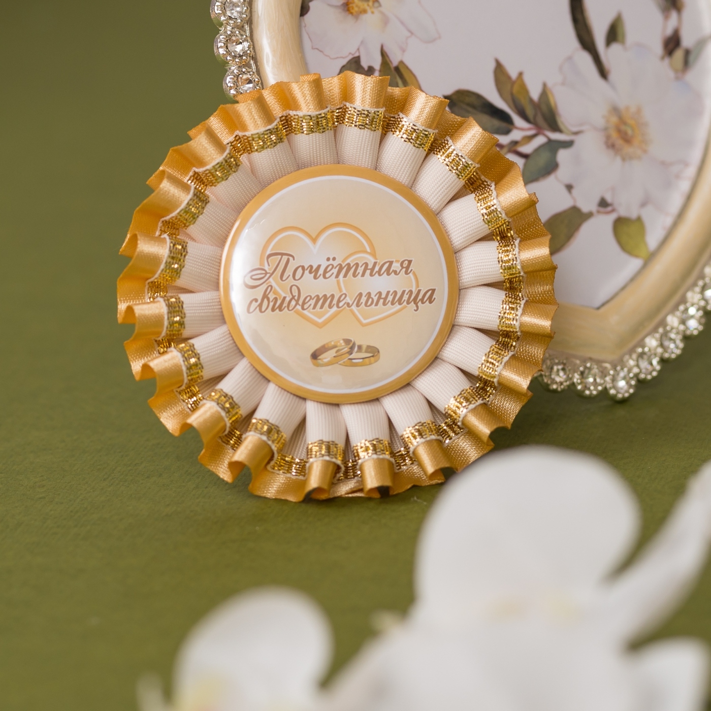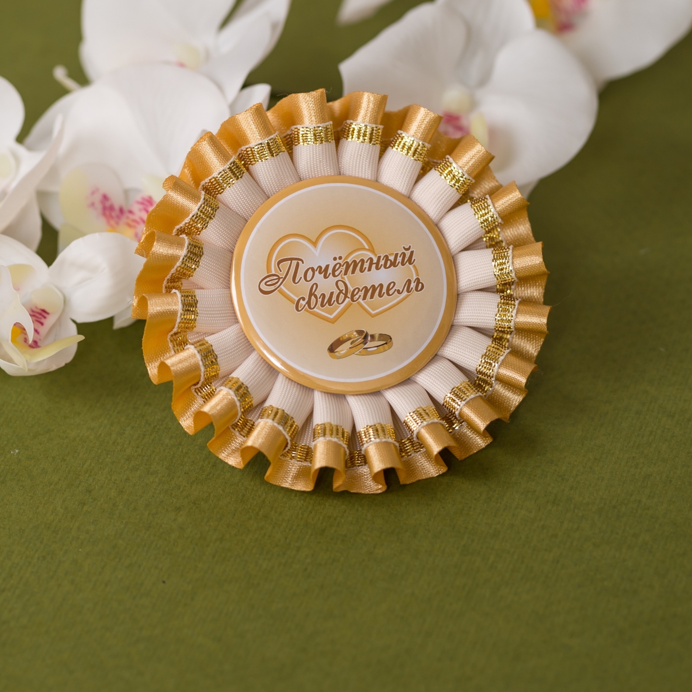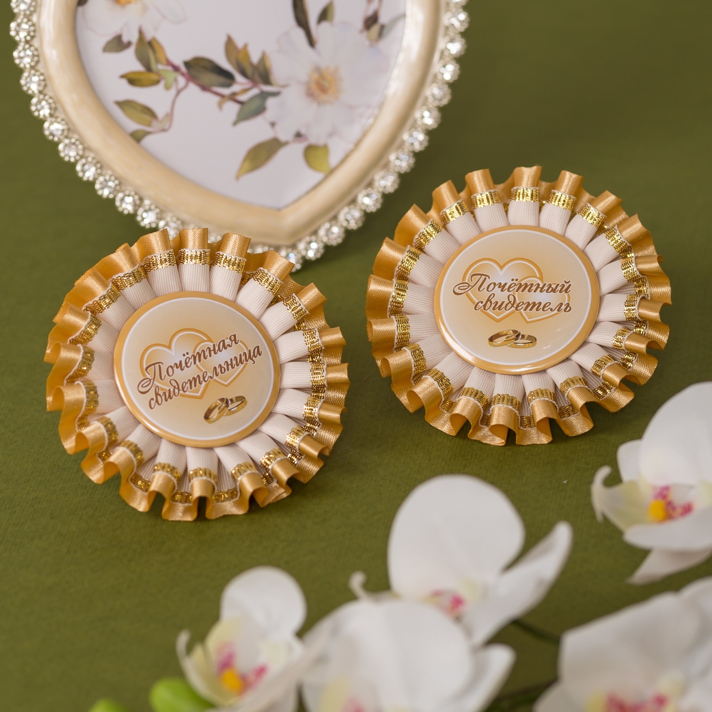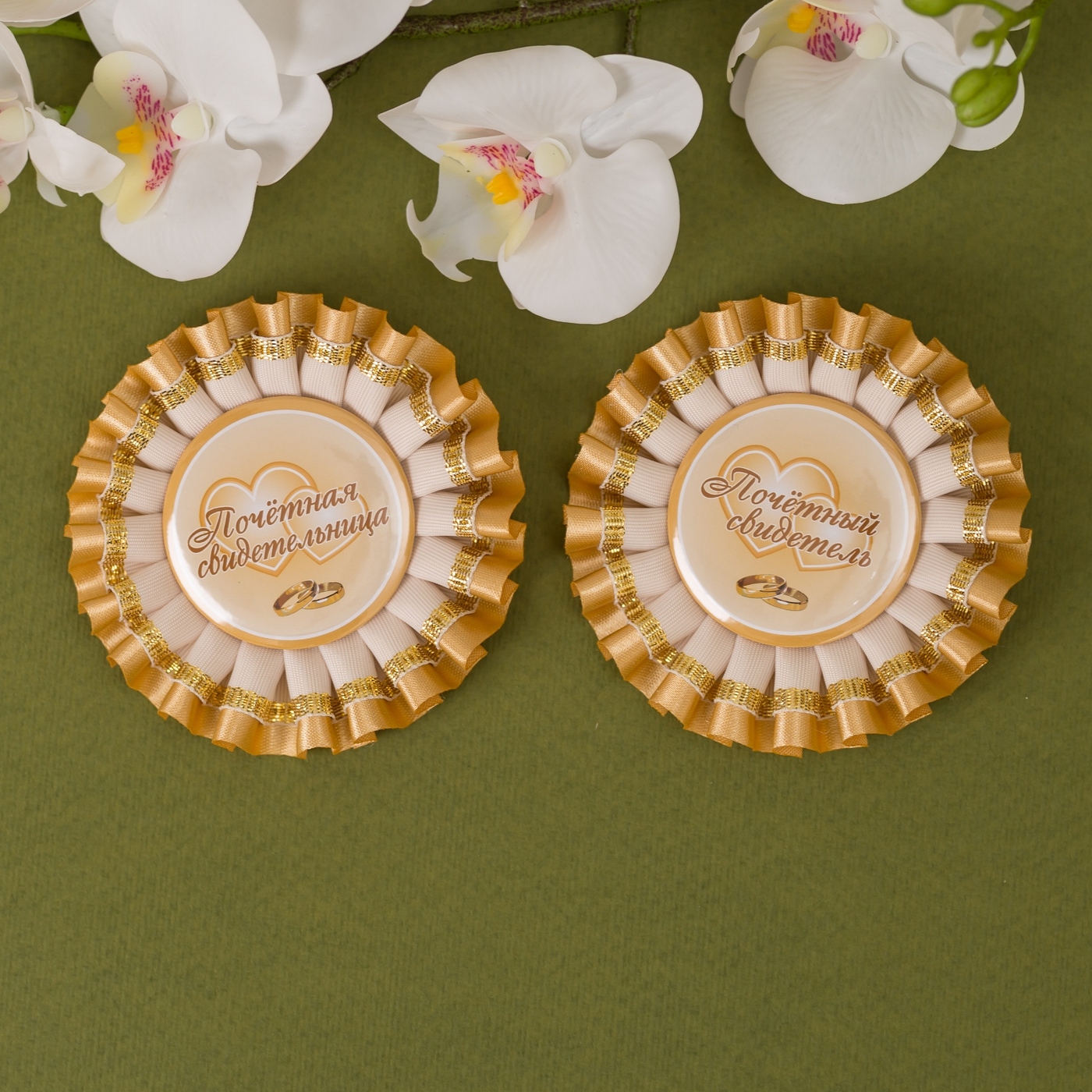 Стильные медали для свидетелей на свадьбу "Благородное золото" с сияющими атласными лентами, 2 штуки