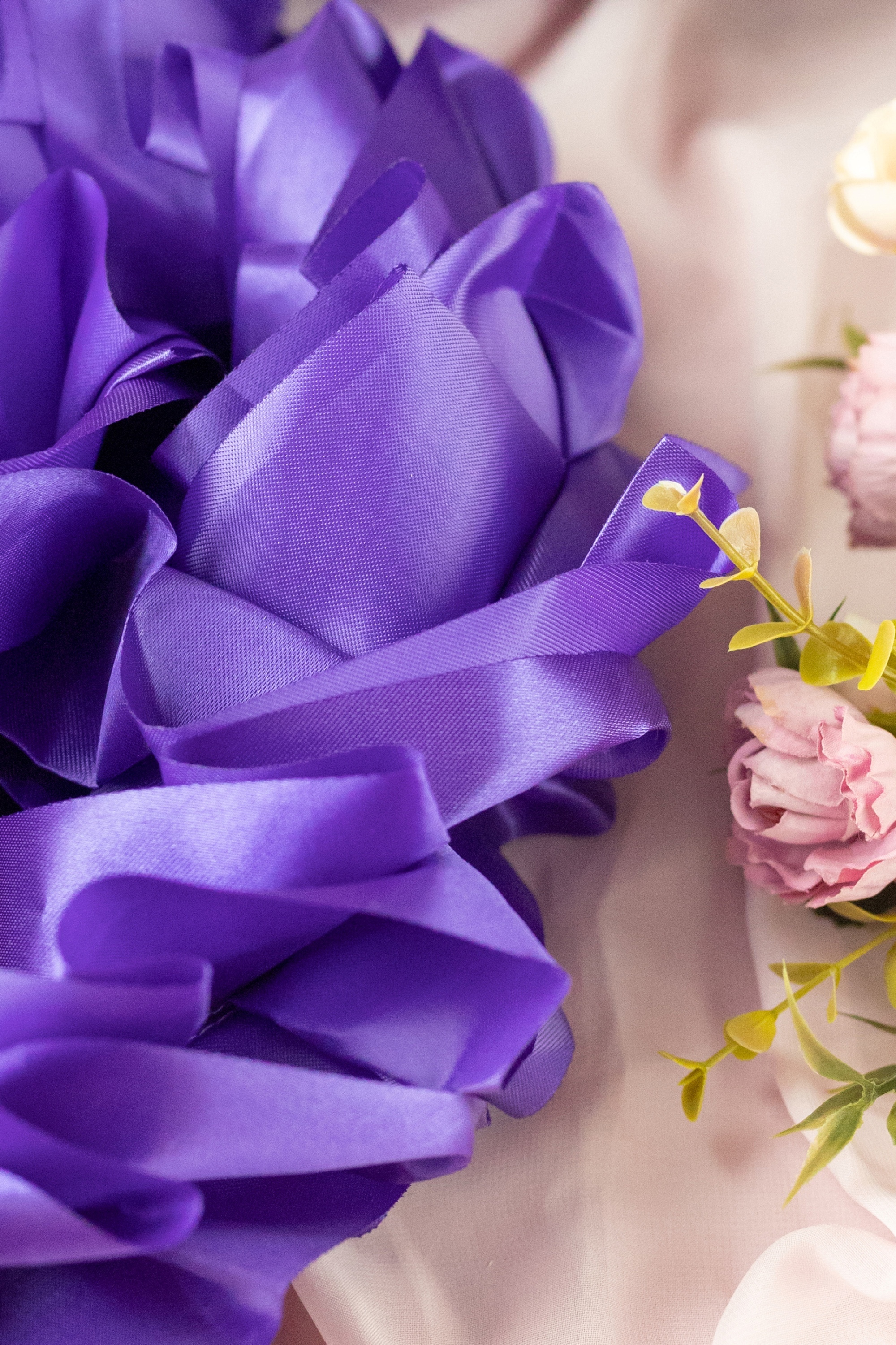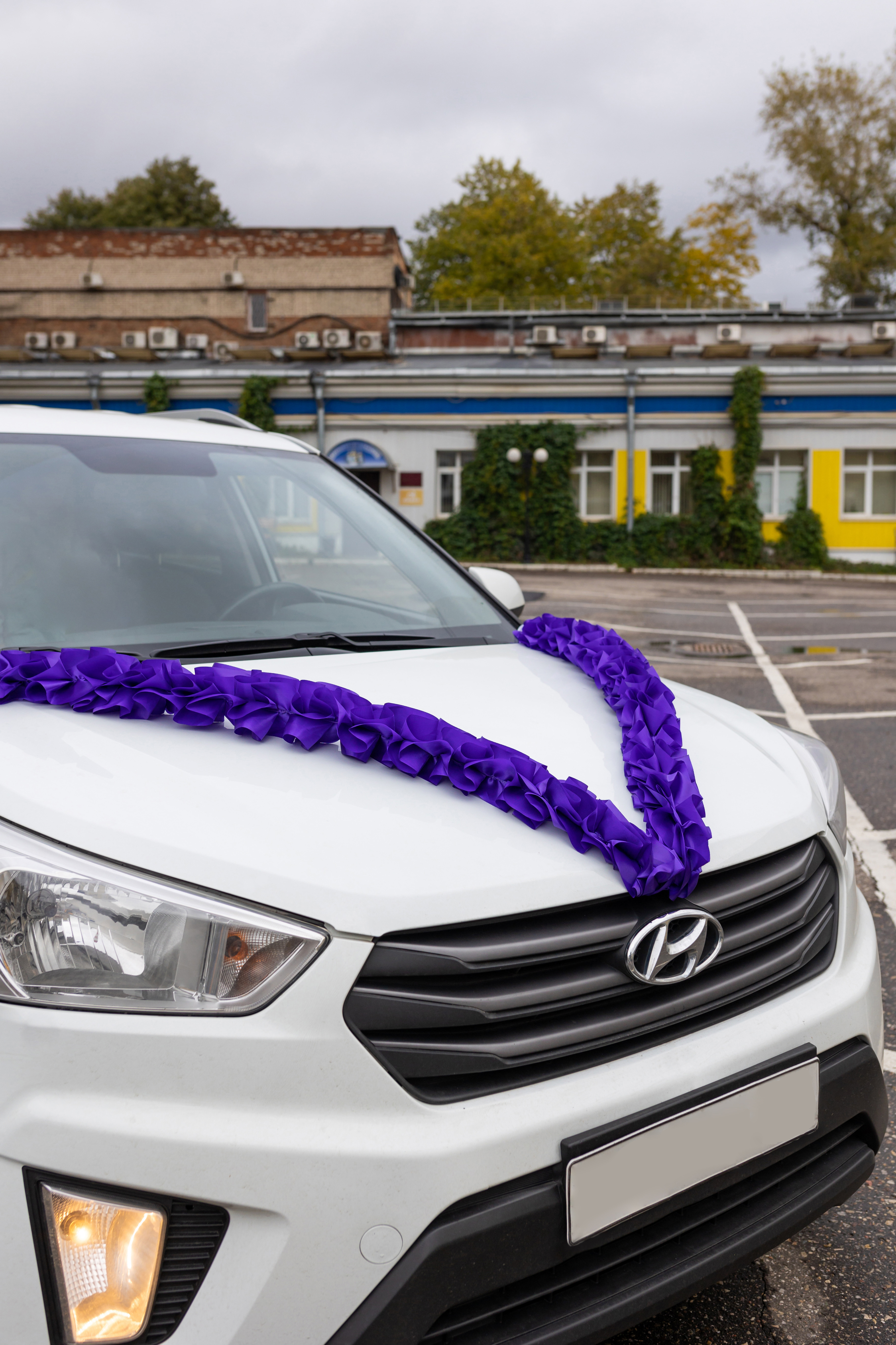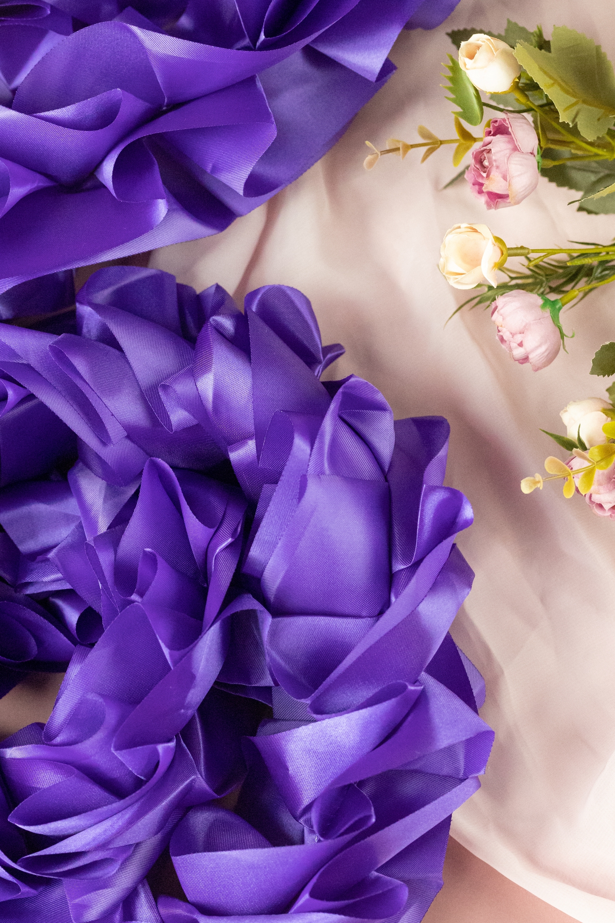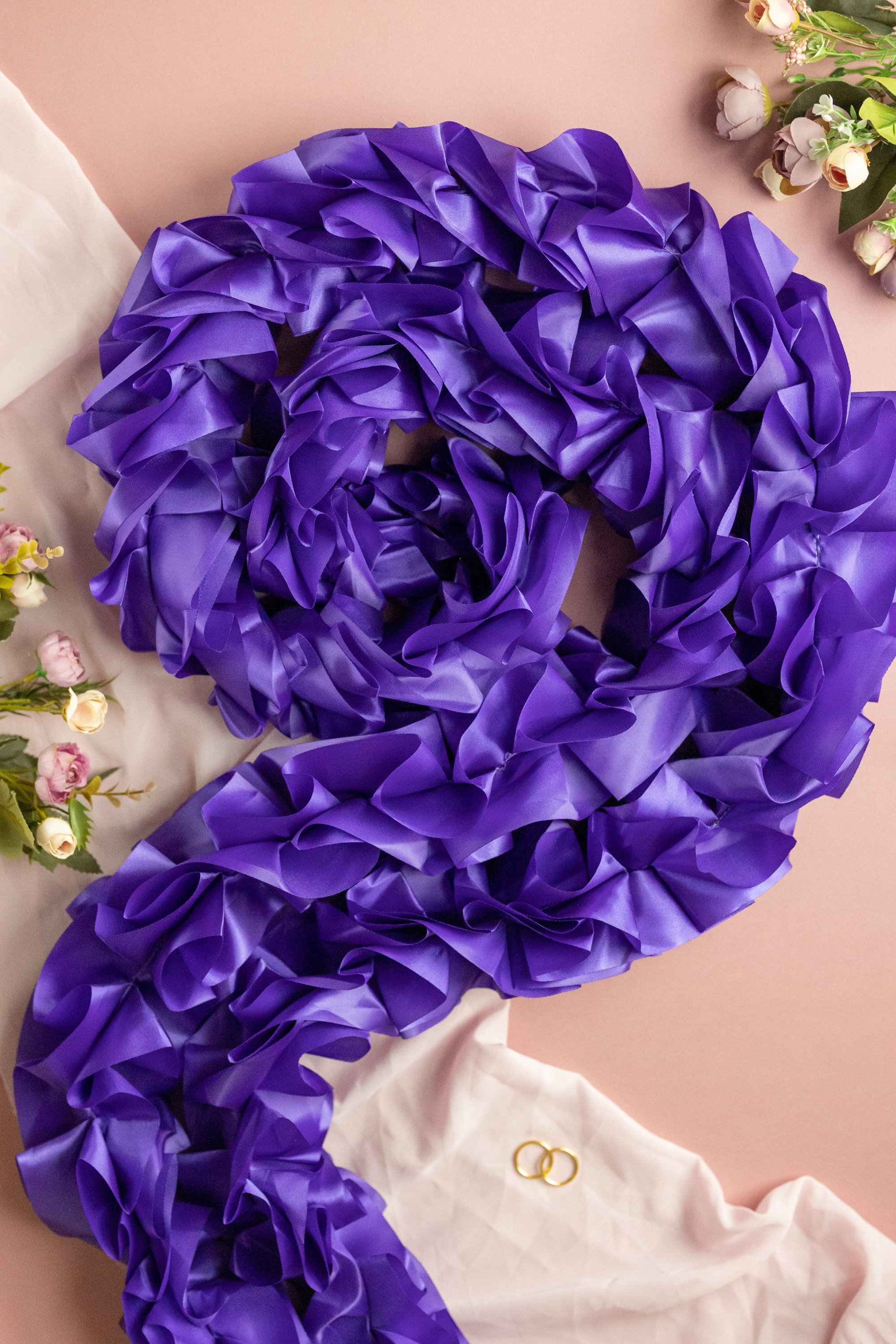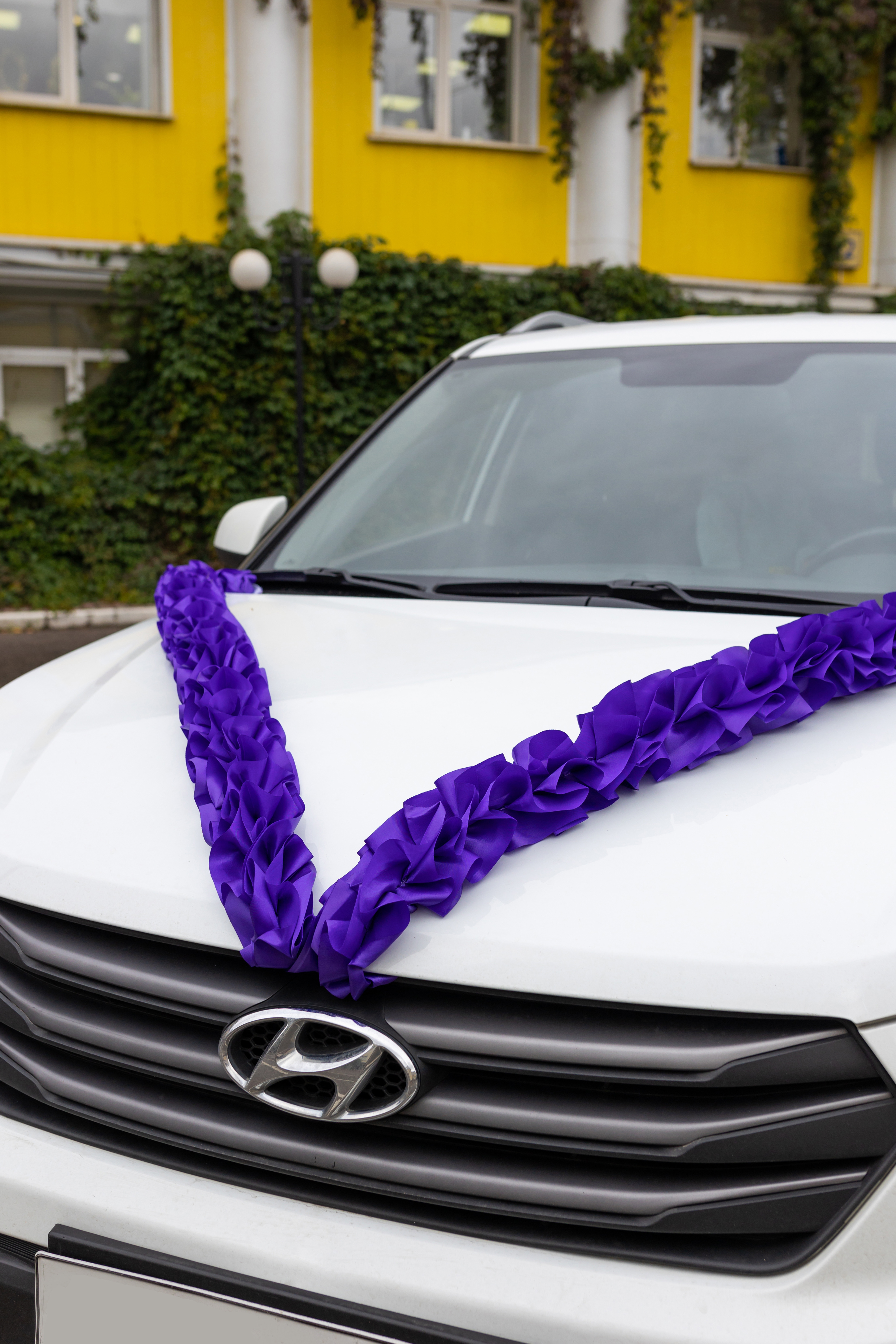 Лента - рюш из атласной ленты на капот свадебного авто для поездки в ЗАГС, цвет фиолетовый, 3 метра