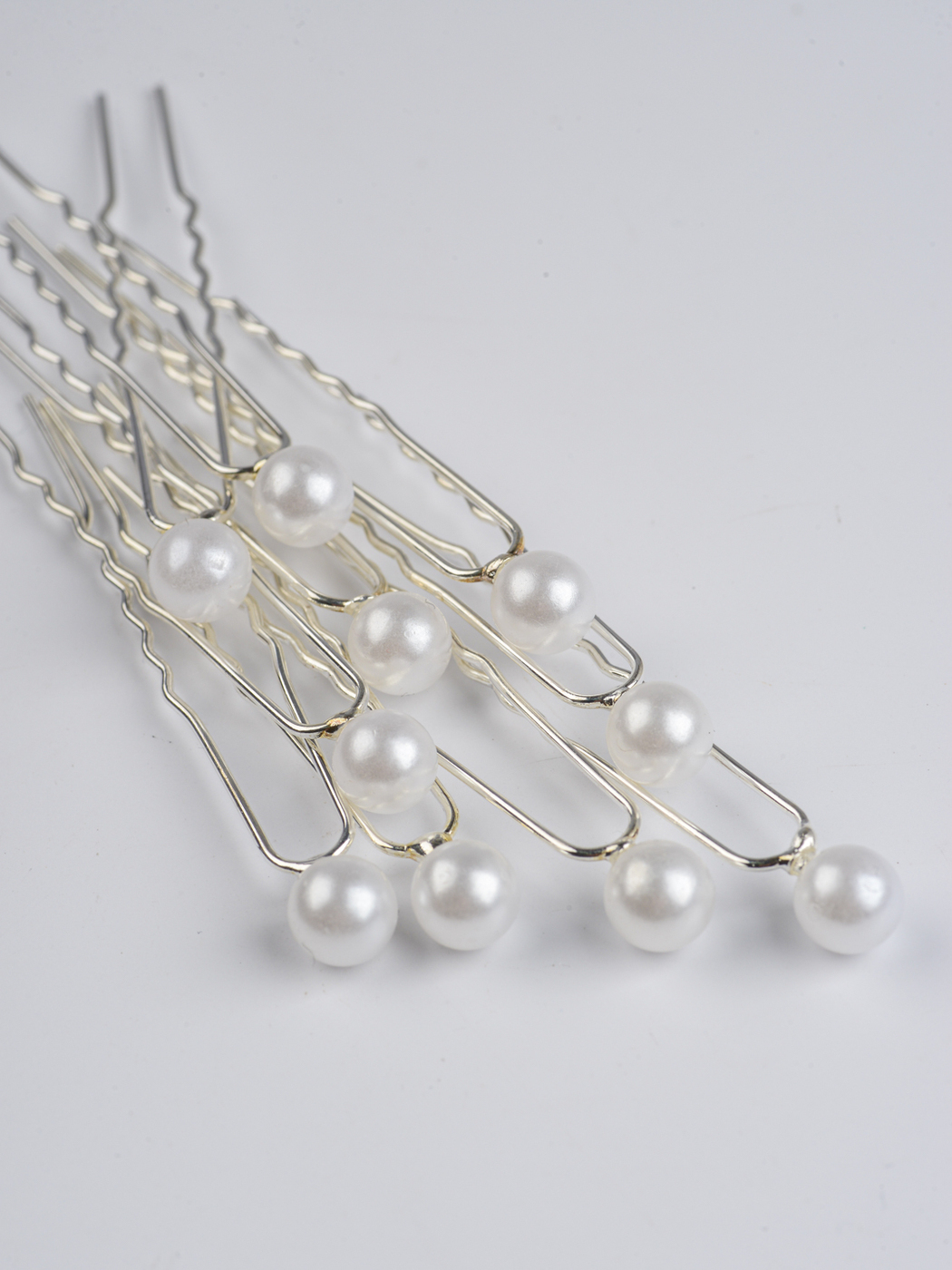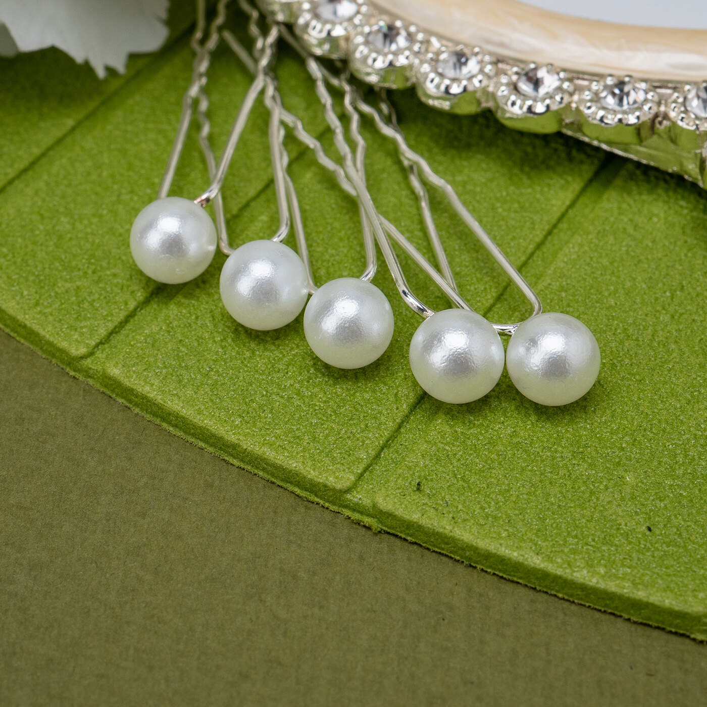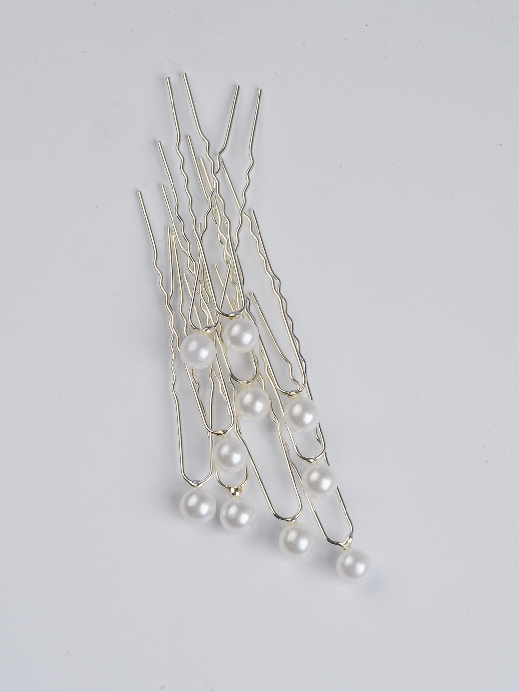 Элегантные шпильки для свадебной прически невесты "Мелкий жемчуг" с белой бусиной 6 мм, 10 штук