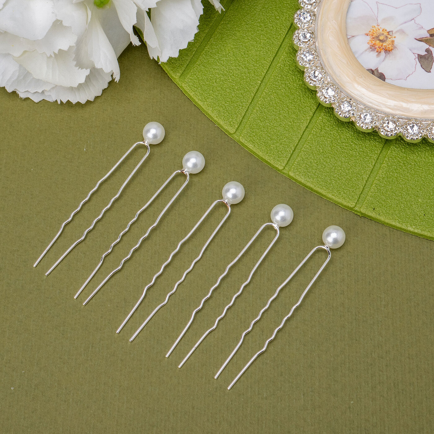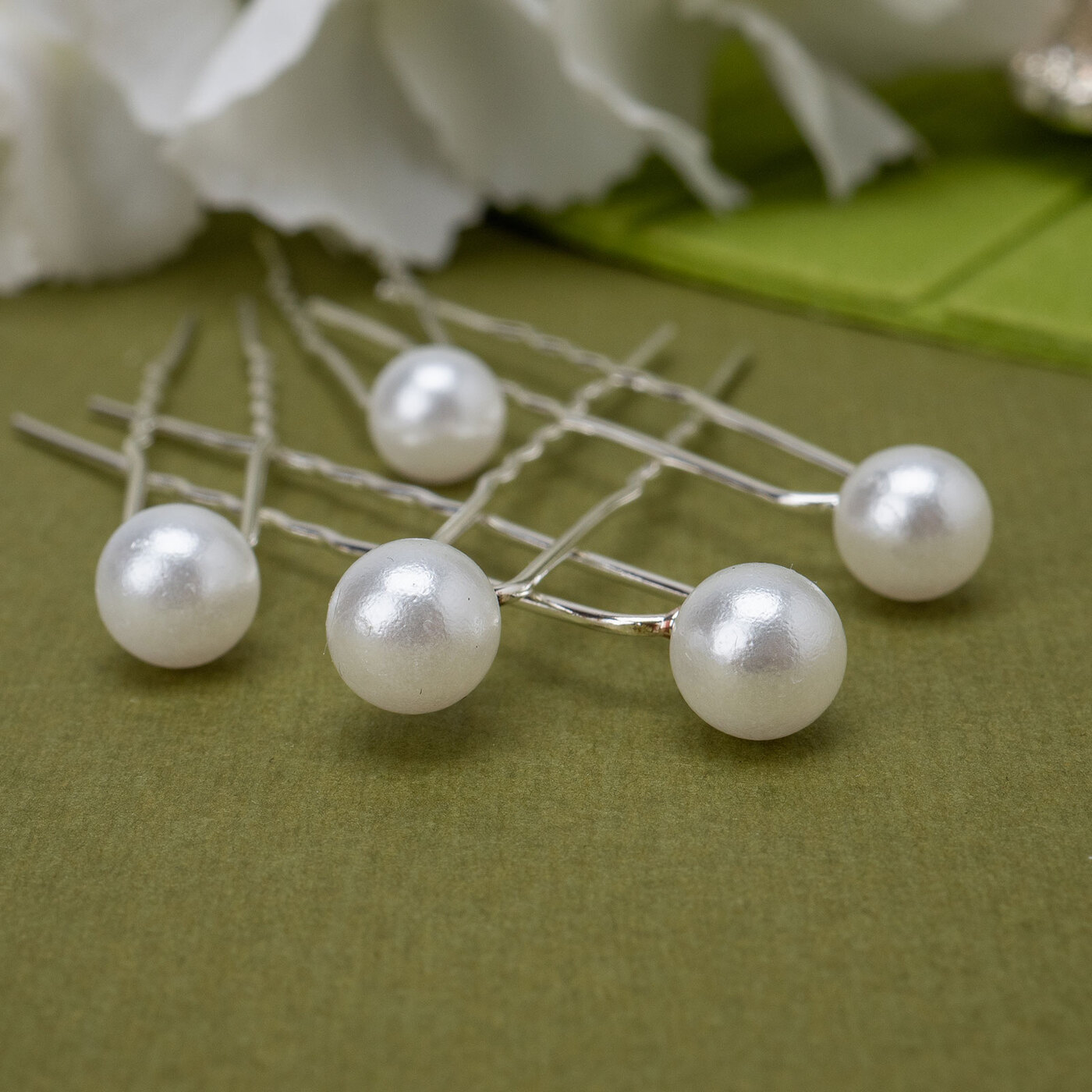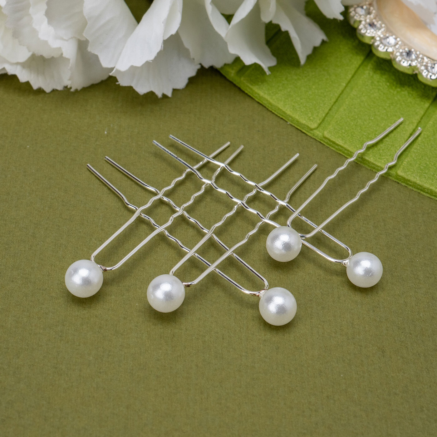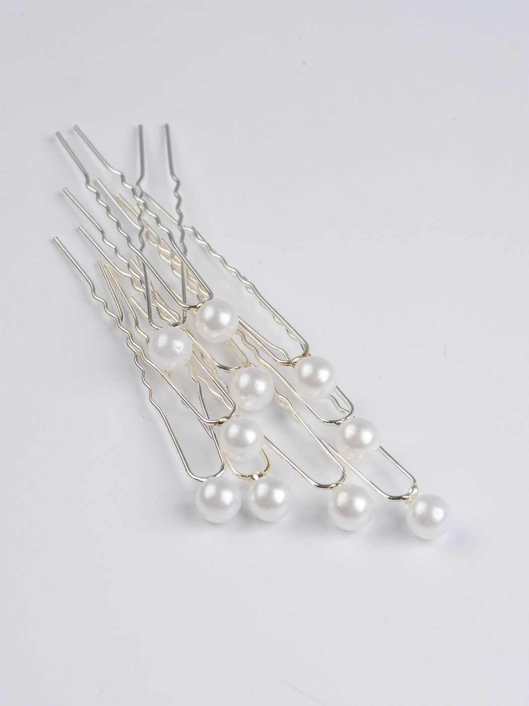 Элегантные шпильки для свадебной прически невесты "Мелкий жемчуг" с белой бусиной 6 мм, 10 штук