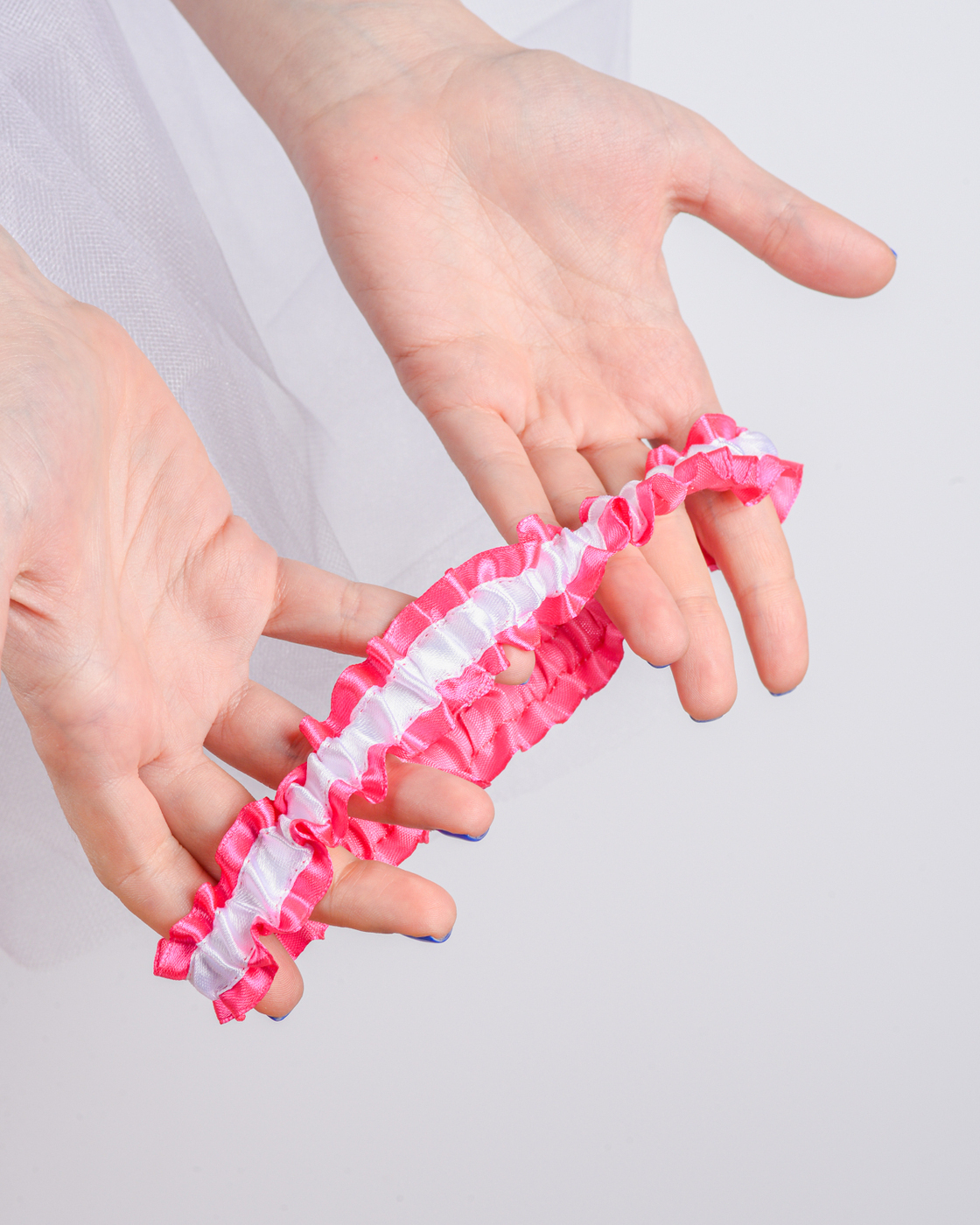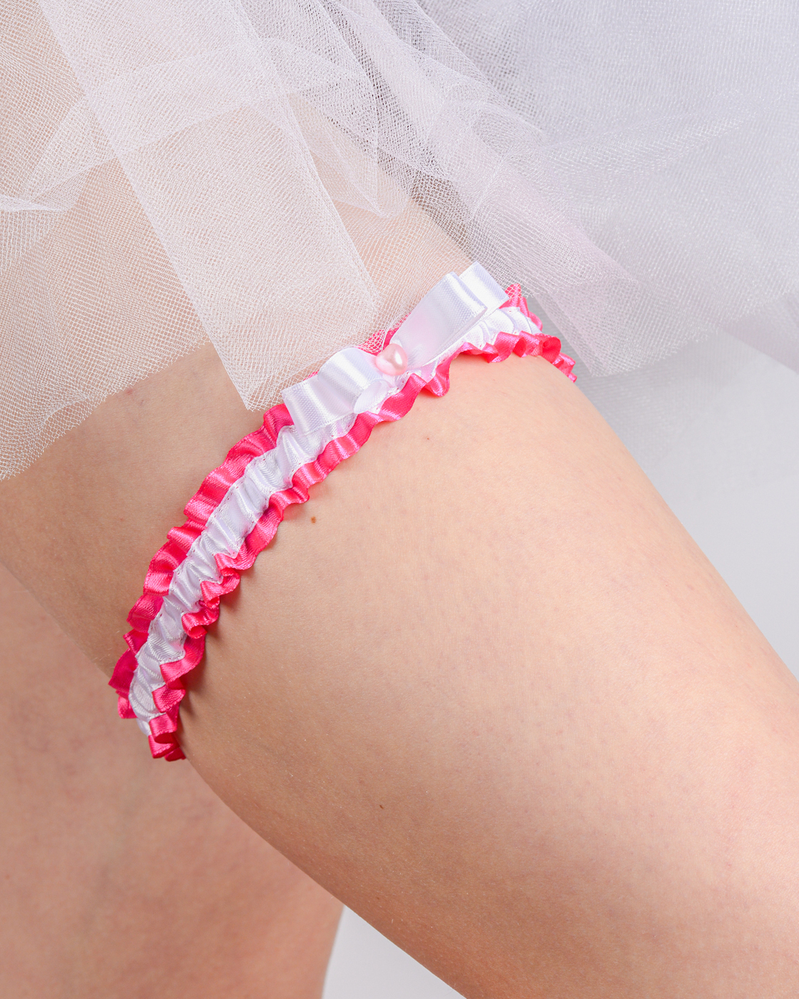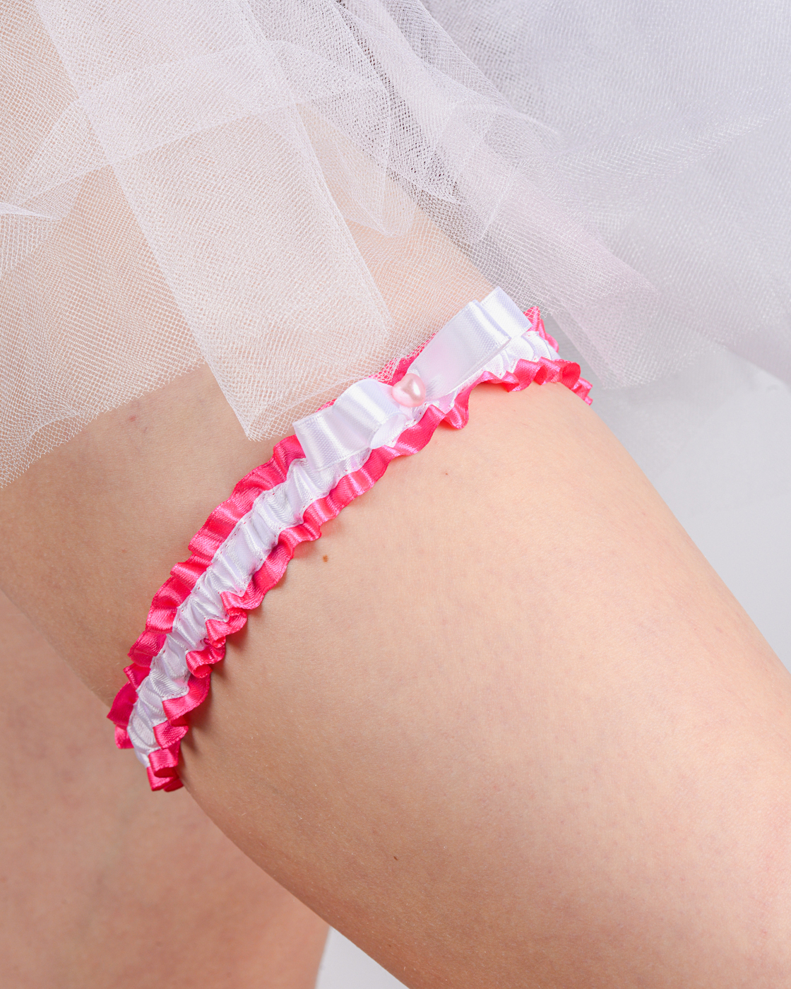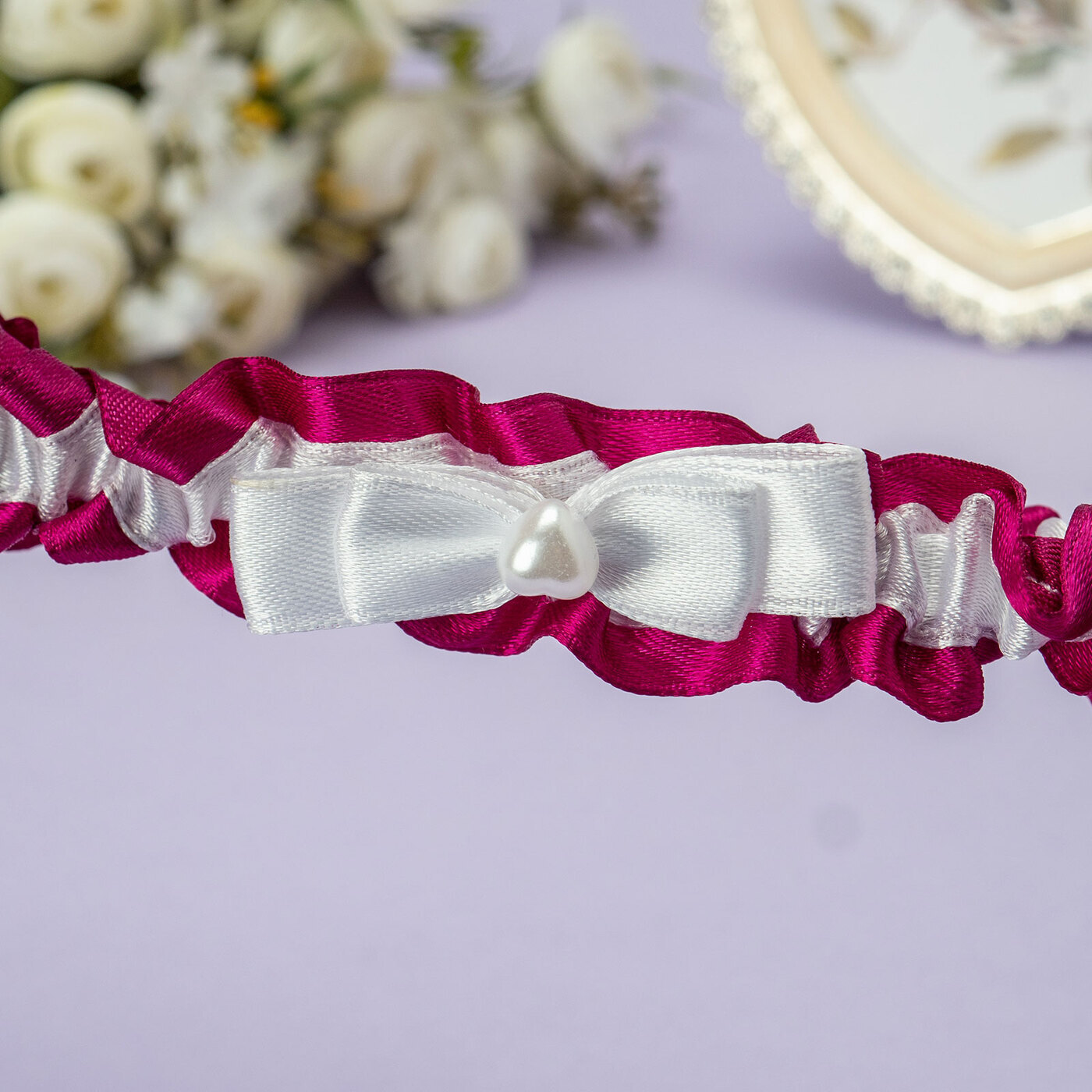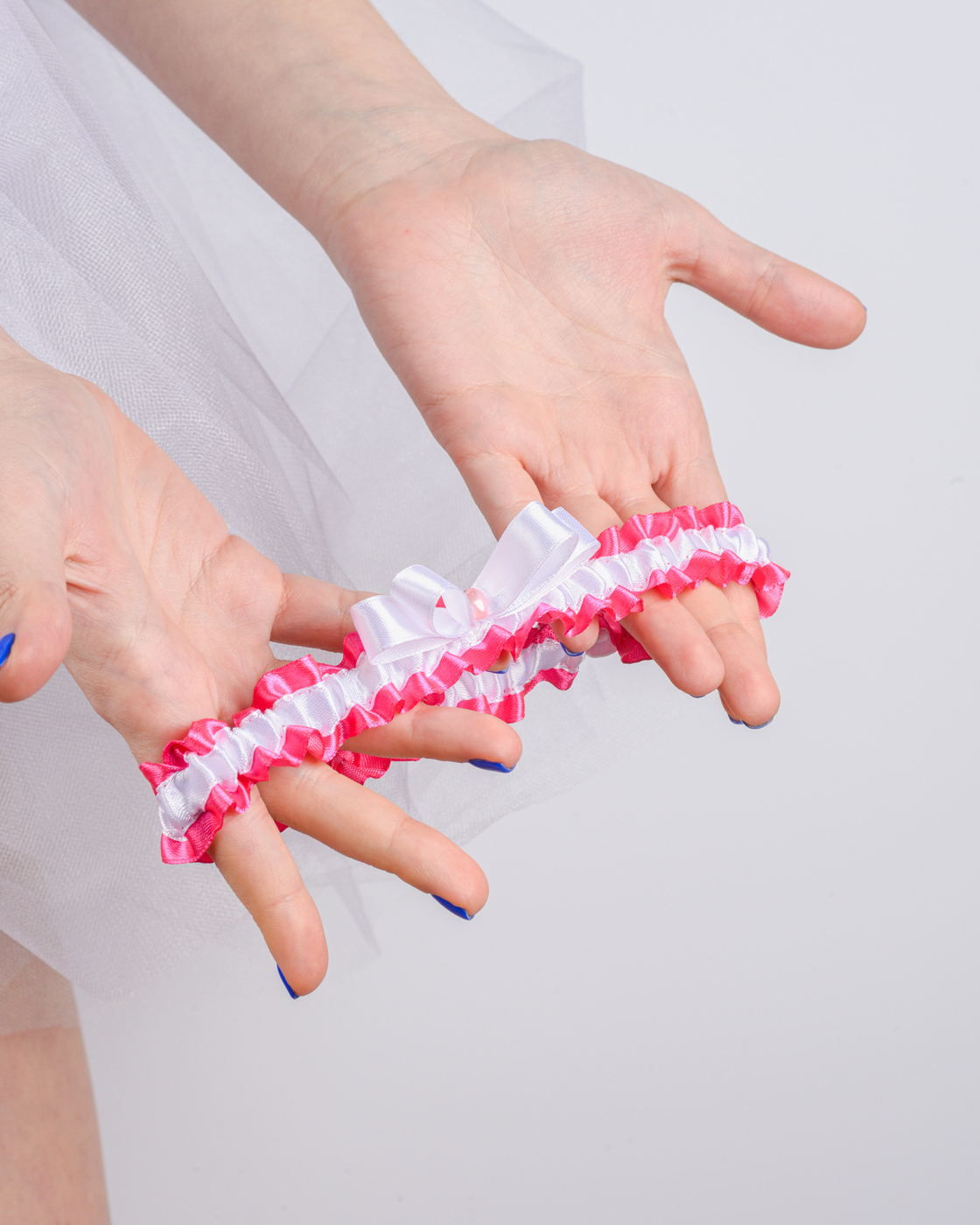 Свадебная подвязка для невесты "Снежная королева" с серебристой каймой и двойным сердцем из страз