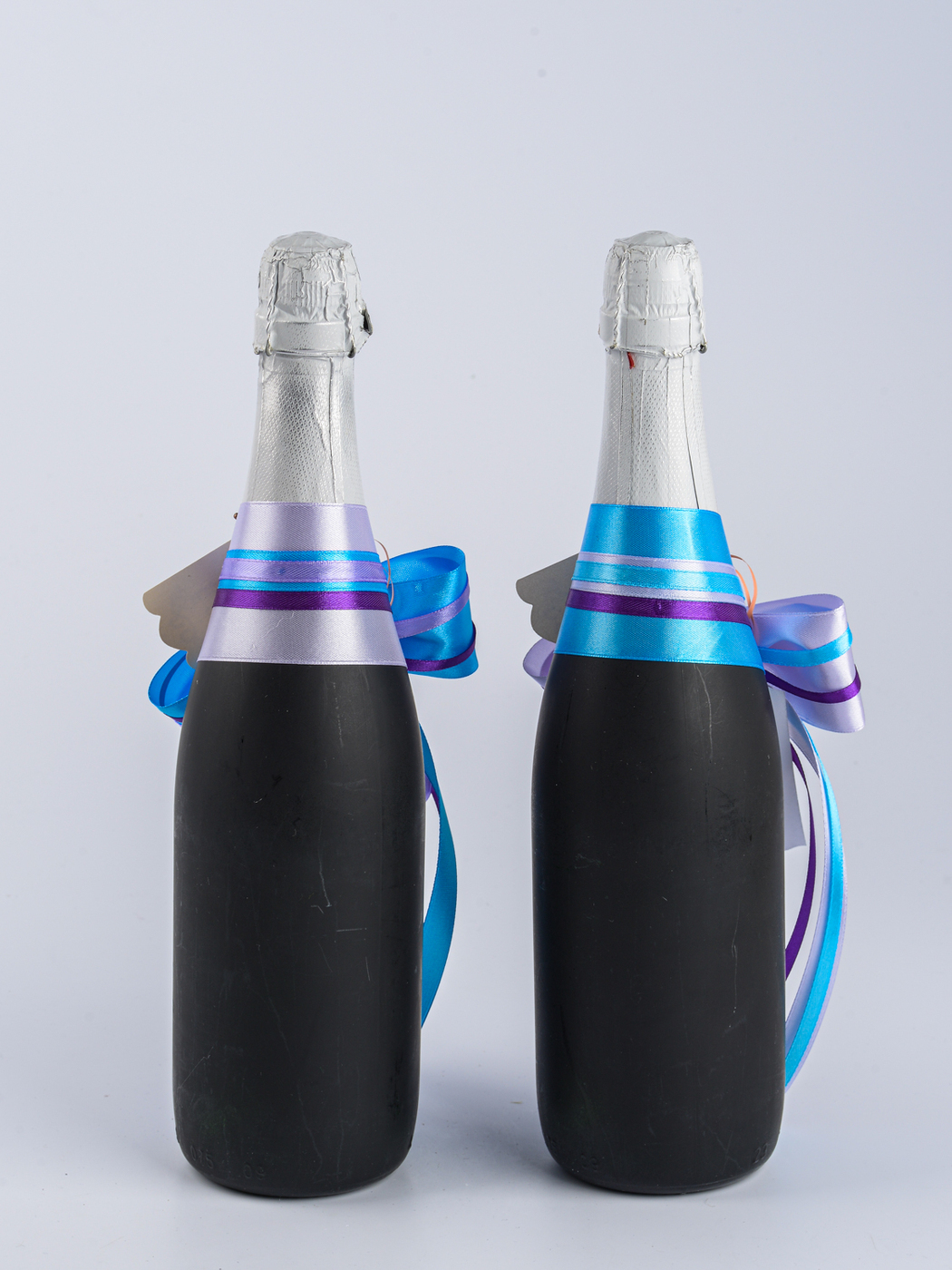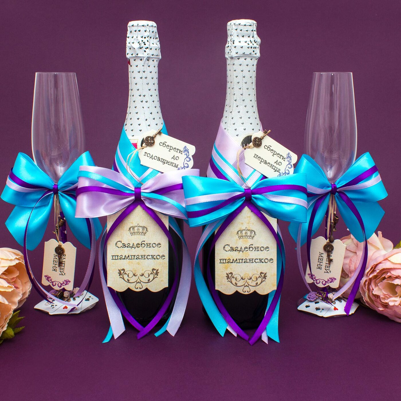 Свадебные бокалы с силуэтами молодоженов, белыми розами, узорами и перламутровыми жемчужинами