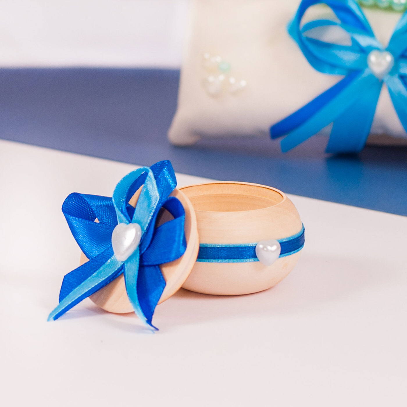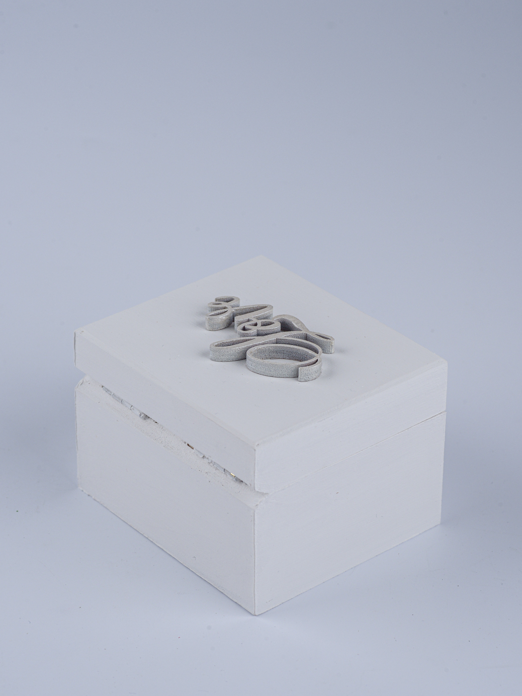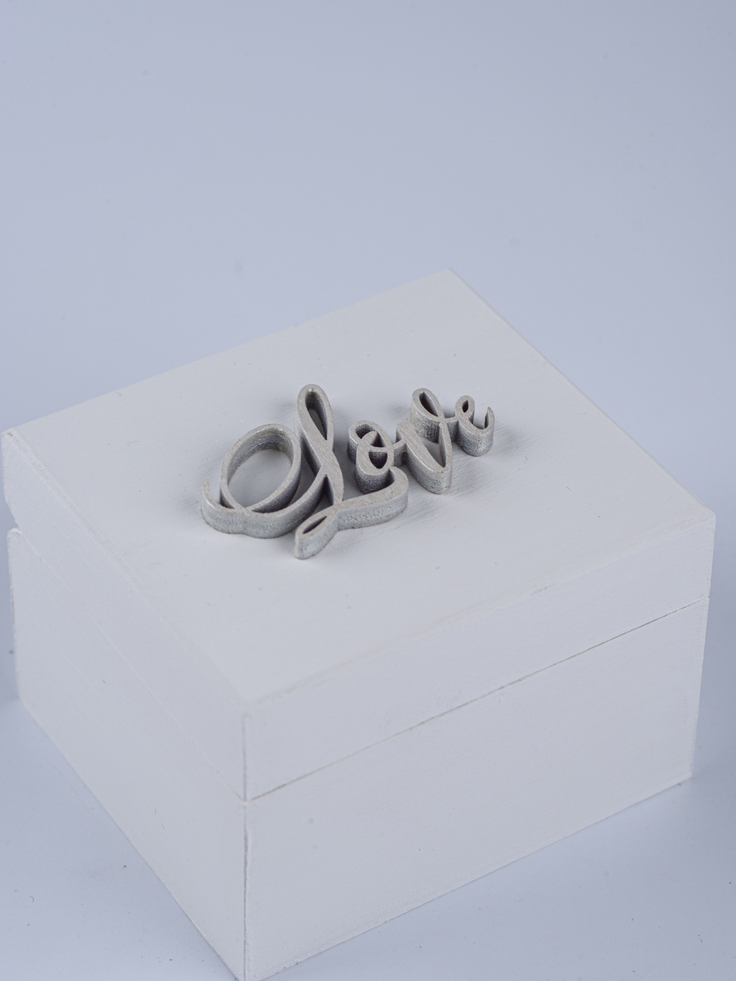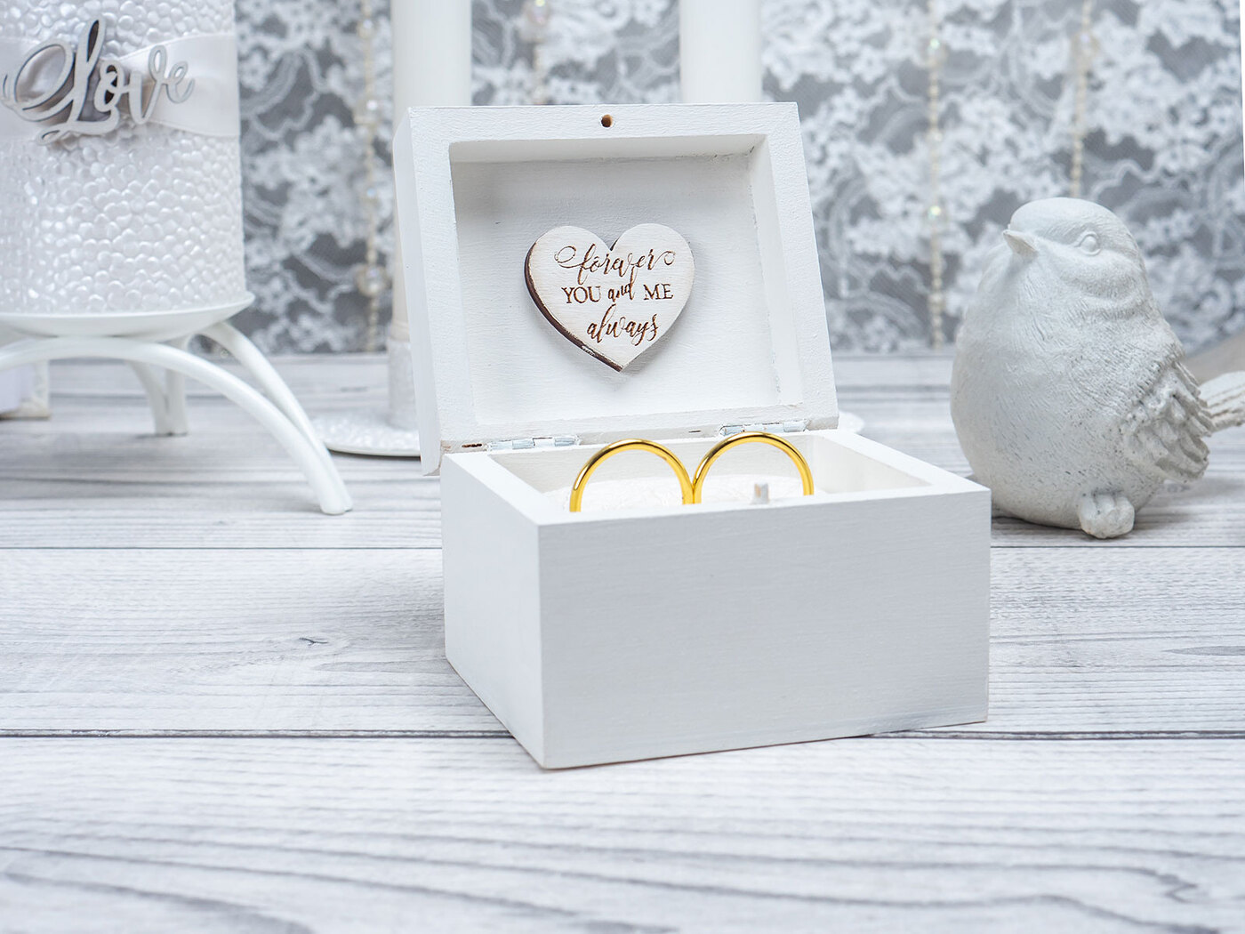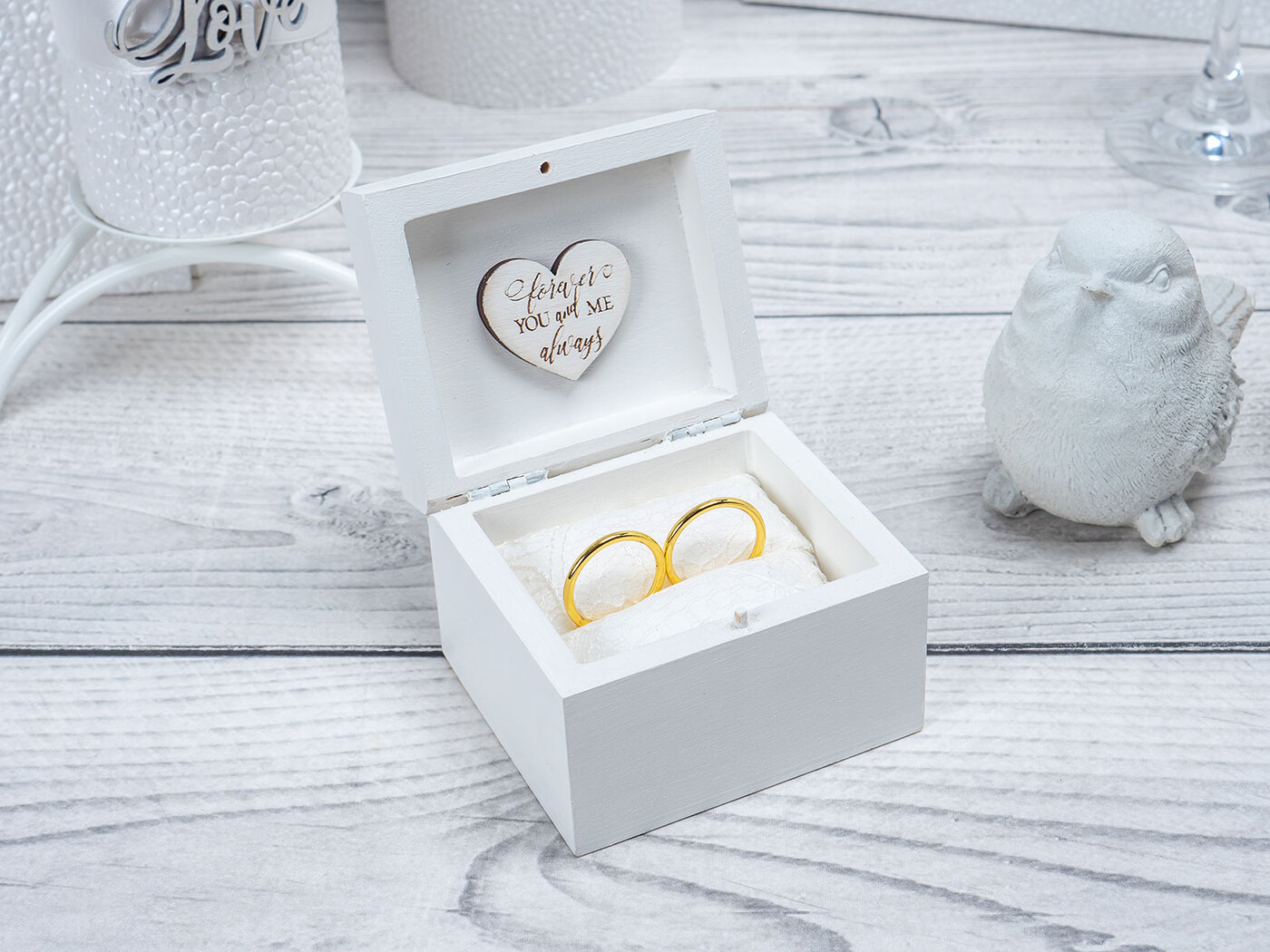 Свадебная шкатулка для обручальных колец "Диана" из дерева белого цвета с серебристой надписью Love