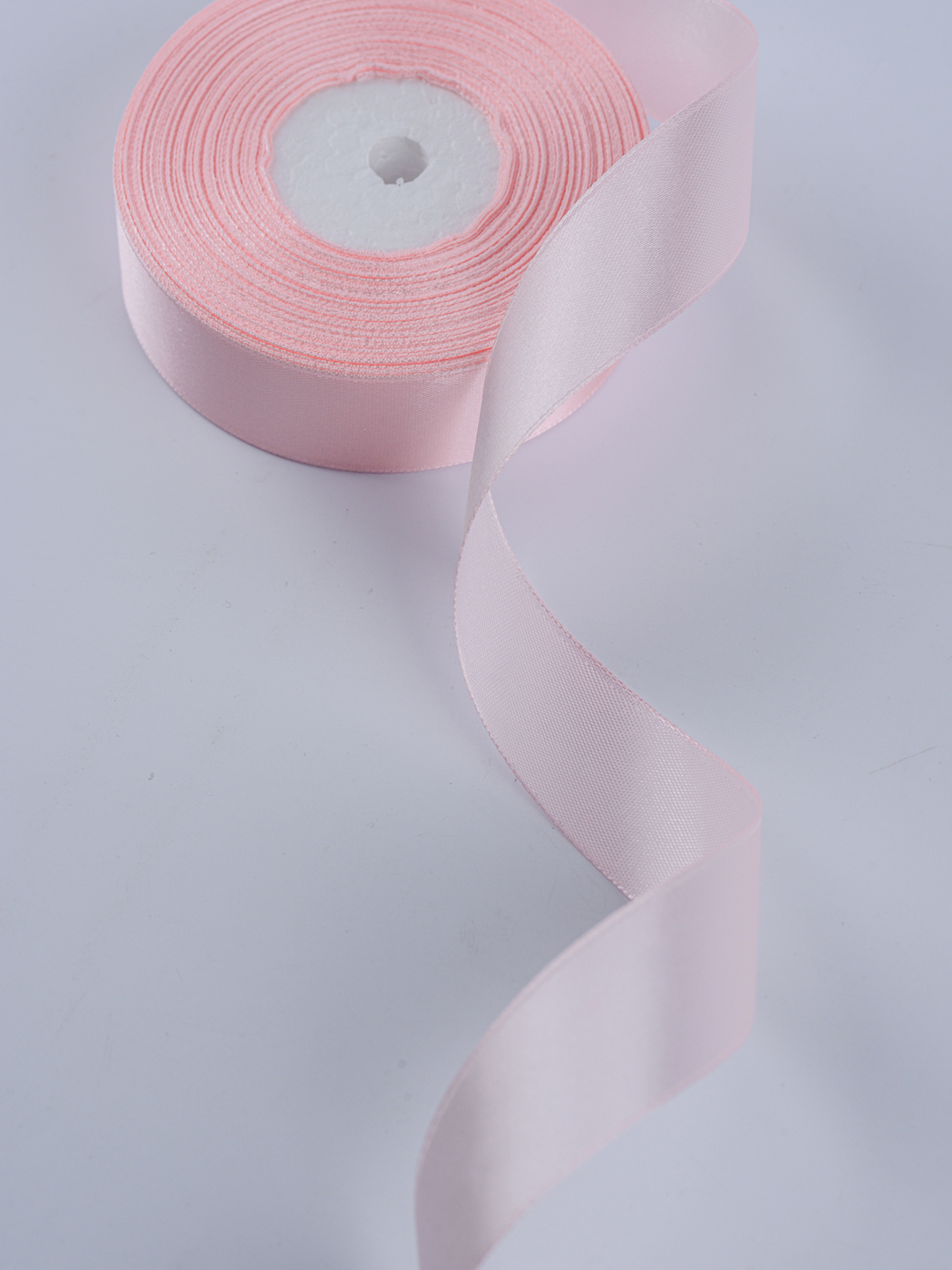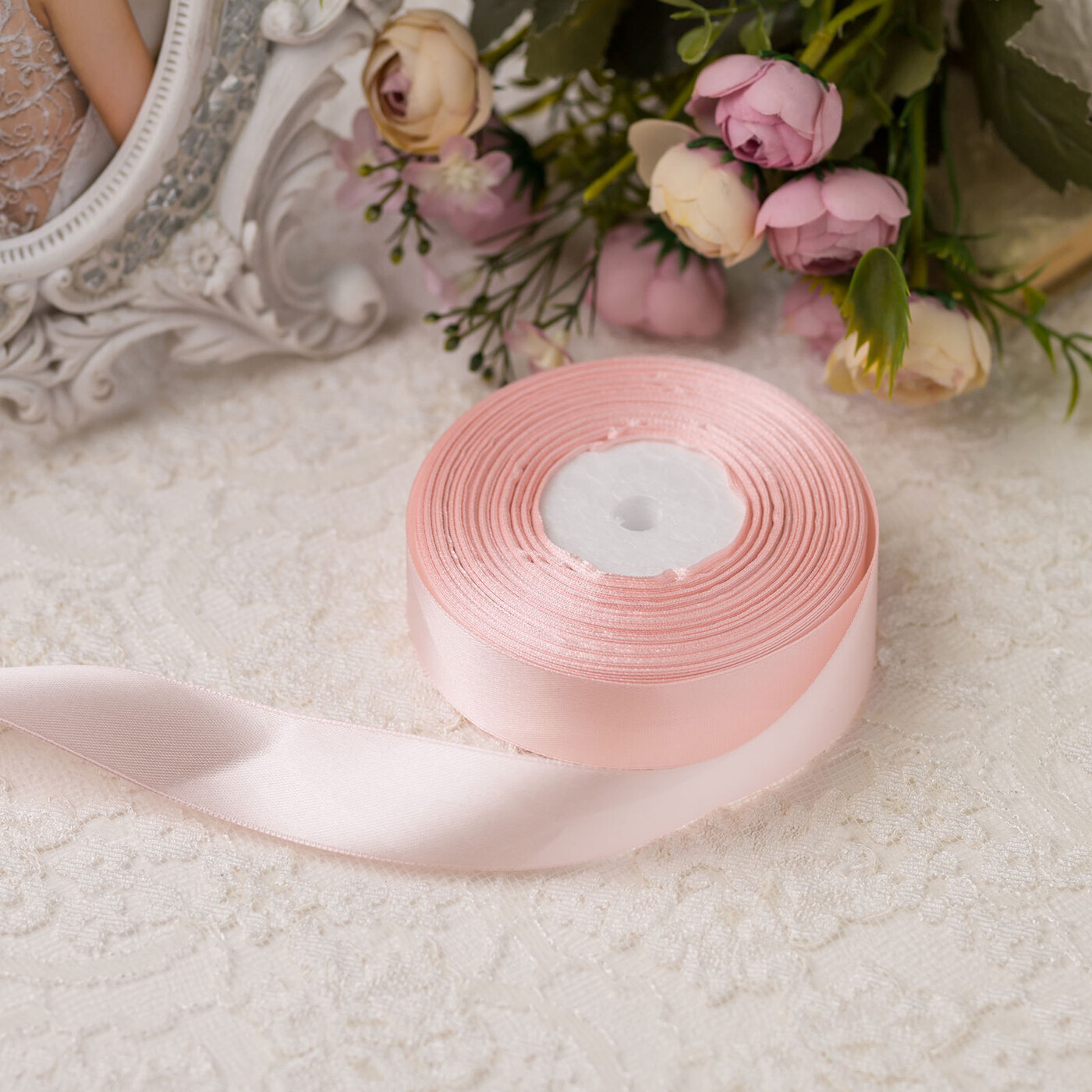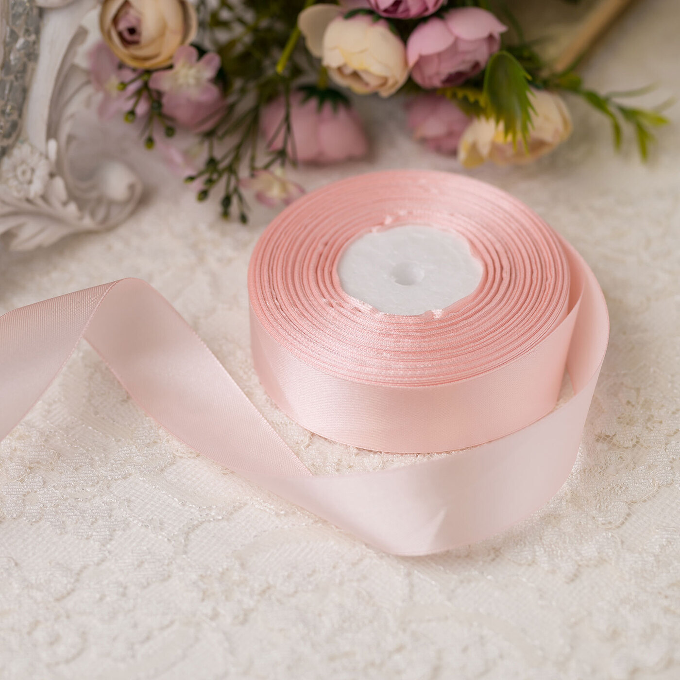 Атласная лента "Помпадур" для свадебного декора и упаковки подарков, светло-розовая, 25 мм