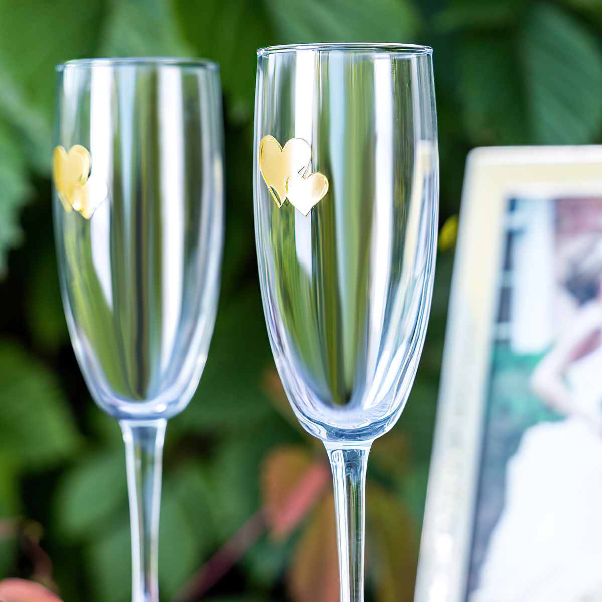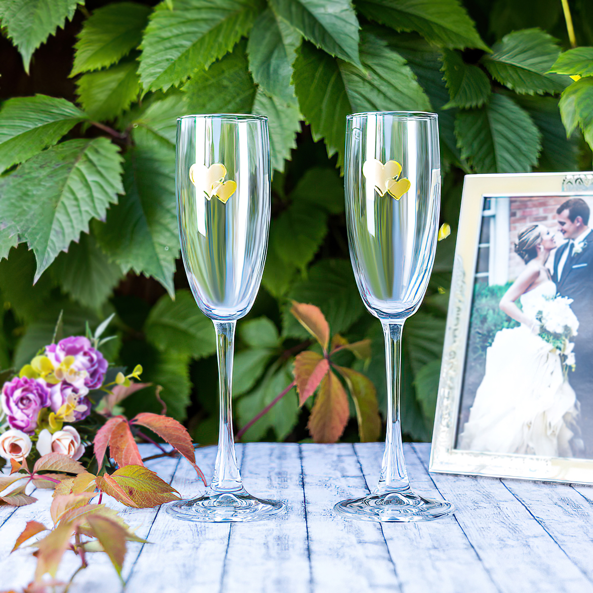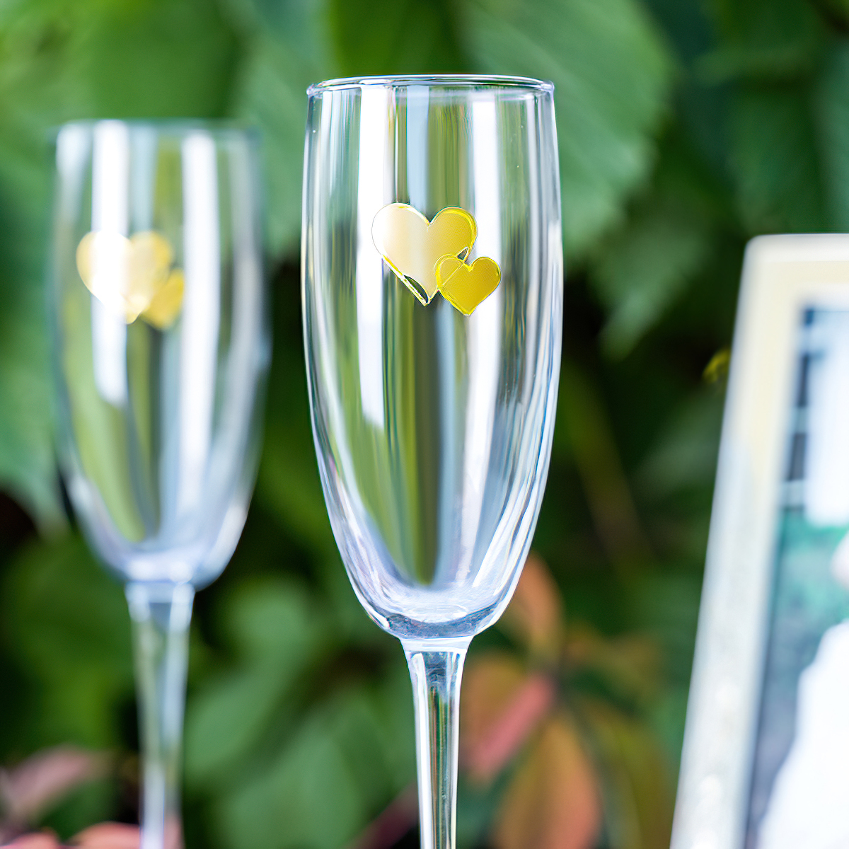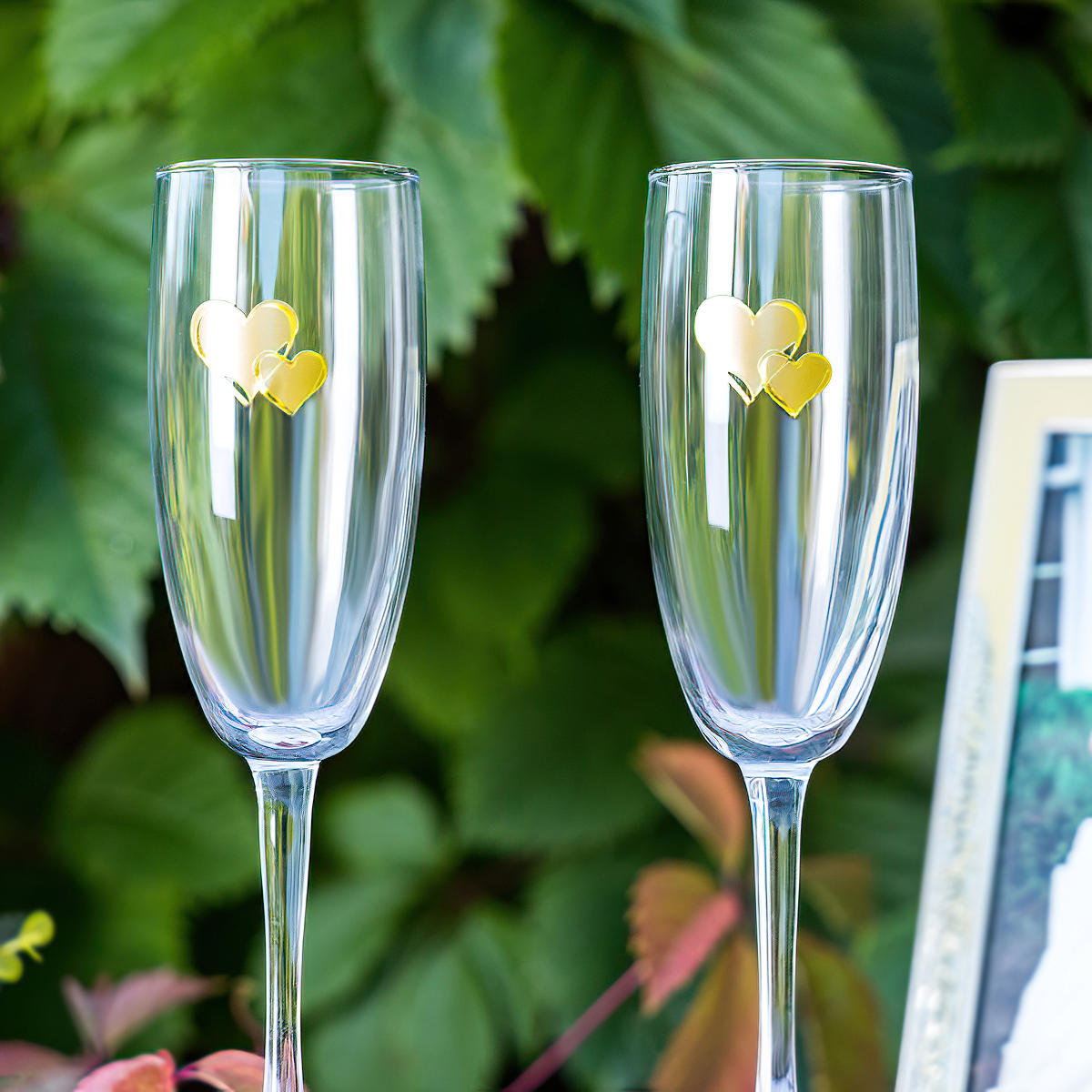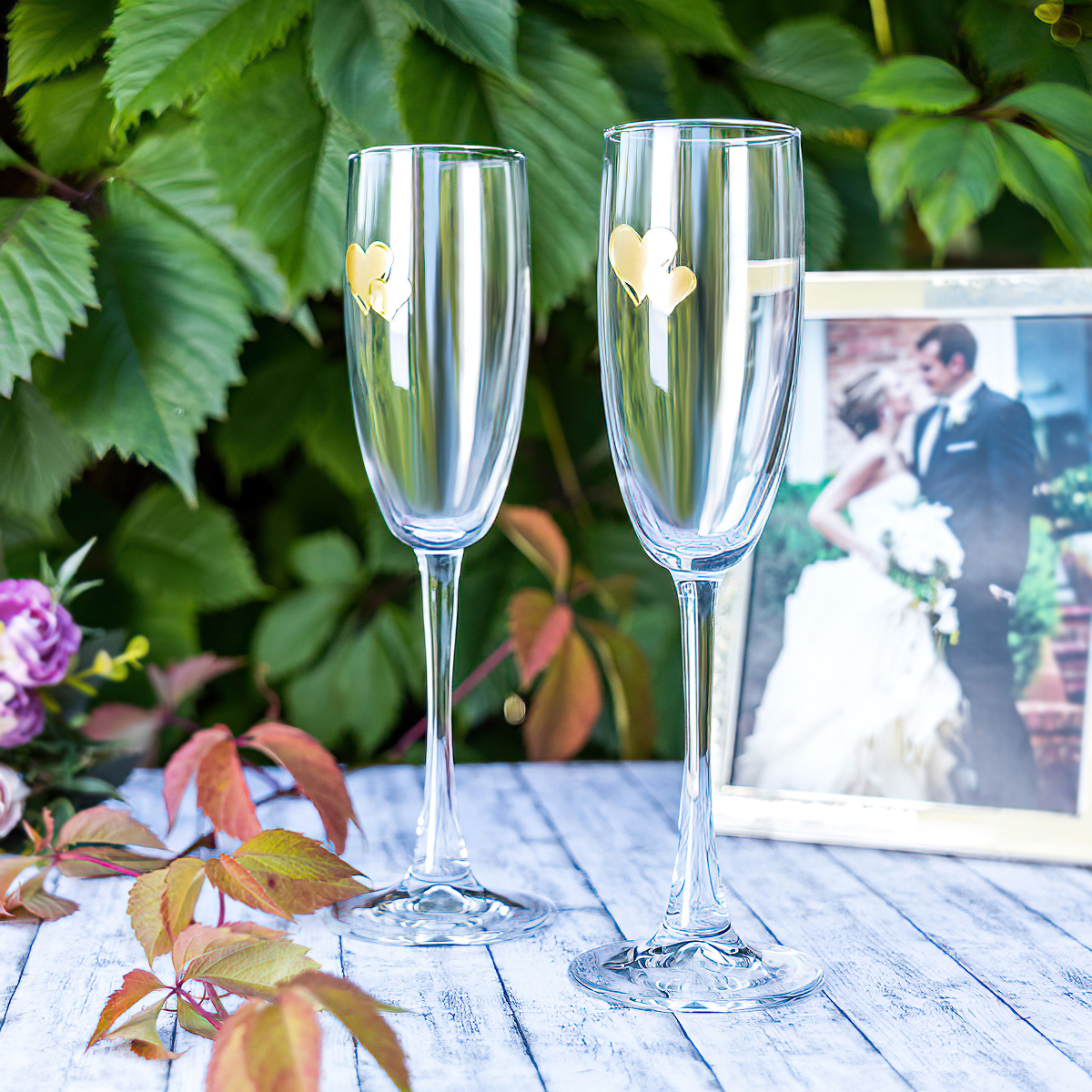 Прозрачные свадебные бокалы с золотыми сердцами - на свадьбу, годовщину, юбилей