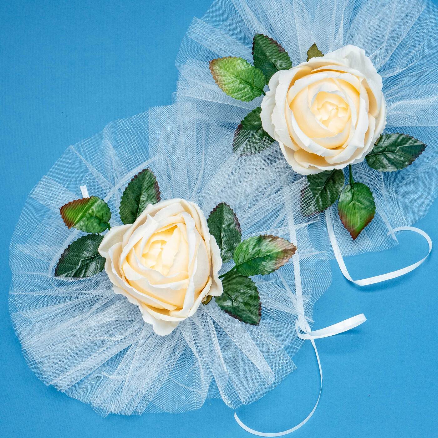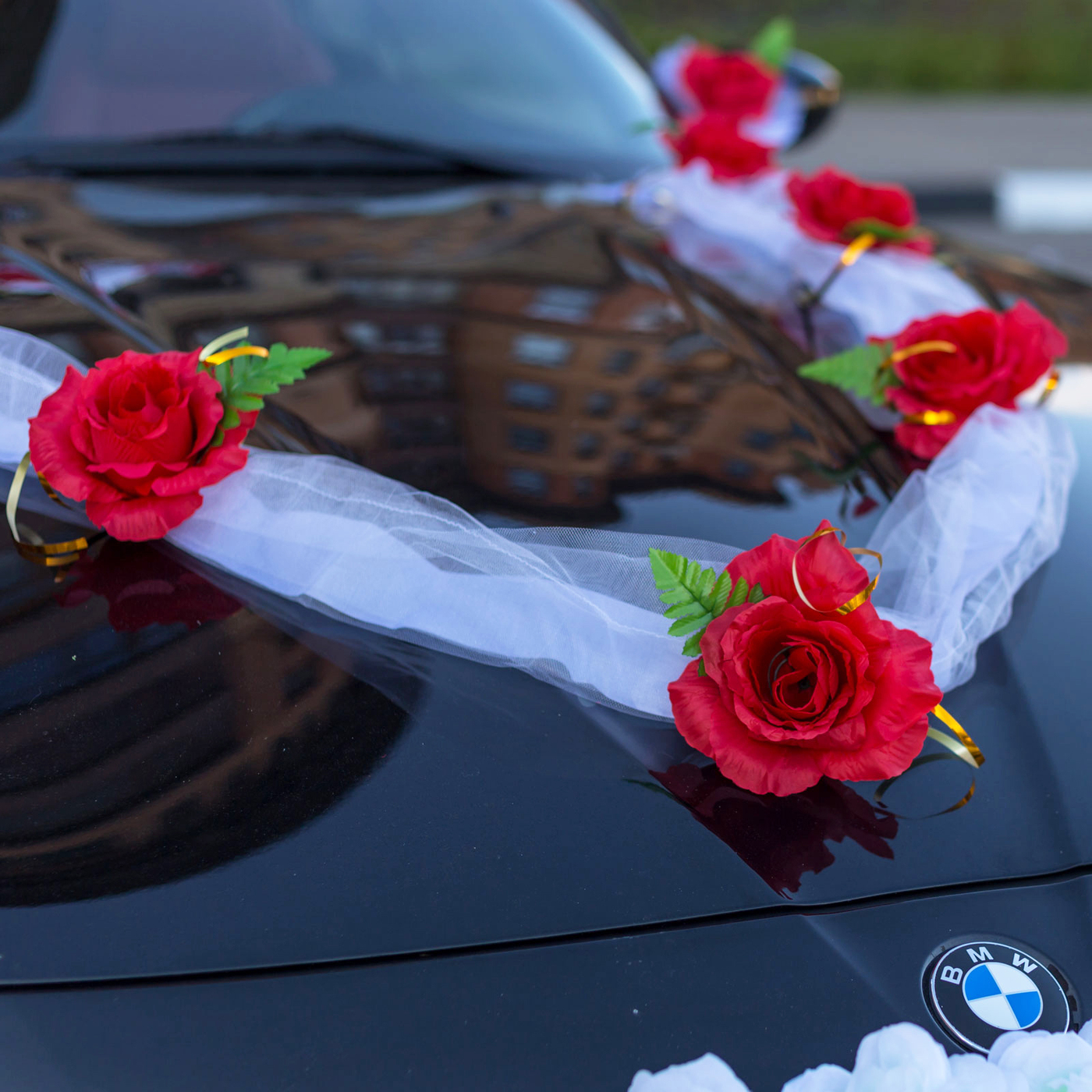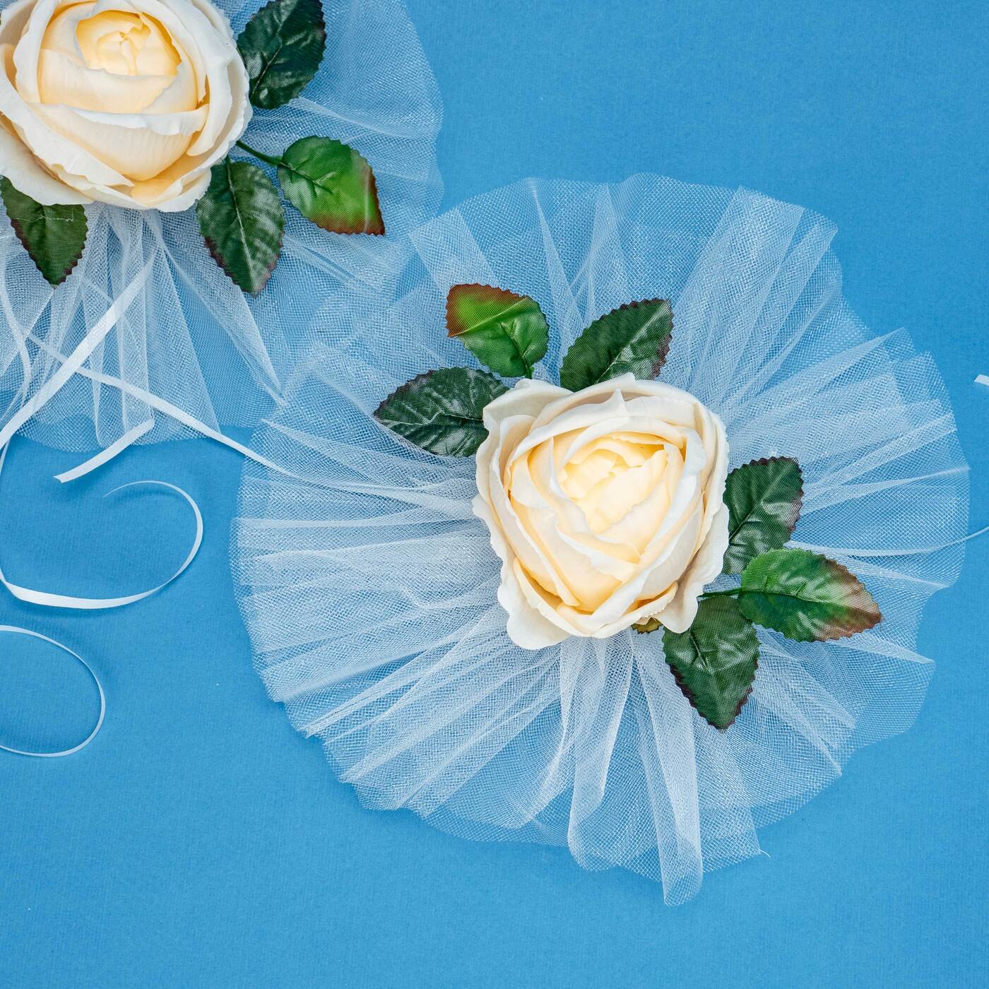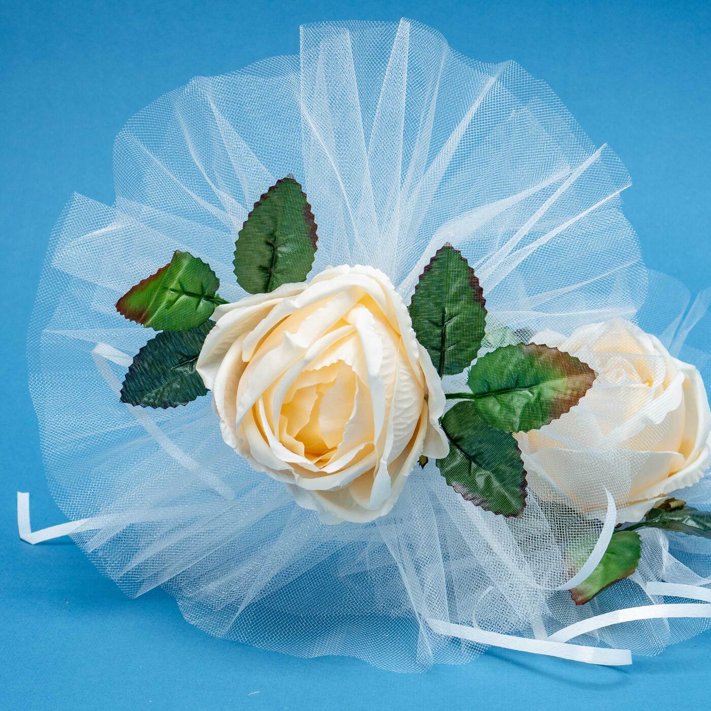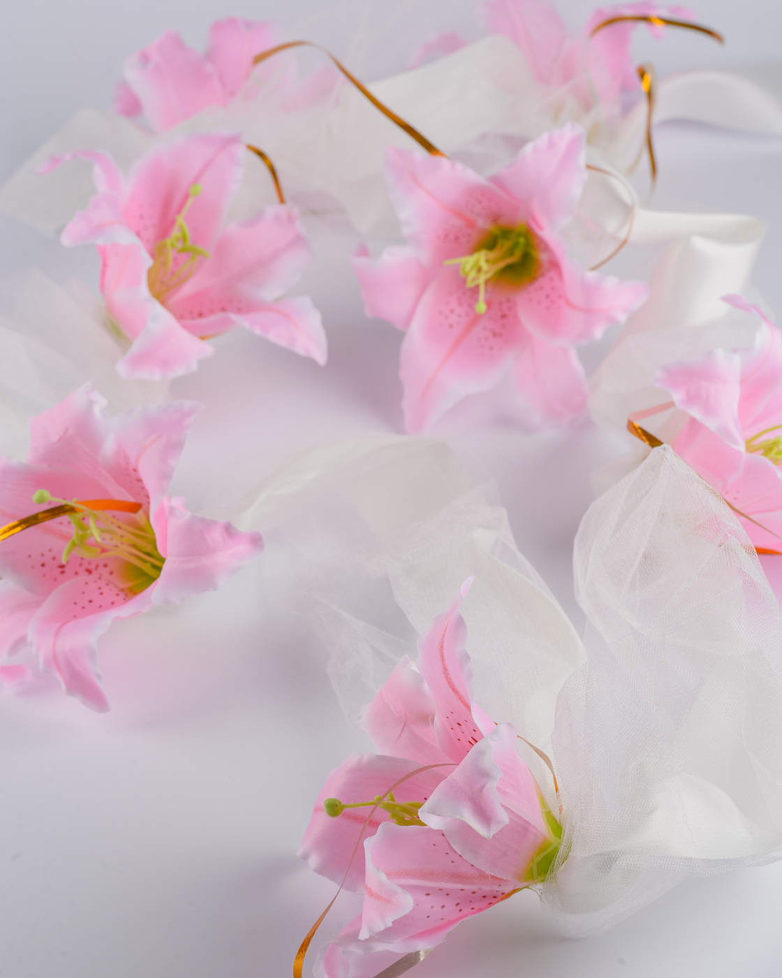 Фатиновая лента с текстильными цветами "Розовые лилии" на капот свадебного авто молодоженов и гостей