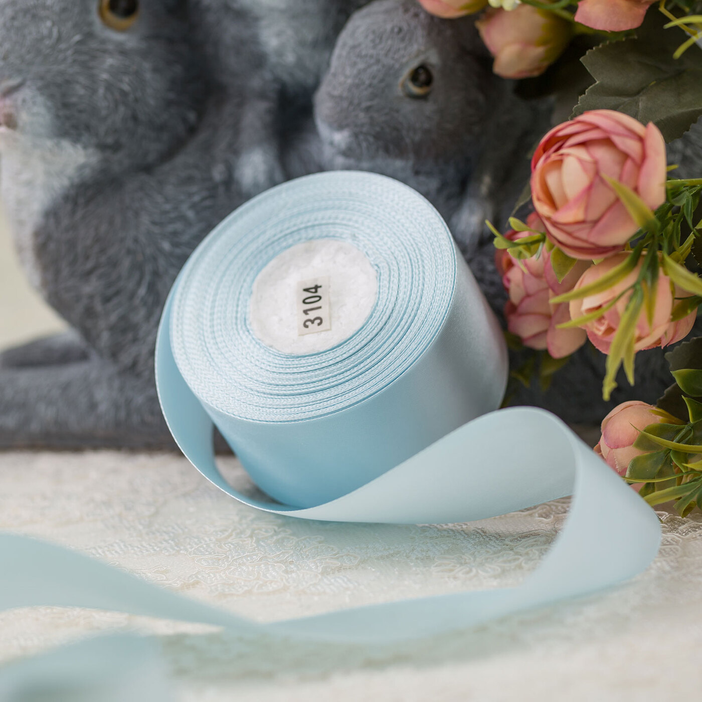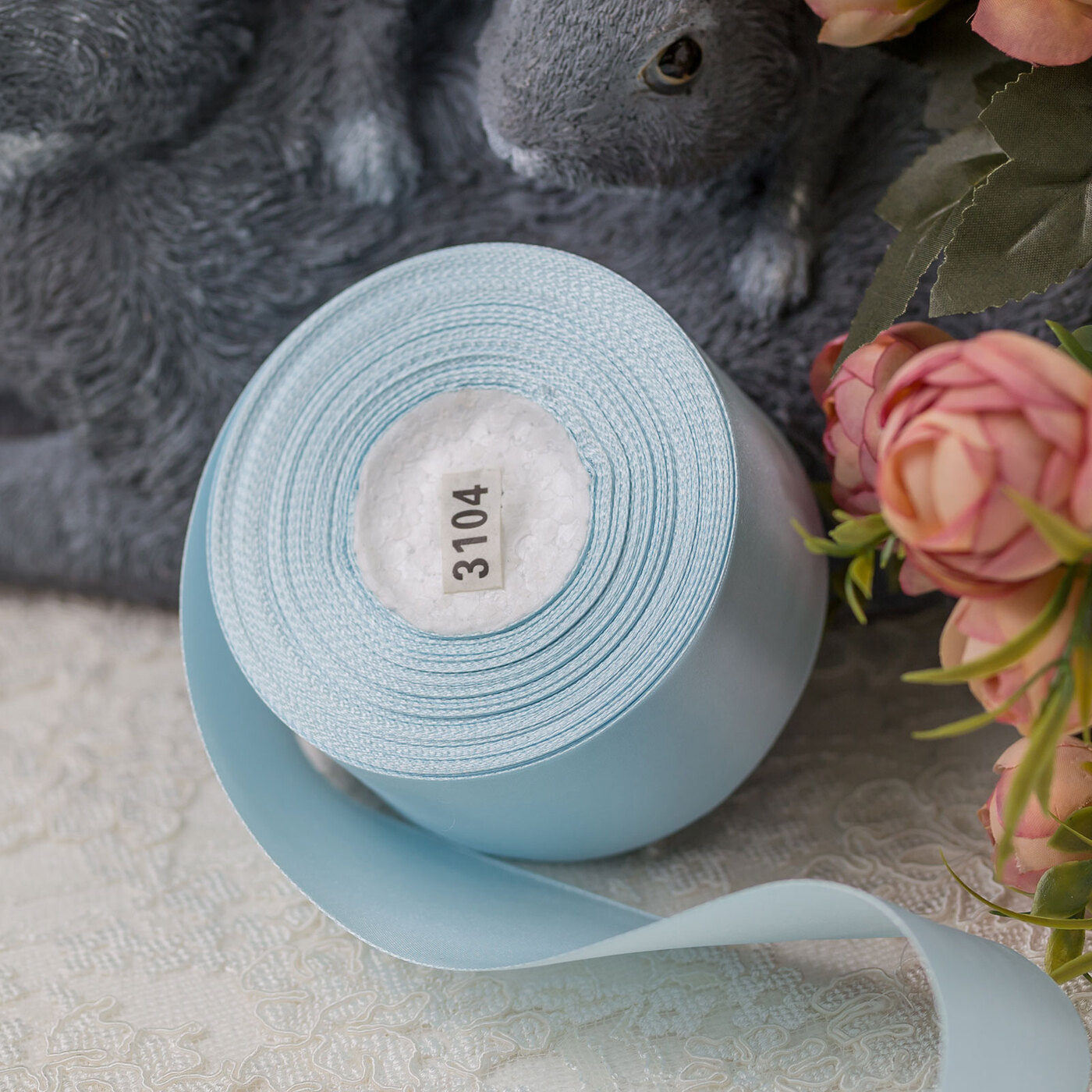 Широкая атласная лента "Кембридж" голубого цвета для декора свадьбы, подарков, интерьера, 50 мм