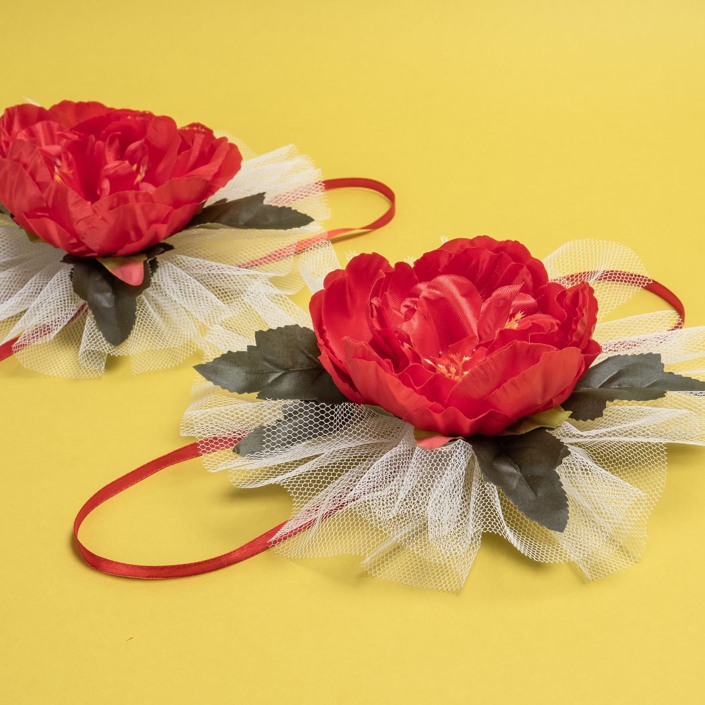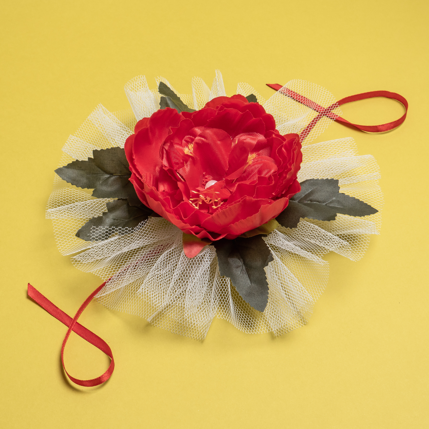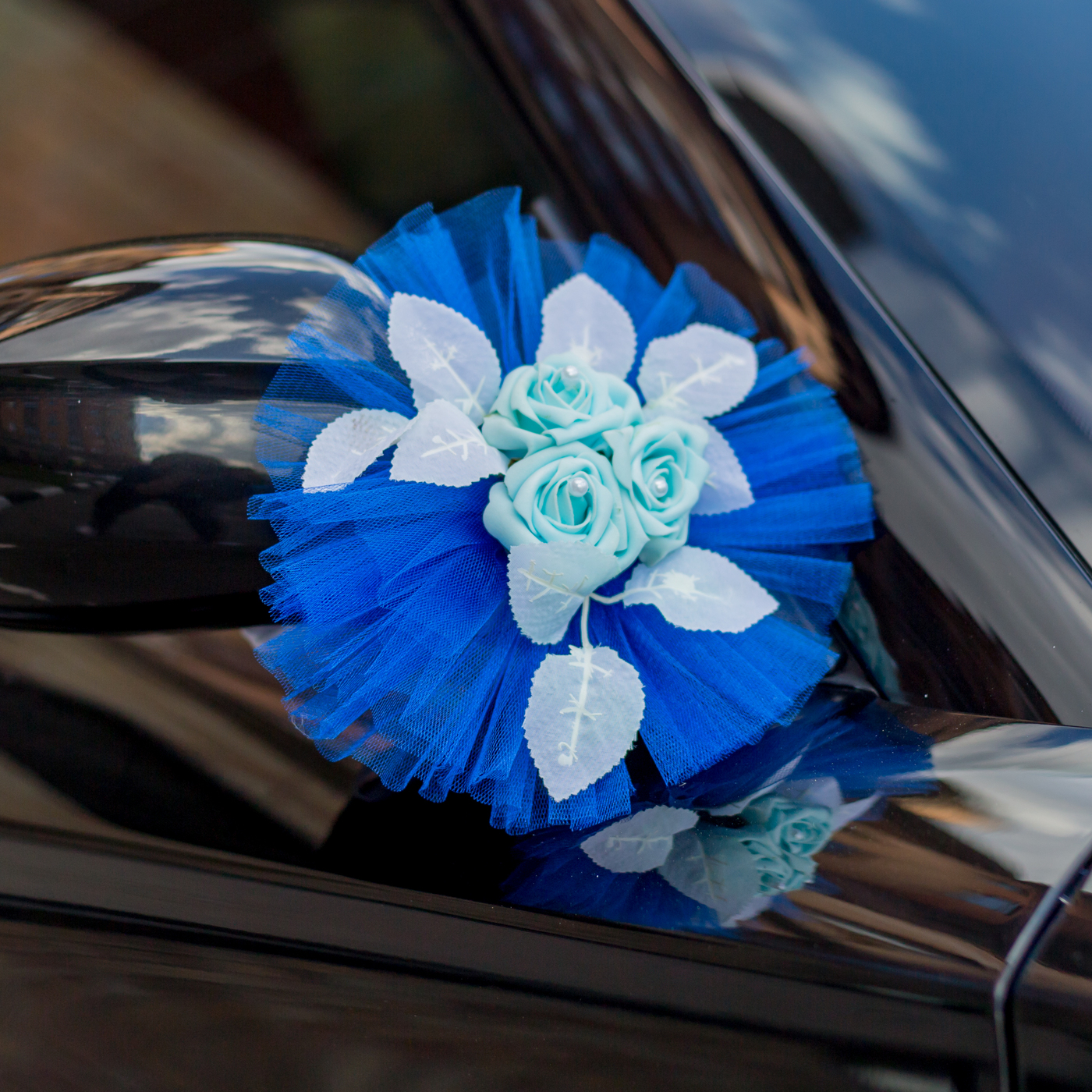 Фатиновая лента на капот автомобиля "Розы" с текстильными цветами в нежных розовых тонах. 3 метра.