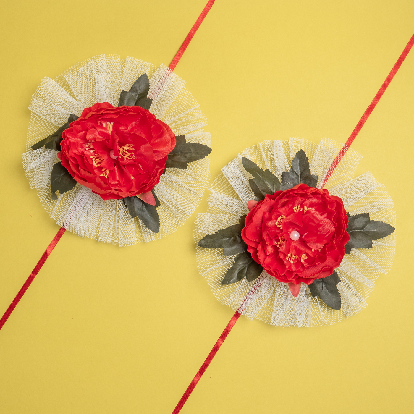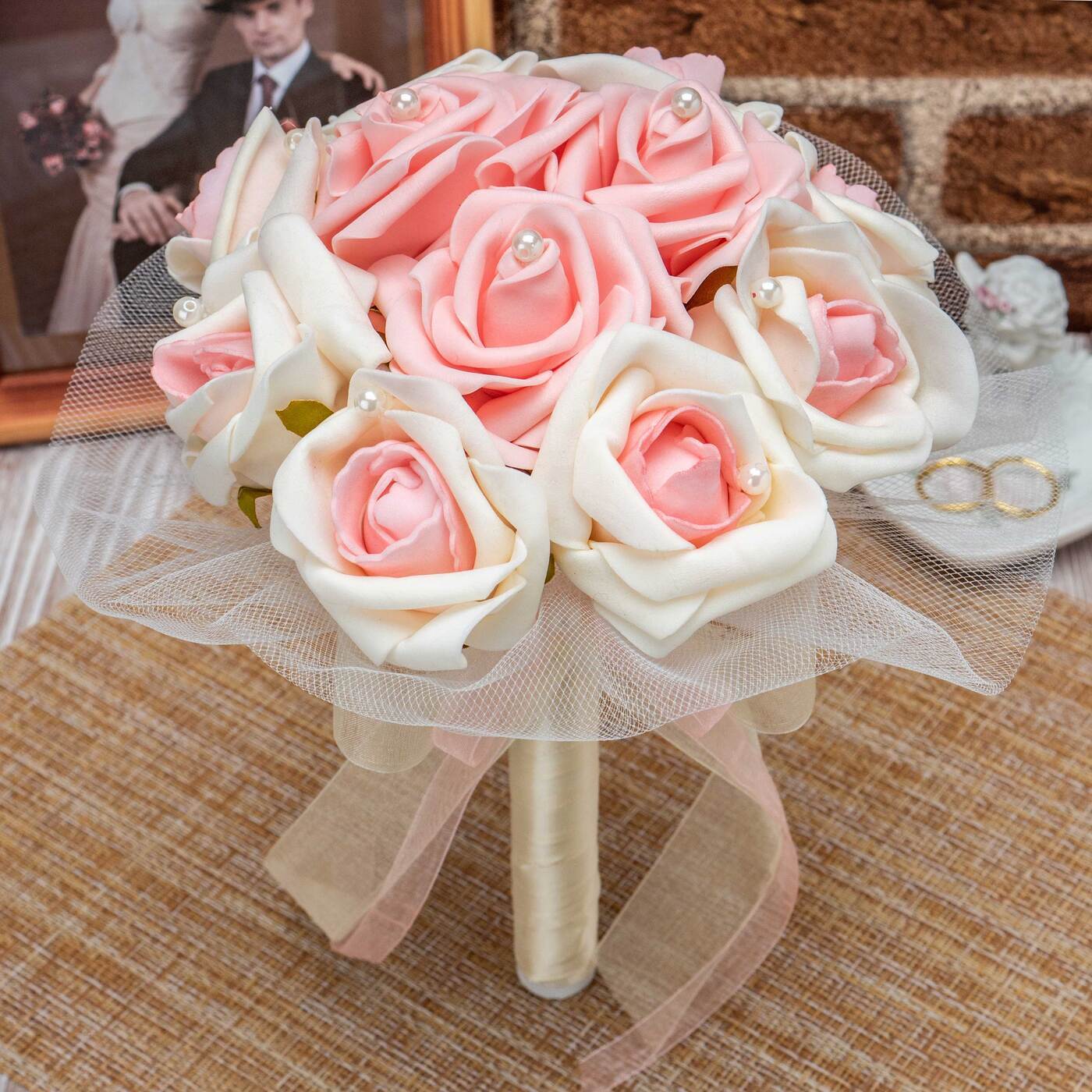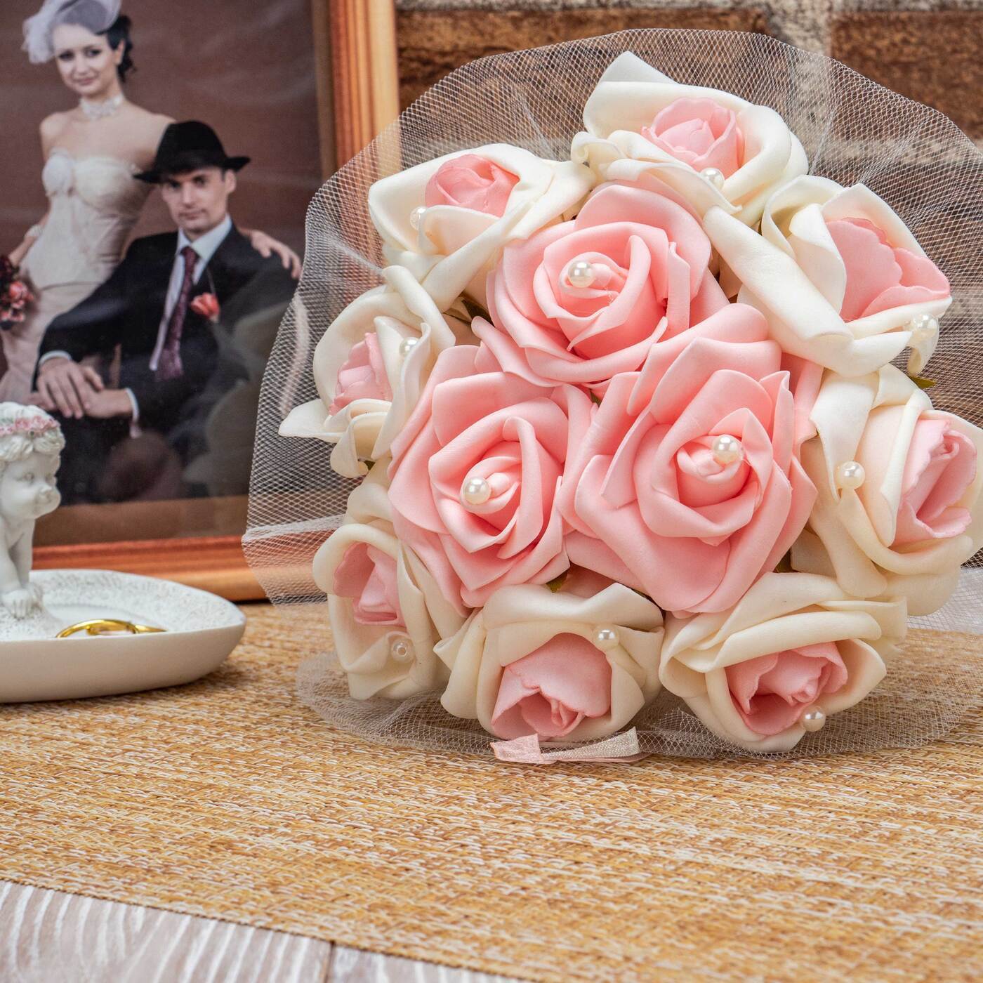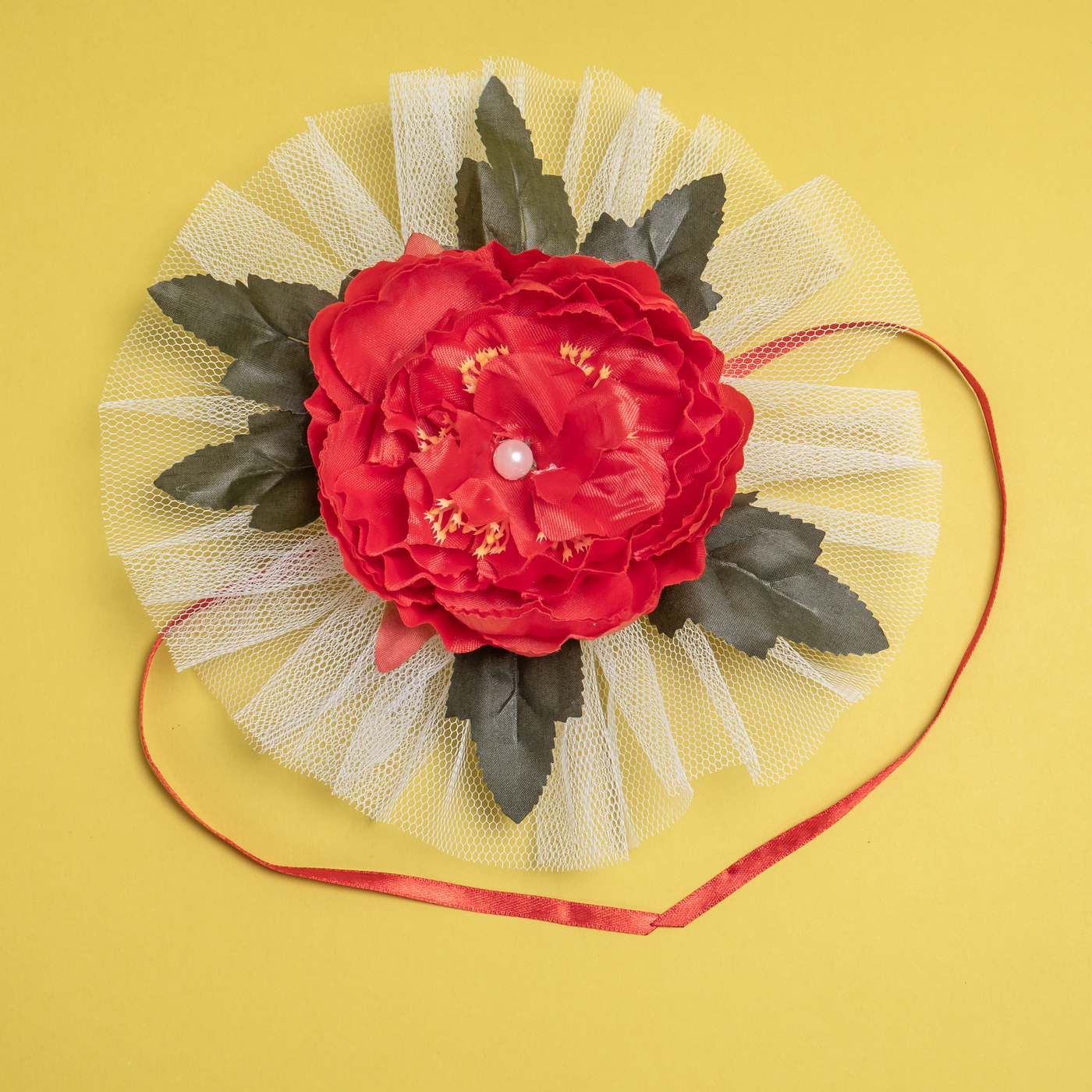 Фатиновая лента на капот автомобиля "Розы" с текстильными цветами в нежных розовых тонах. 3 метра.