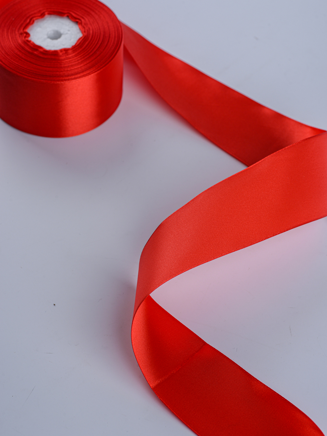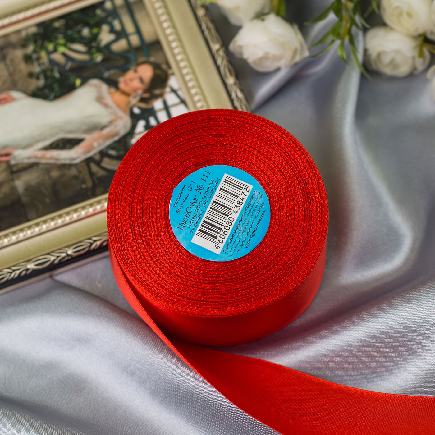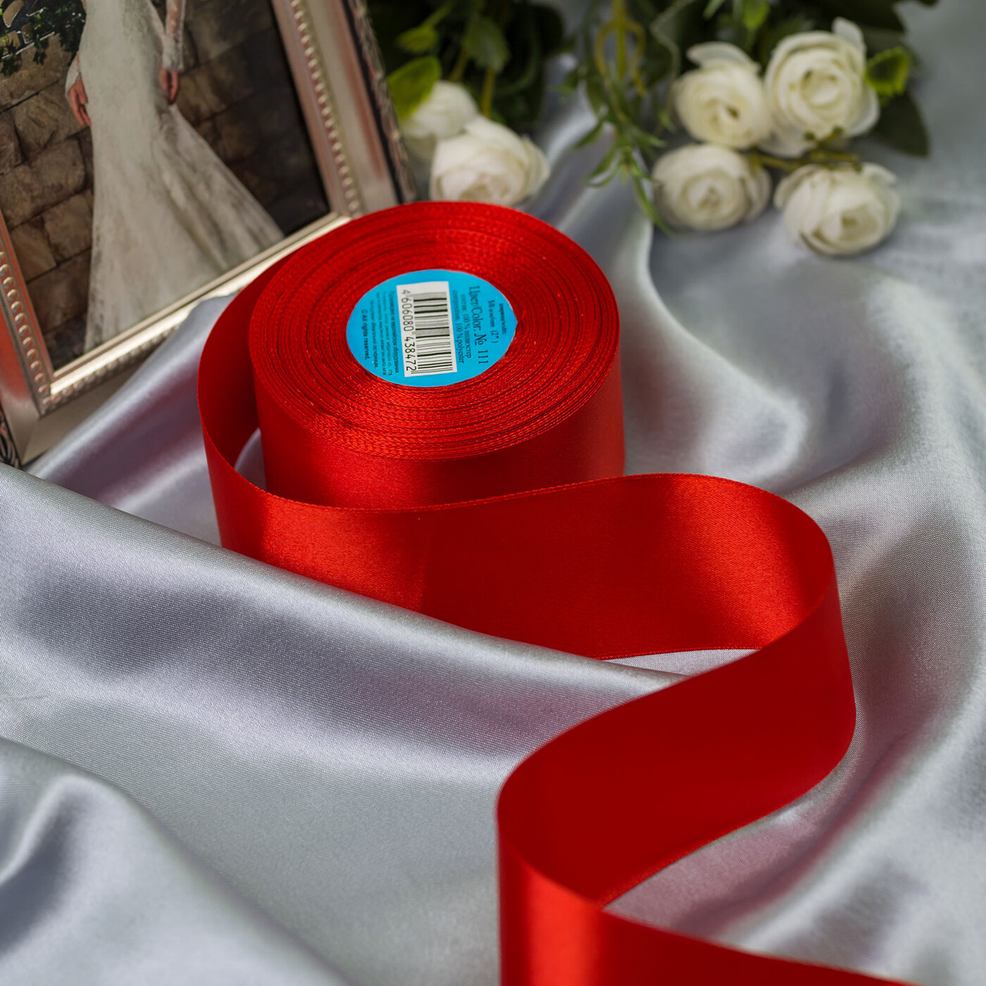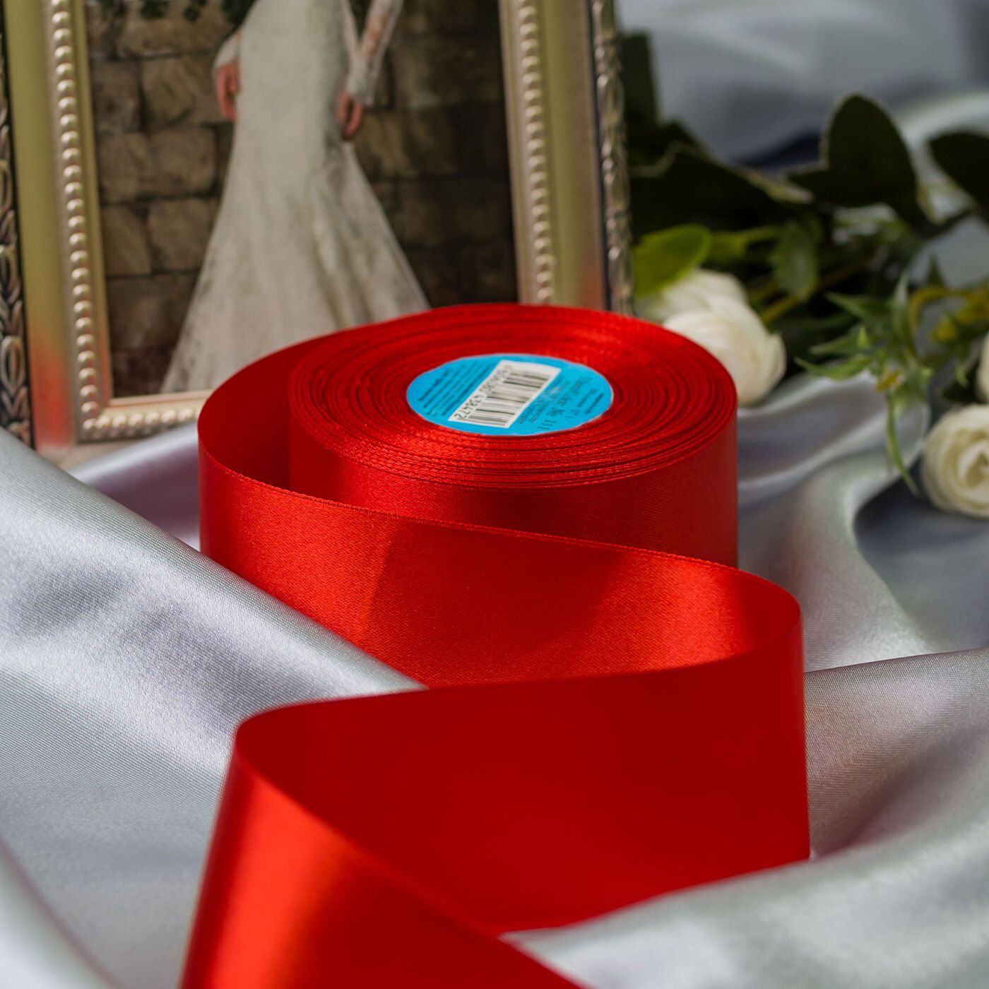 Широкая атласная лента "Алая" для декора свадьбы и подарков, 50 мм