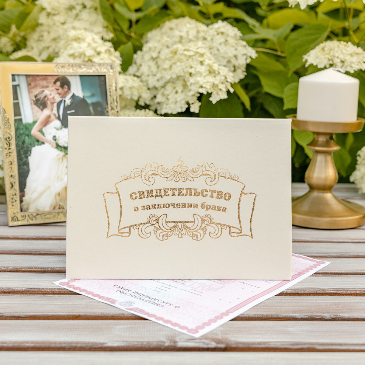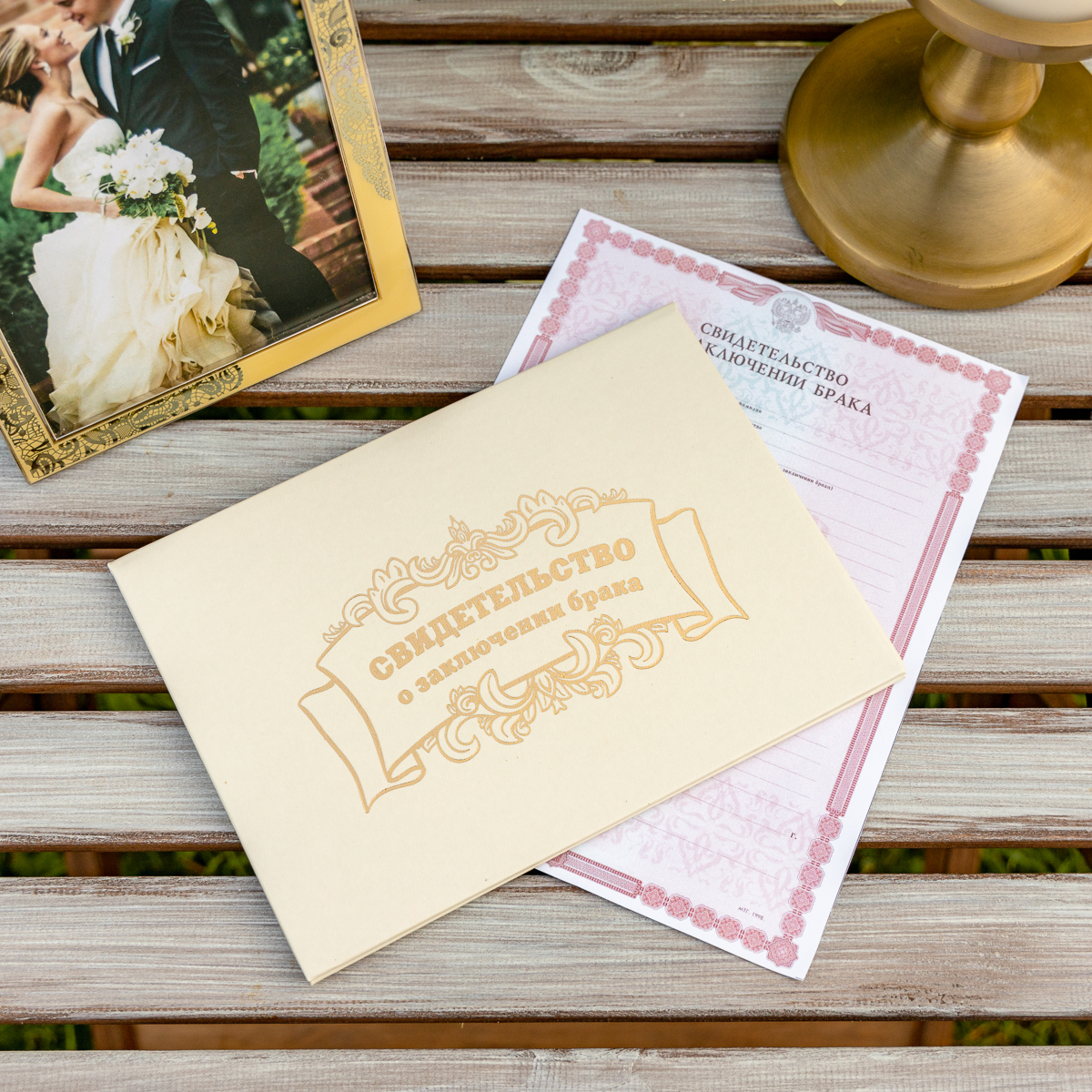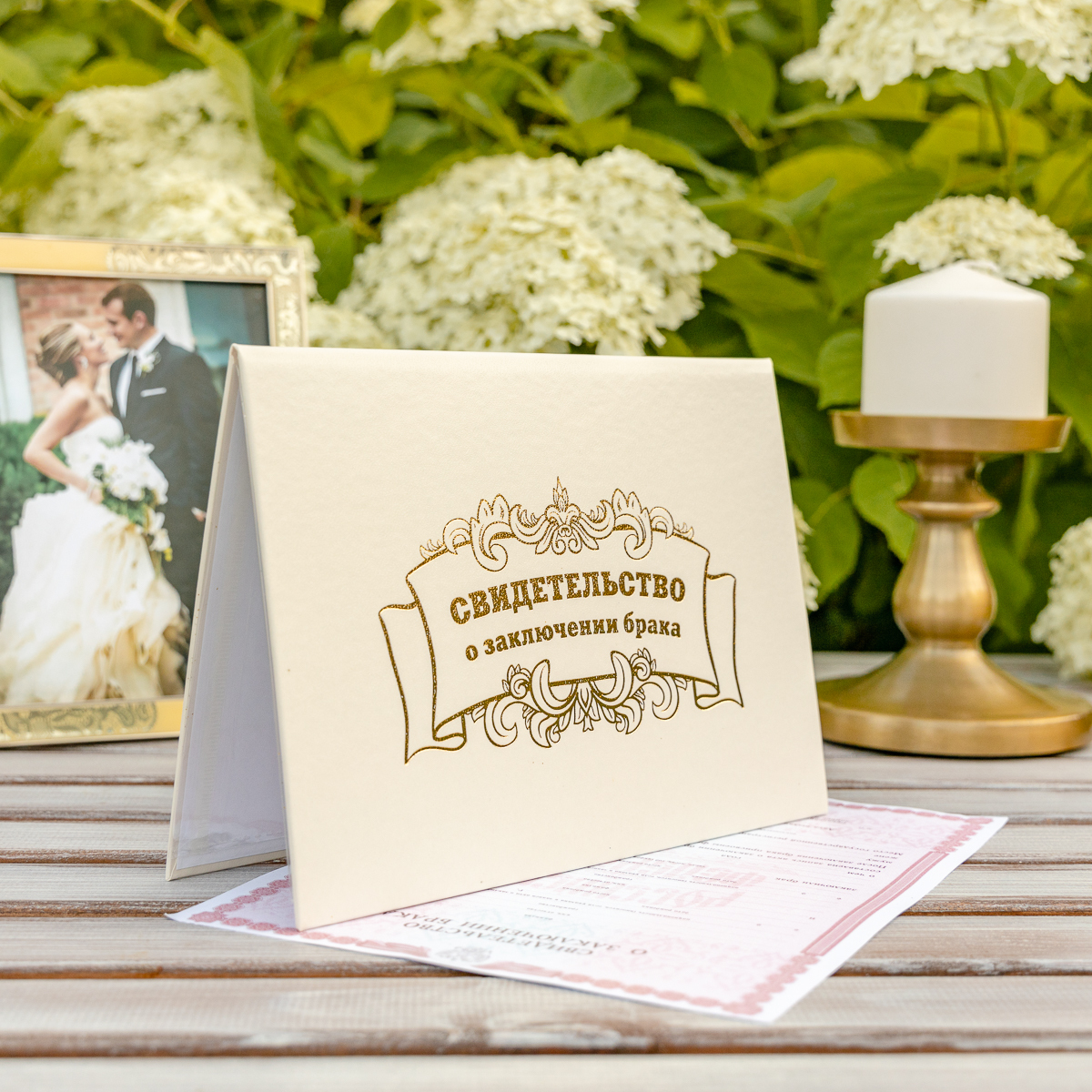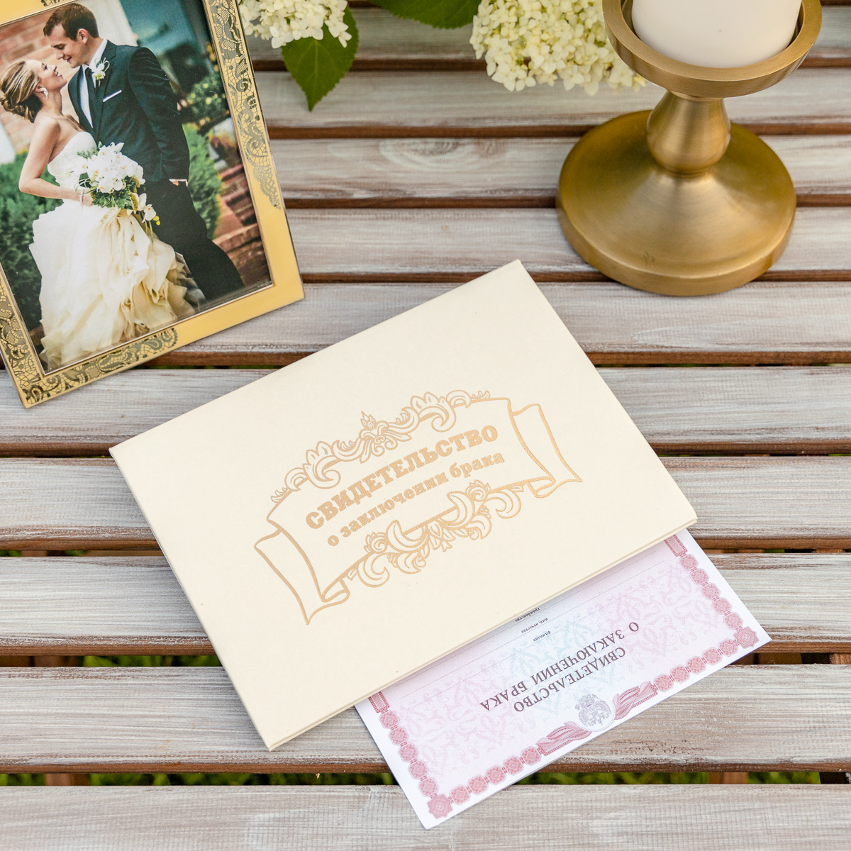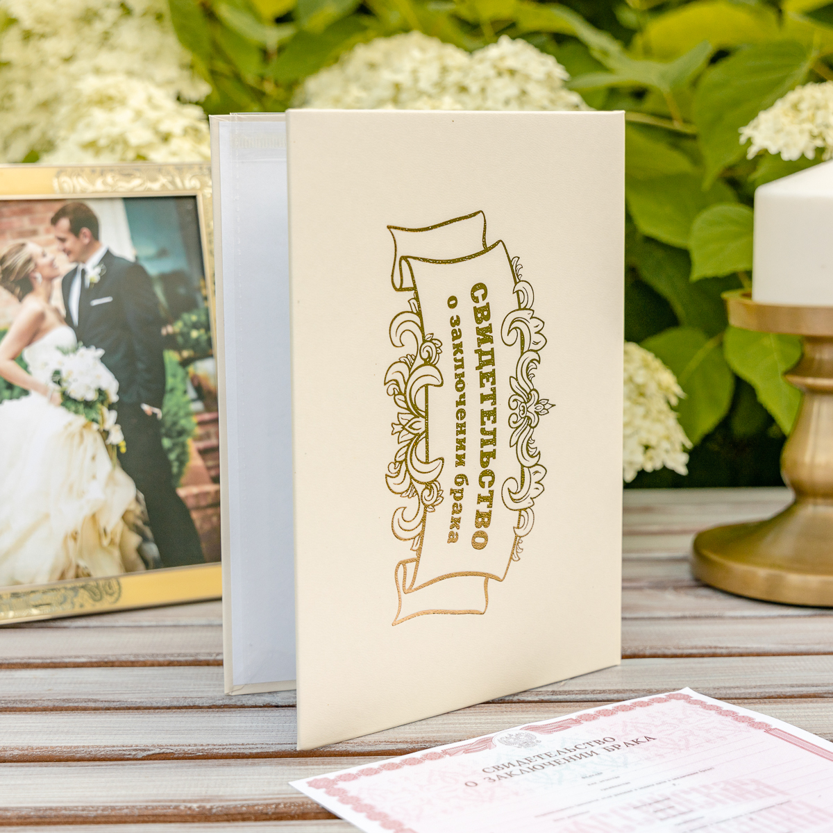 Складная папка для свидетельства о заключении брака молочного цвета с золотым тиснением, формат А5