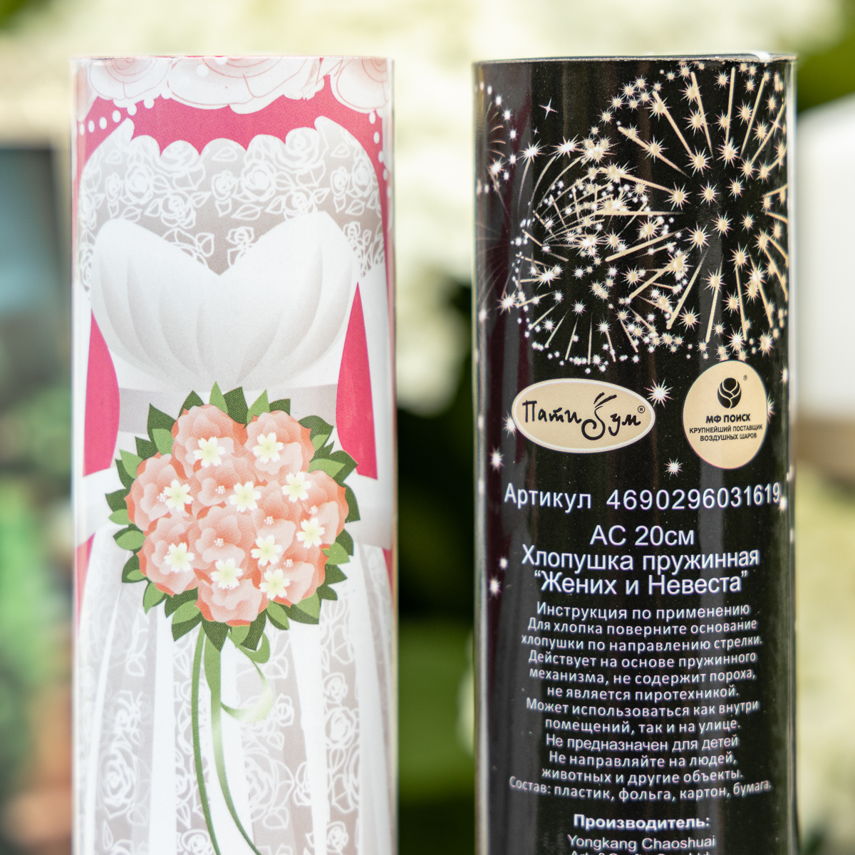 Праздничная хлопушка, Конфетти Сердца Картон, Фольга, белый, черный Свадебная Мечта 20 см