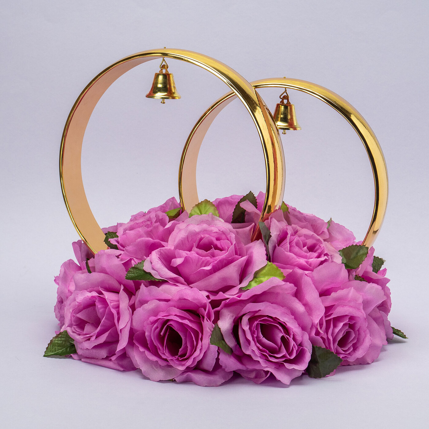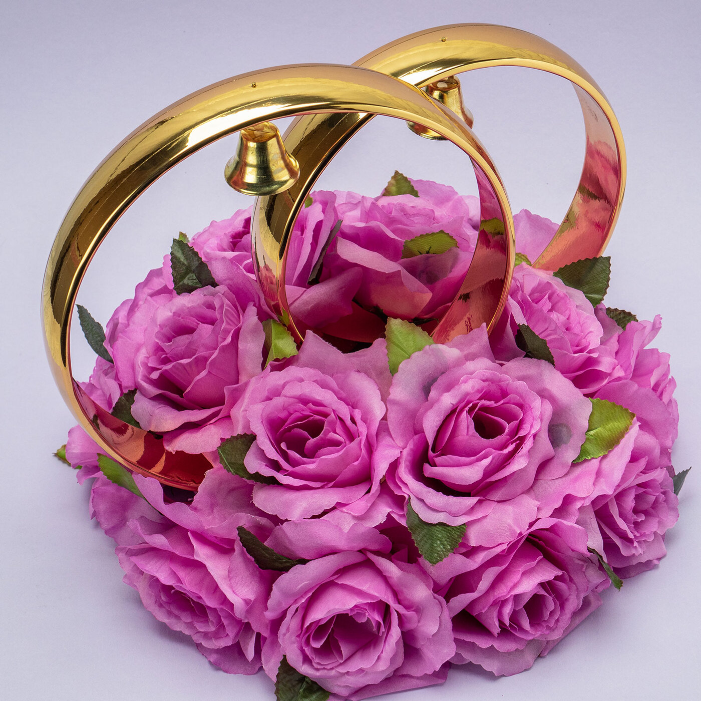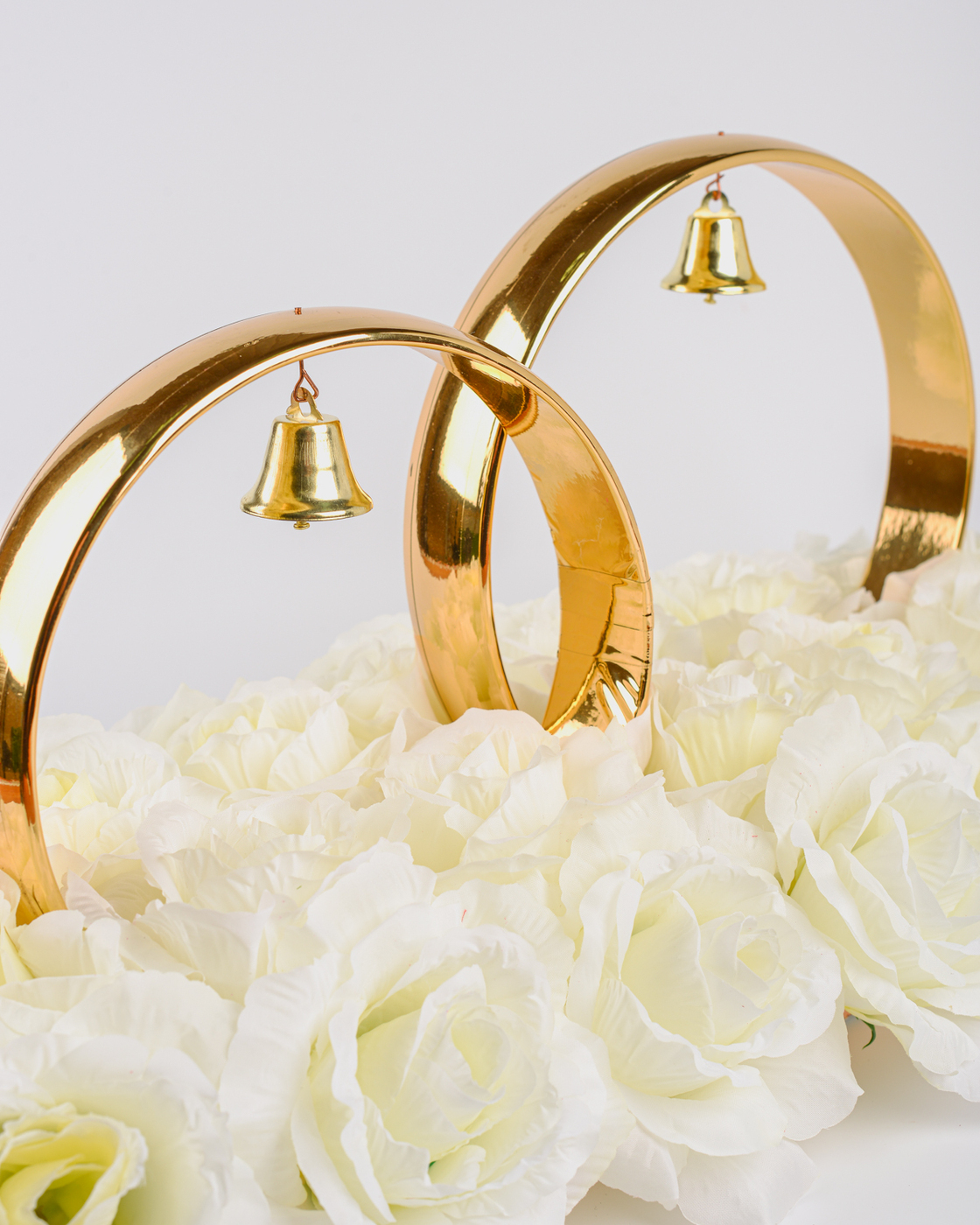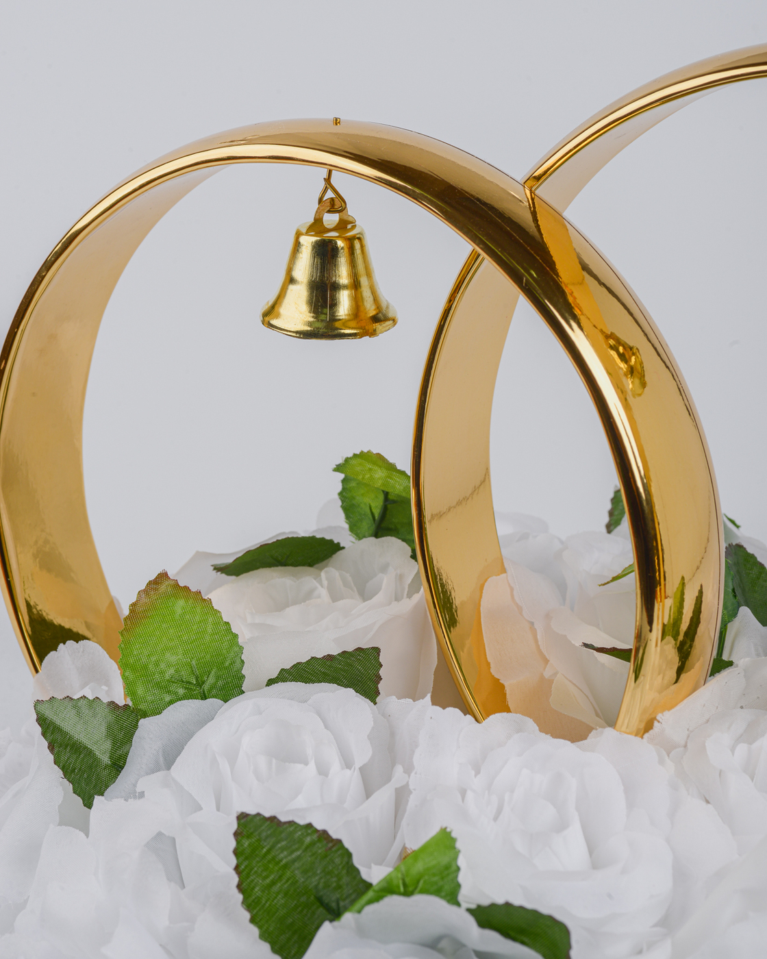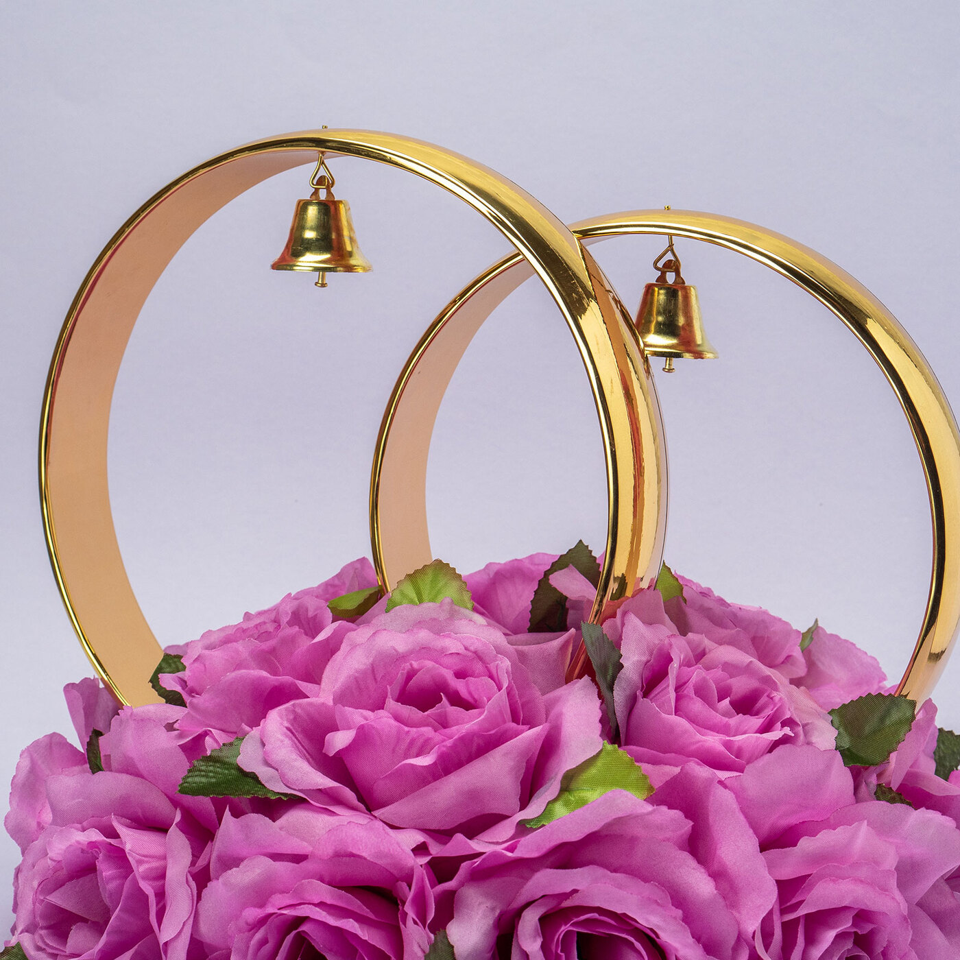 Яркий альбом для пожеланий на свадьбу "Обручальные кольца" с розами чайного цвета, золотыми колечками, вензелями и надписью