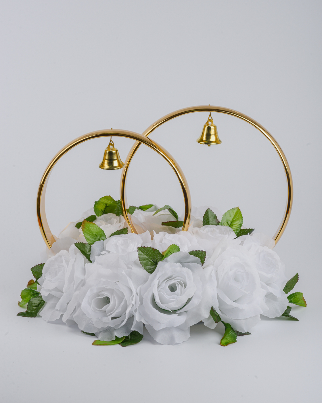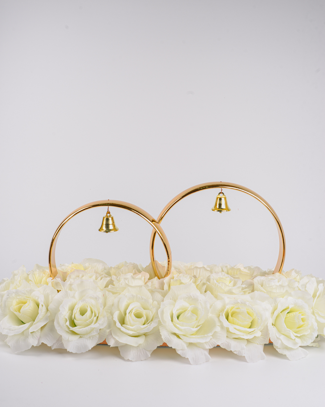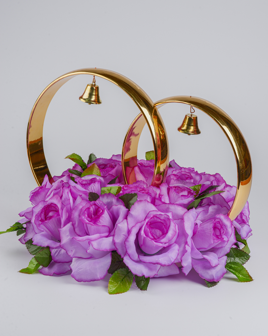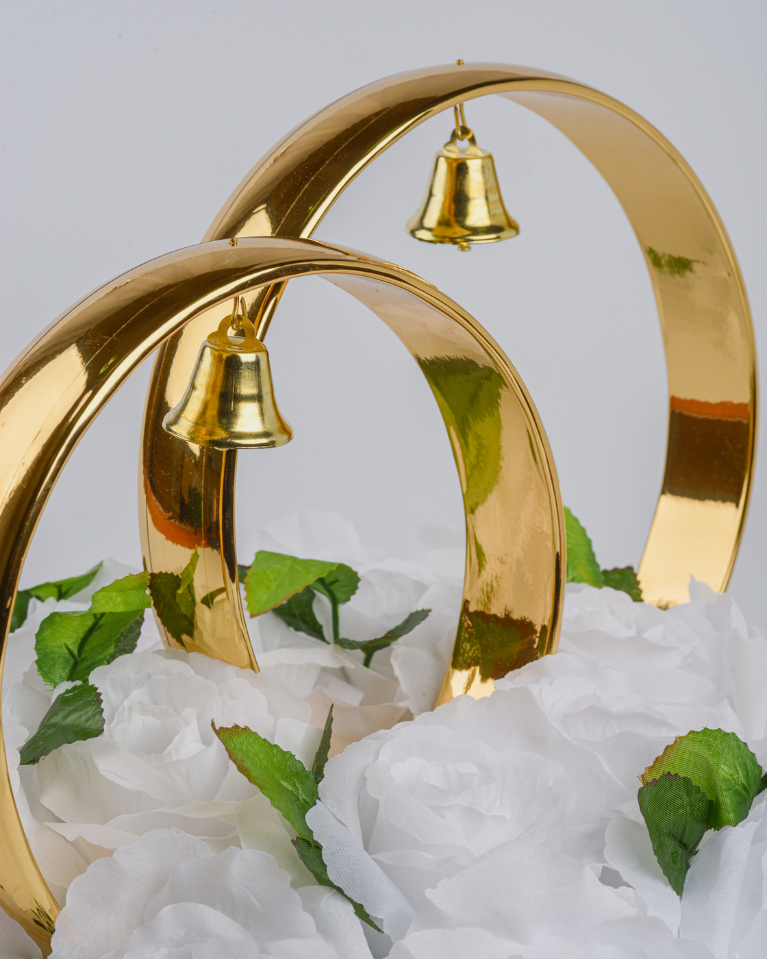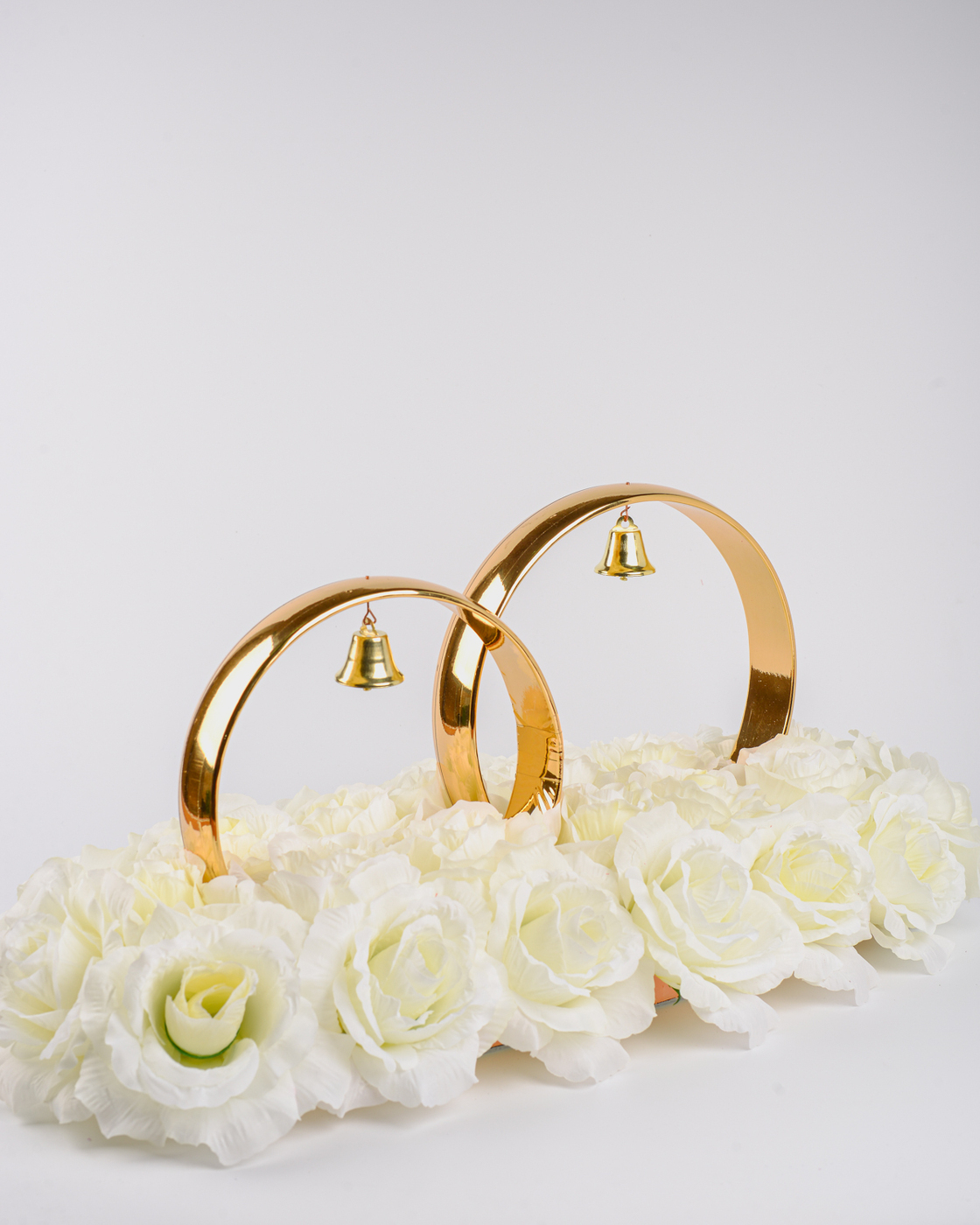 Яркий альбом для пожеланий на свадьбу "Обручальные кольца" с розами чайного цвета, золотыми колечками, вензелями и надписью