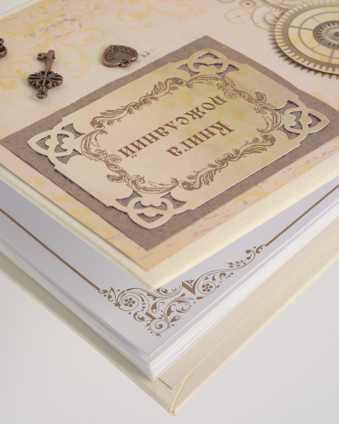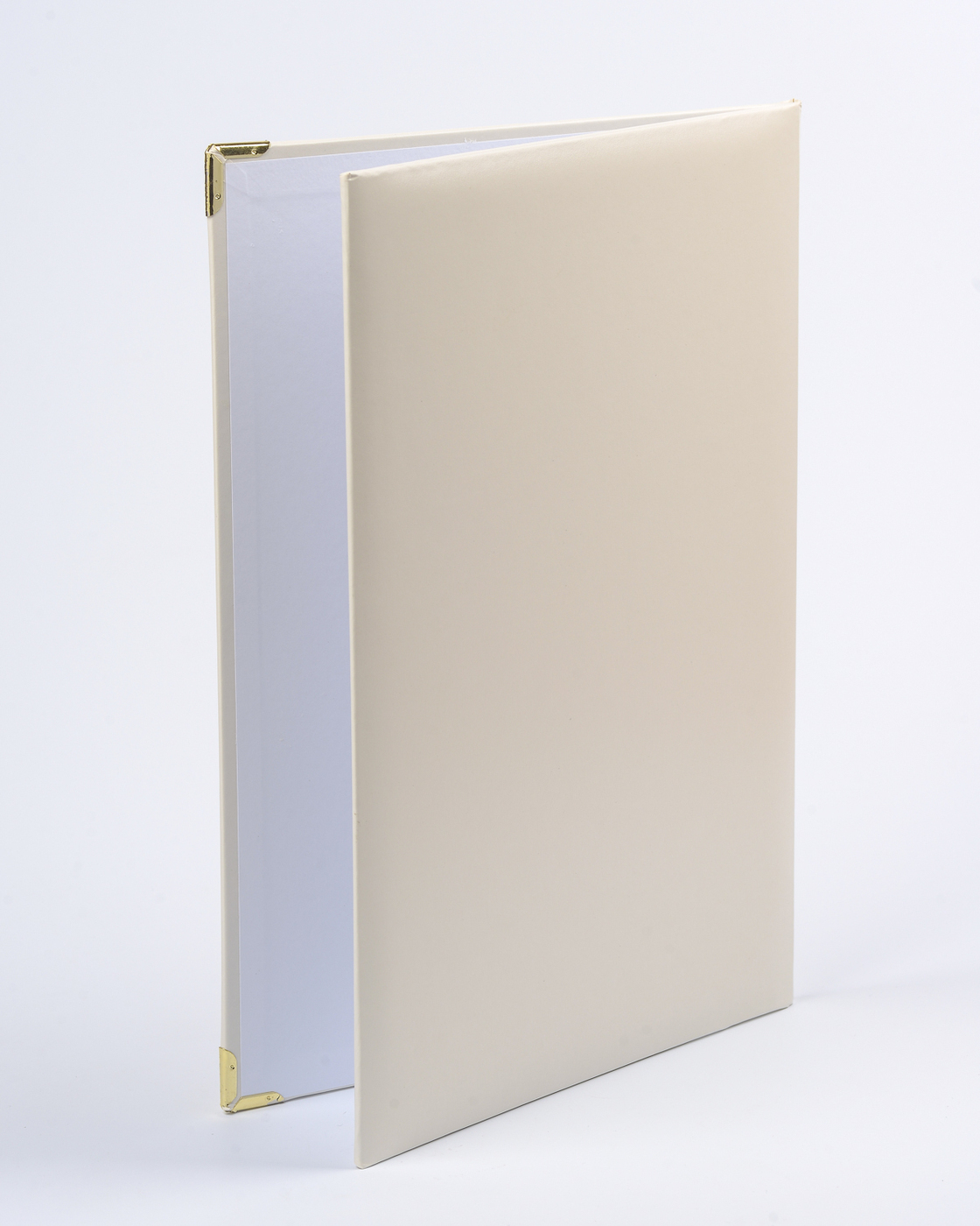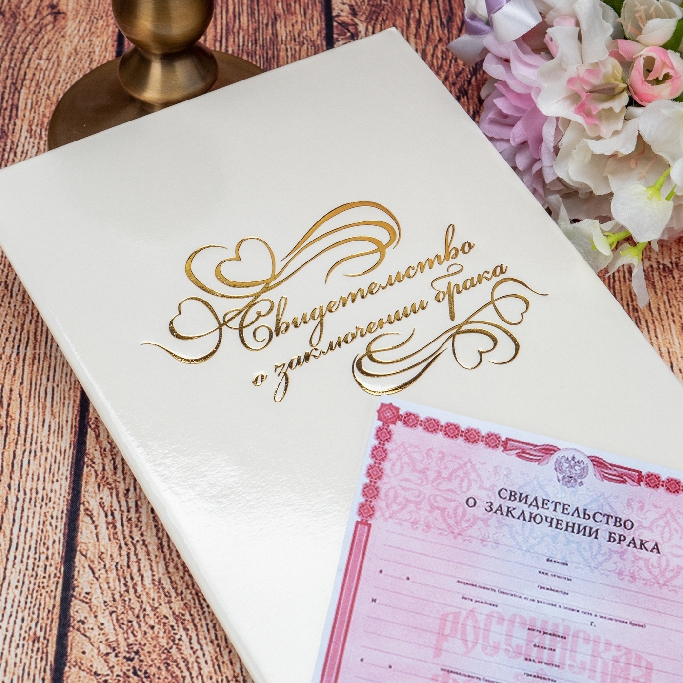Классическая свадебная папка для свидетельства о заключении брака цвета айвори с золотой надписью, узором и металлическими уголками