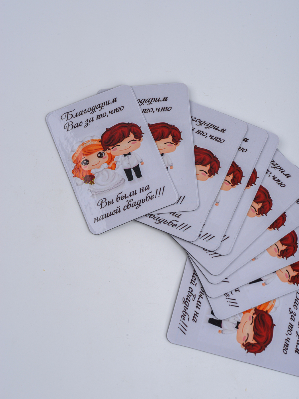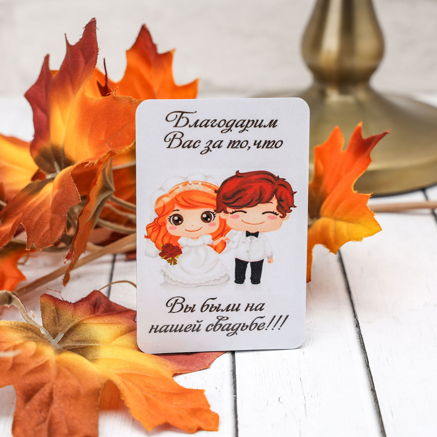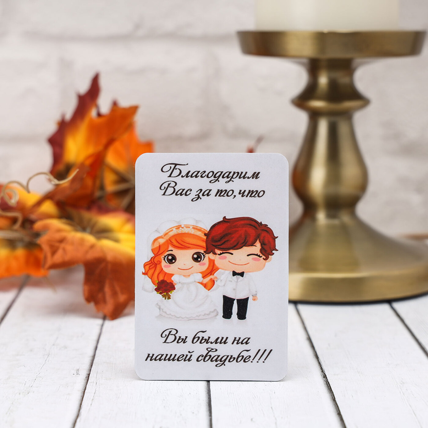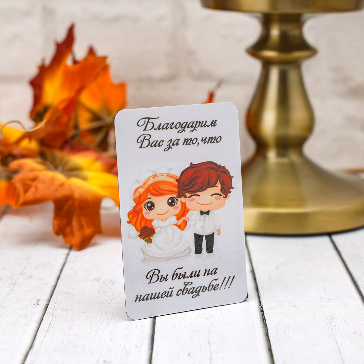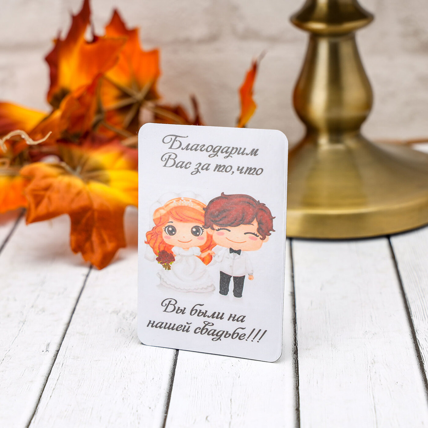 Свадебный магнит в подарок гостям с милыми молодоженами и надписью, 10 штук