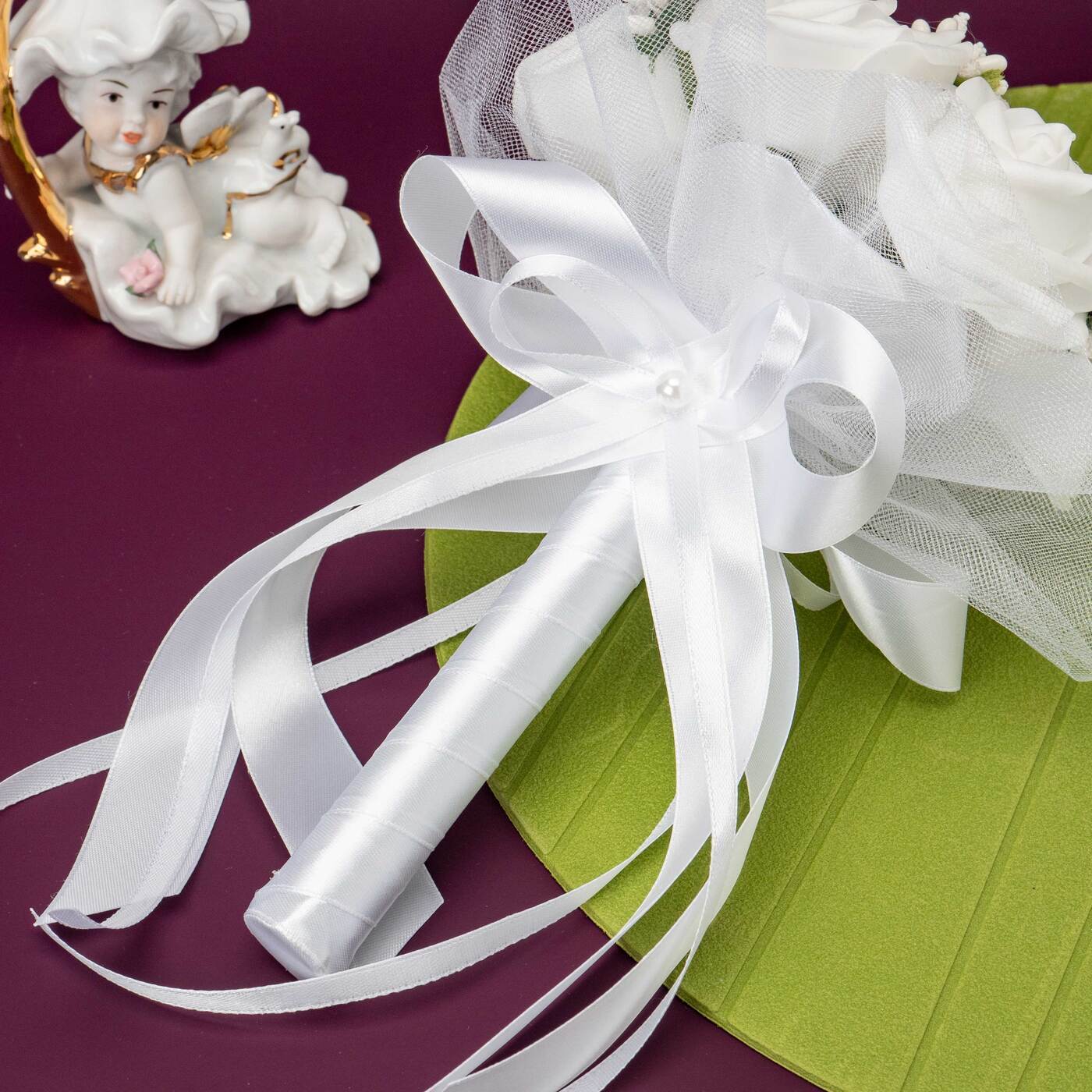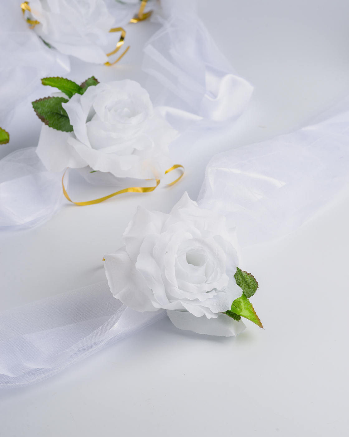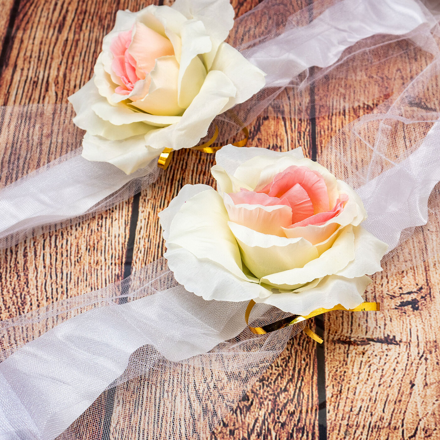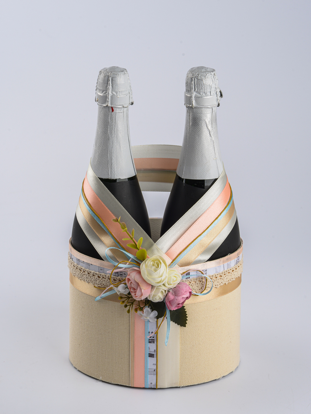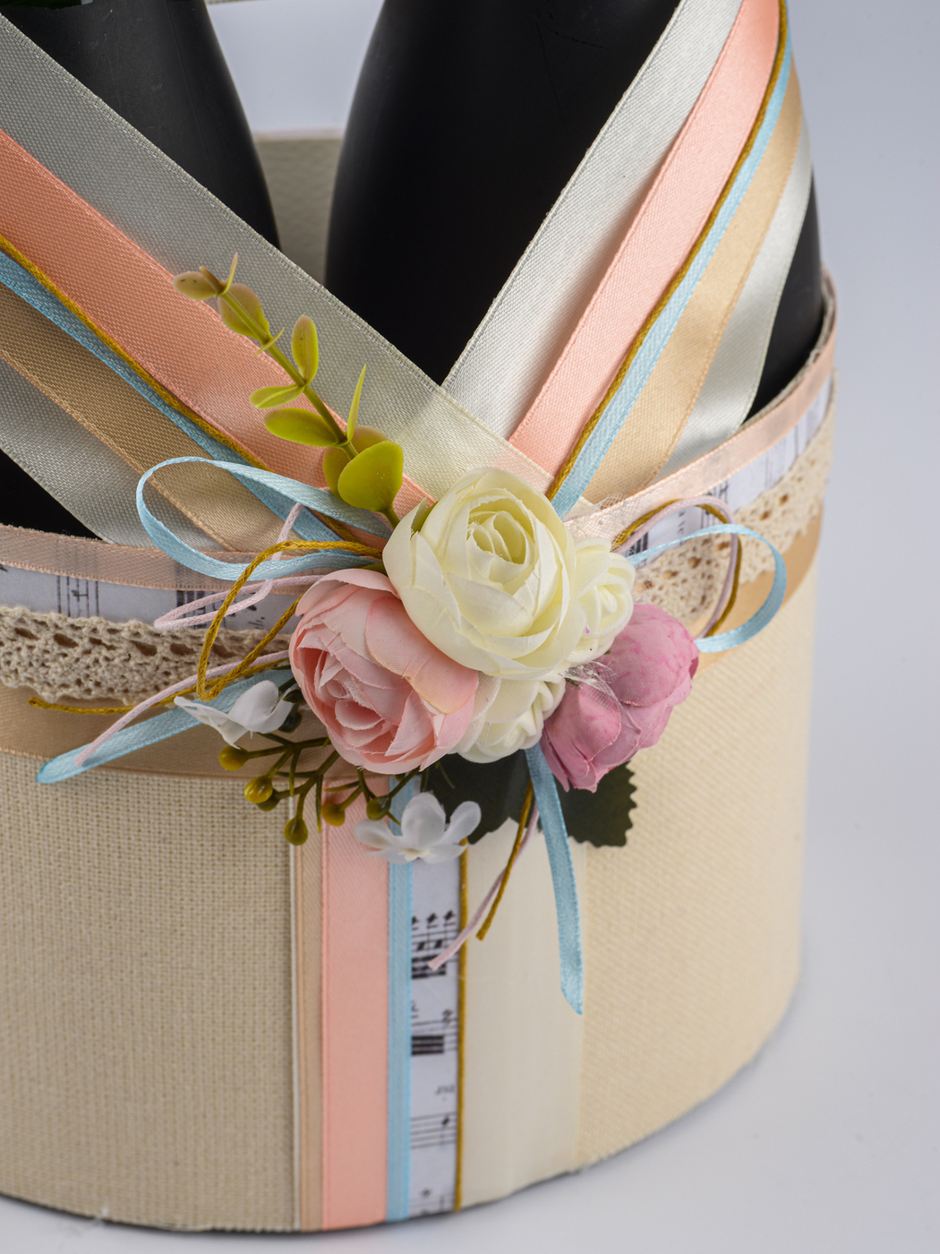 Двухцветная лента - рюш из атласной ленты на капот свадебного авто, белая и персиковая, 3 метра