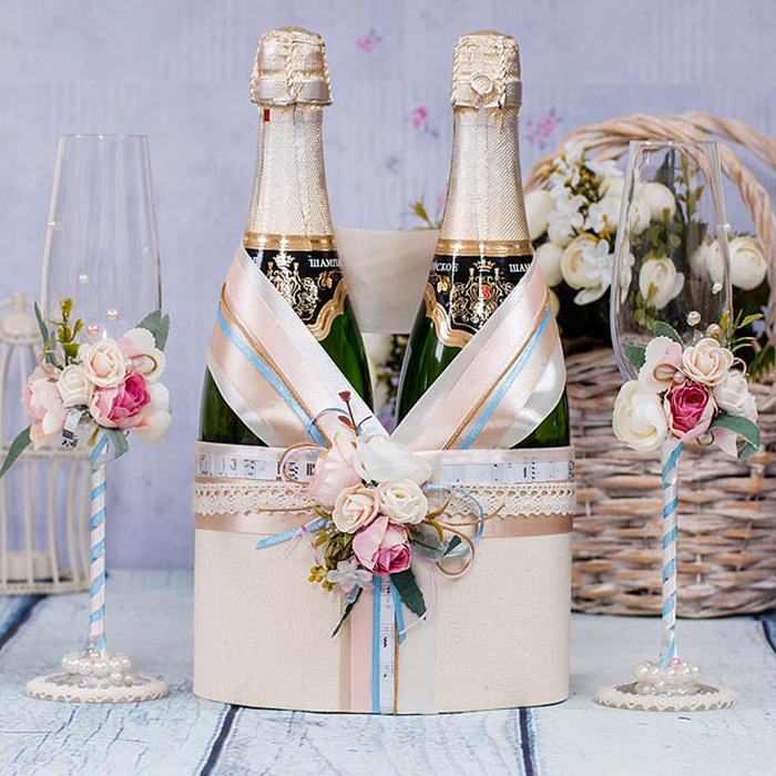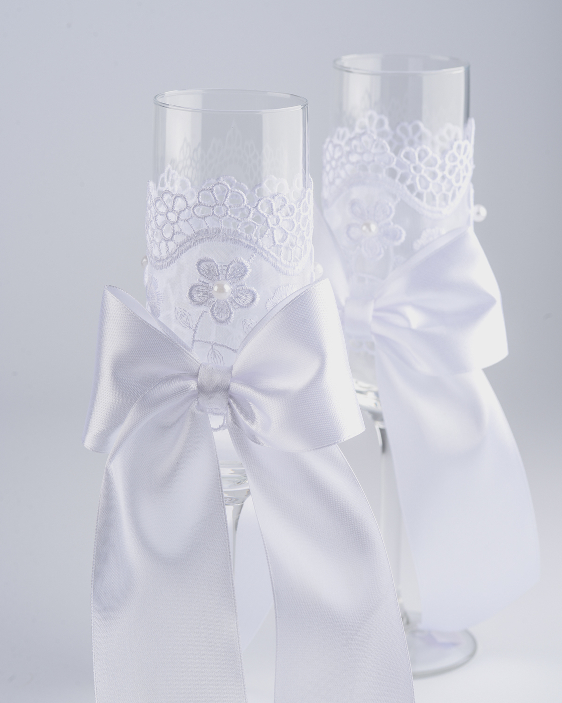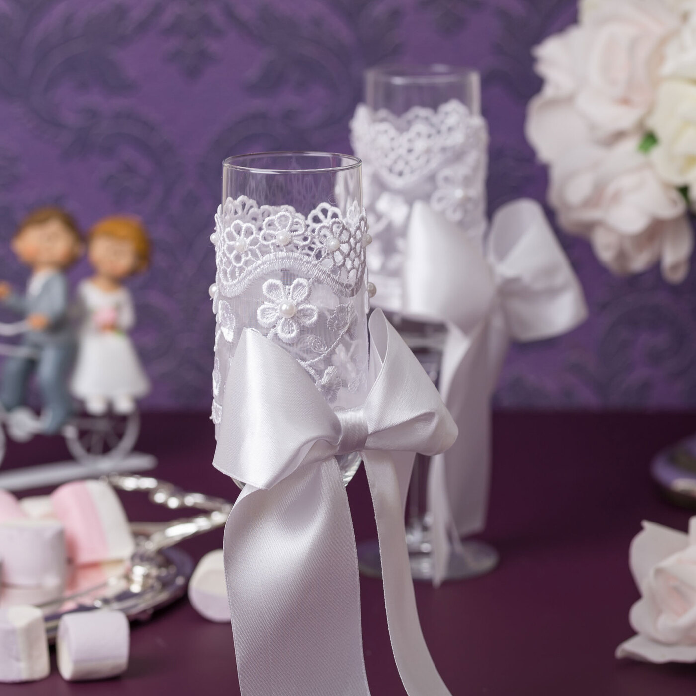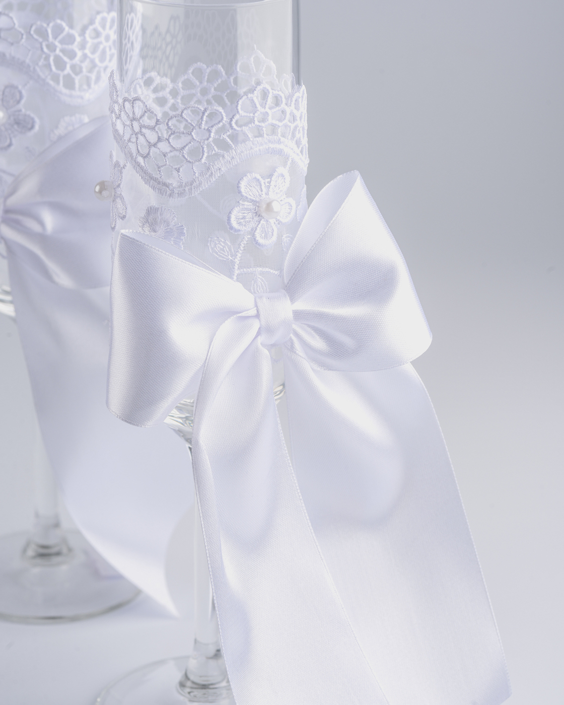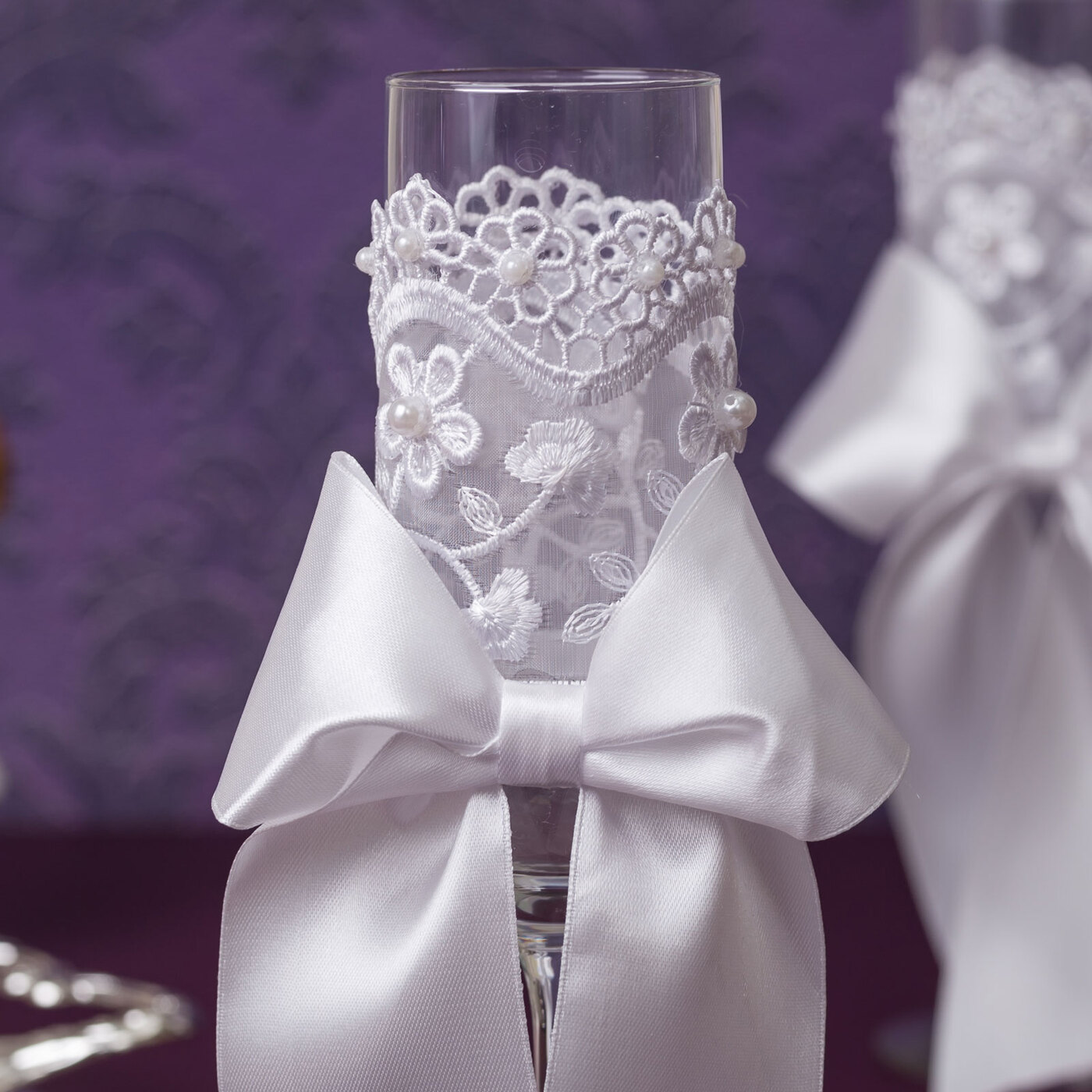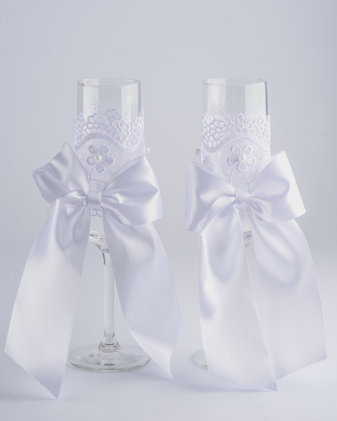 Двухцветная лента - рюш из атласной ленты на капот свадебного авто, белая и персиковая, 3 метра