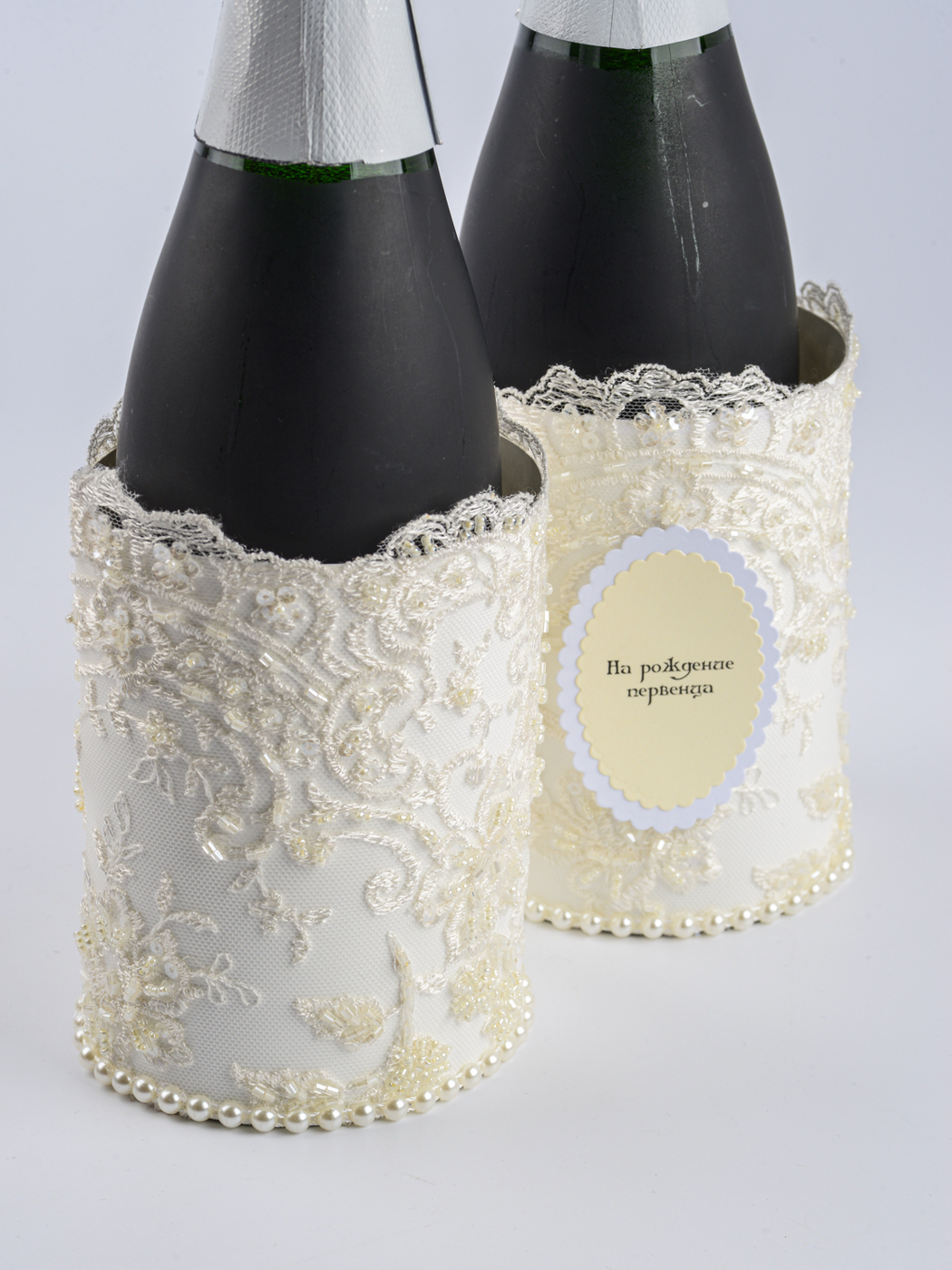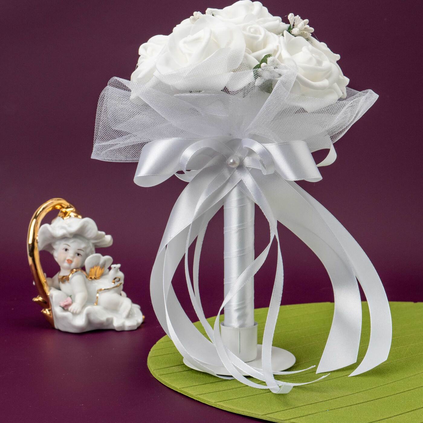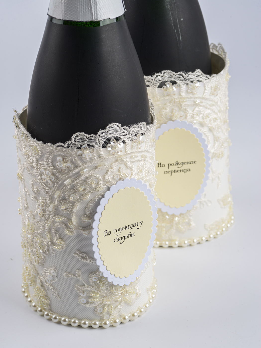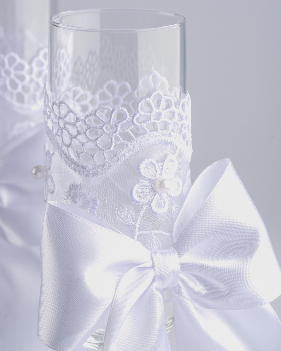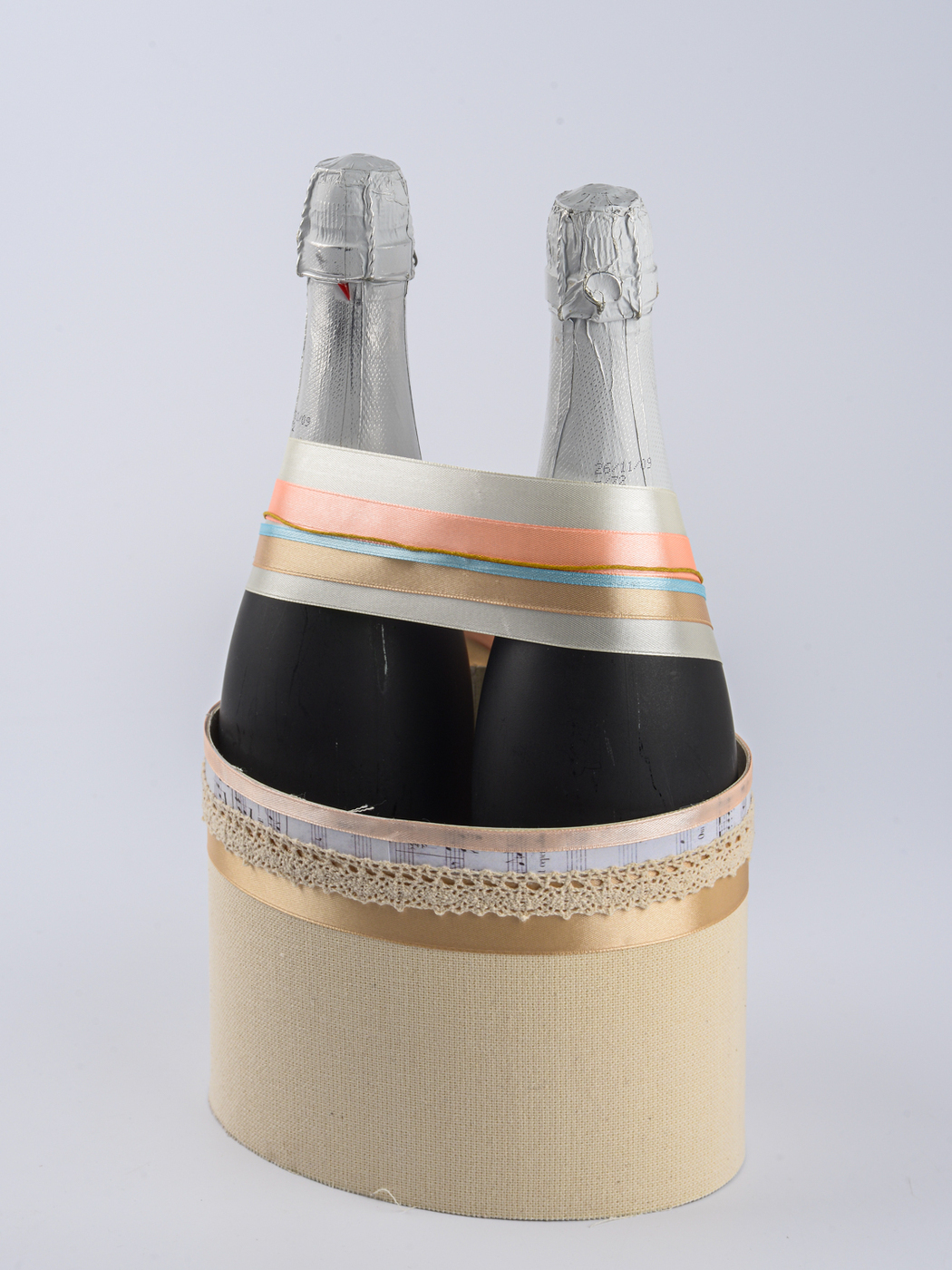 Двухцветная лента - рюш из атласной ленты на капот свадебного авто, белая и персиковая, 3 метра