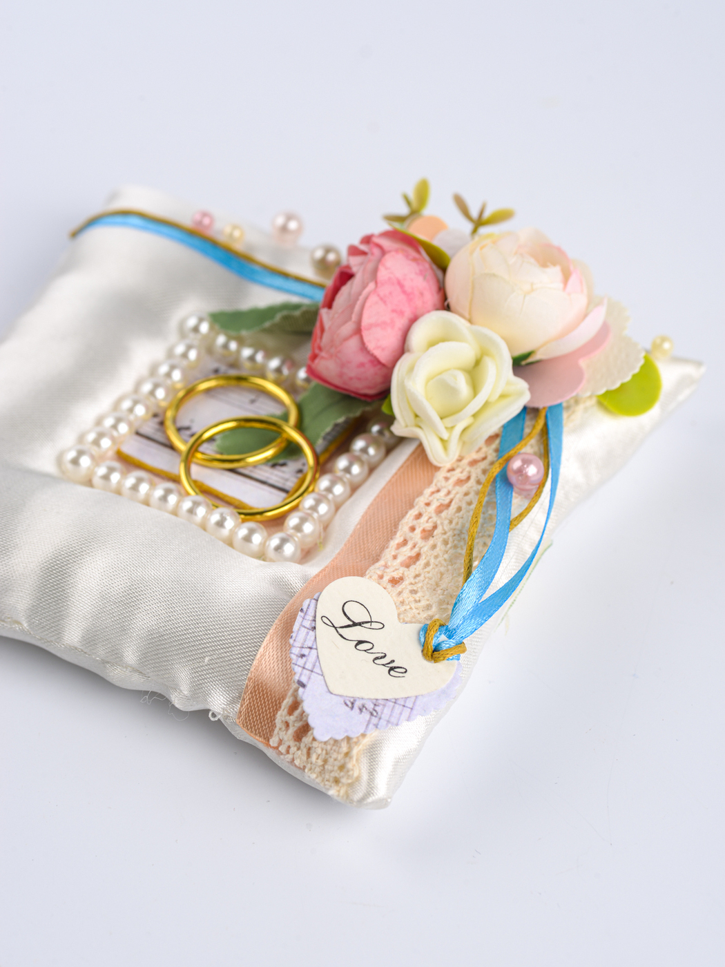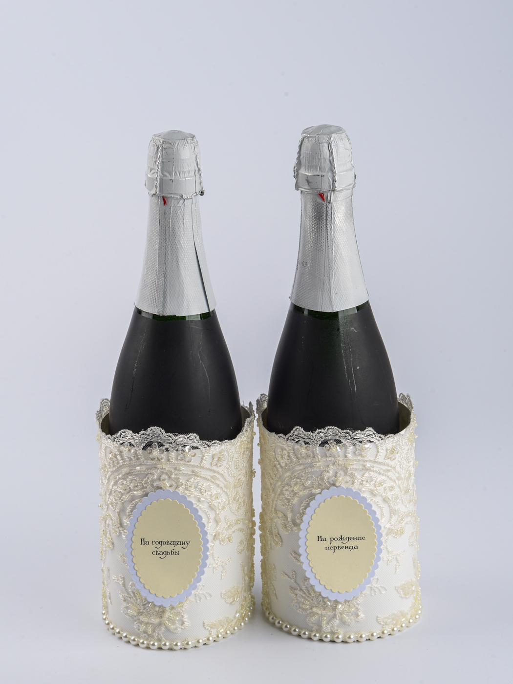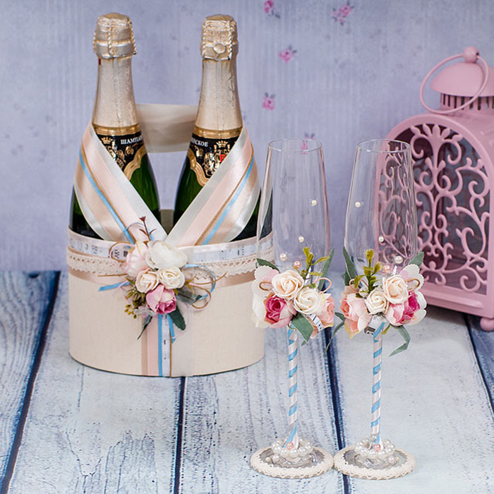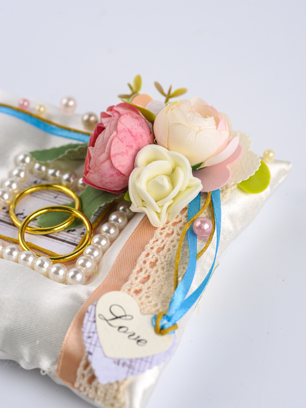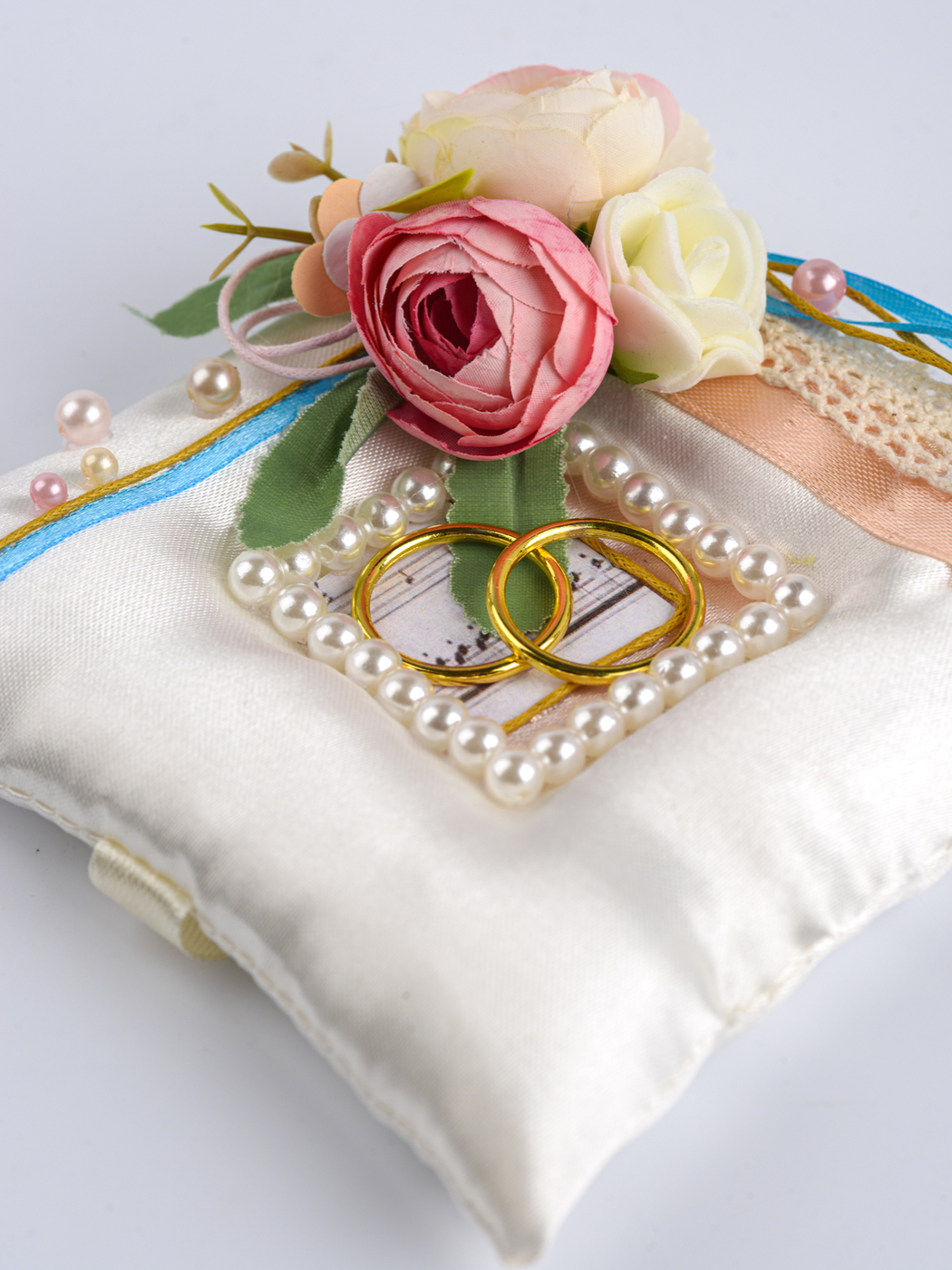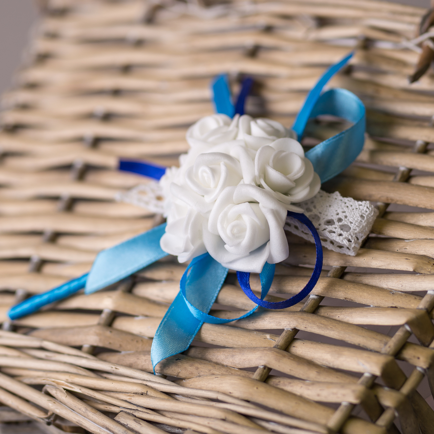 Двухцветная лента - рюш из атласной ленты на капот свадебного авто, белая и персиковая, 3 метра