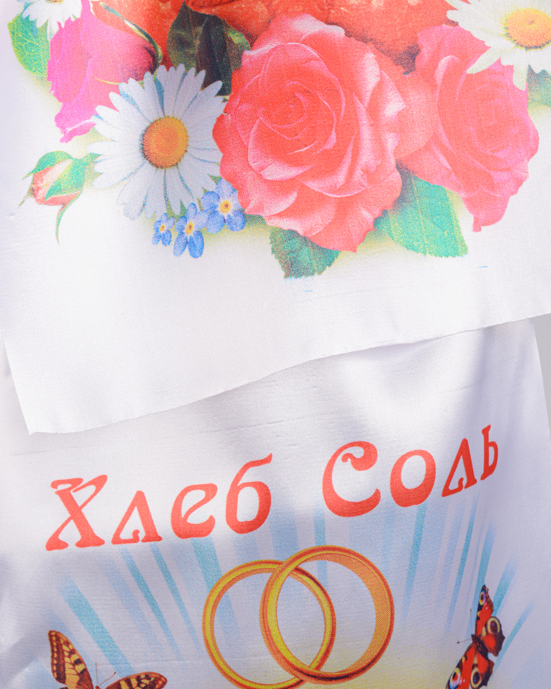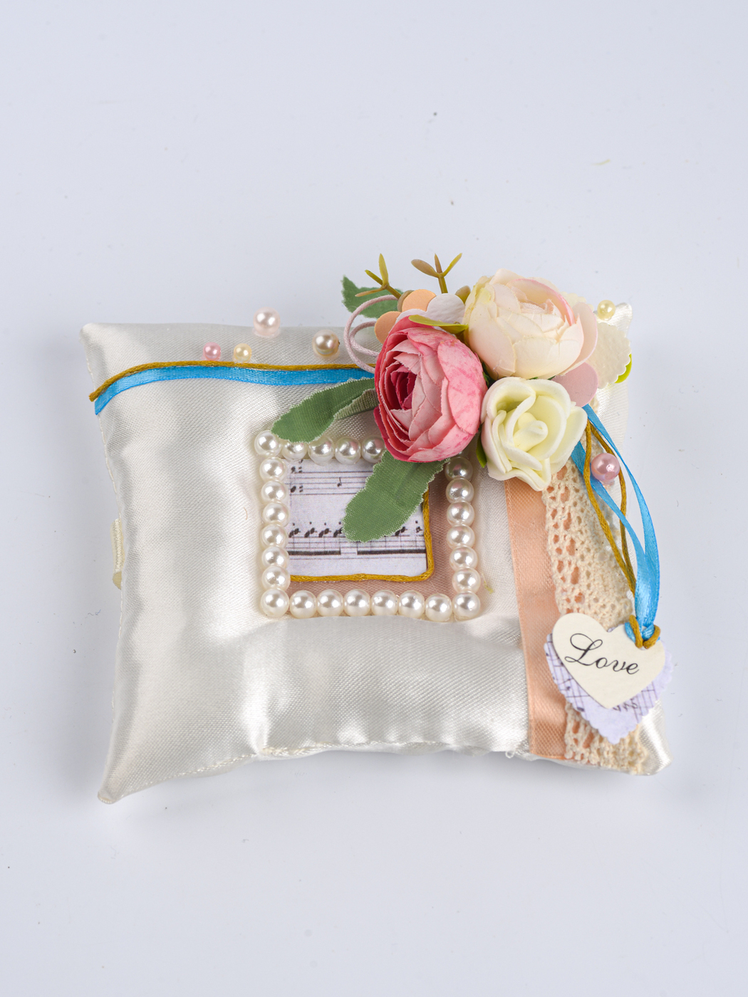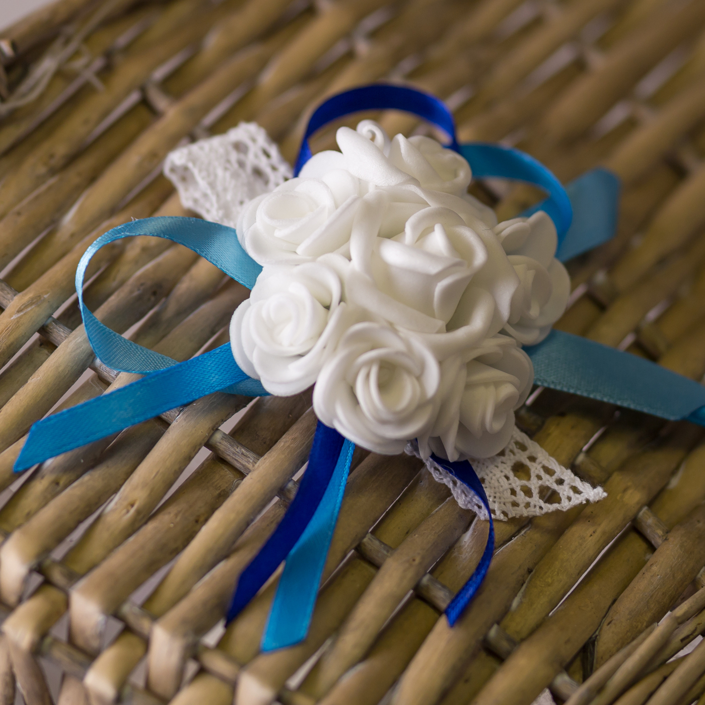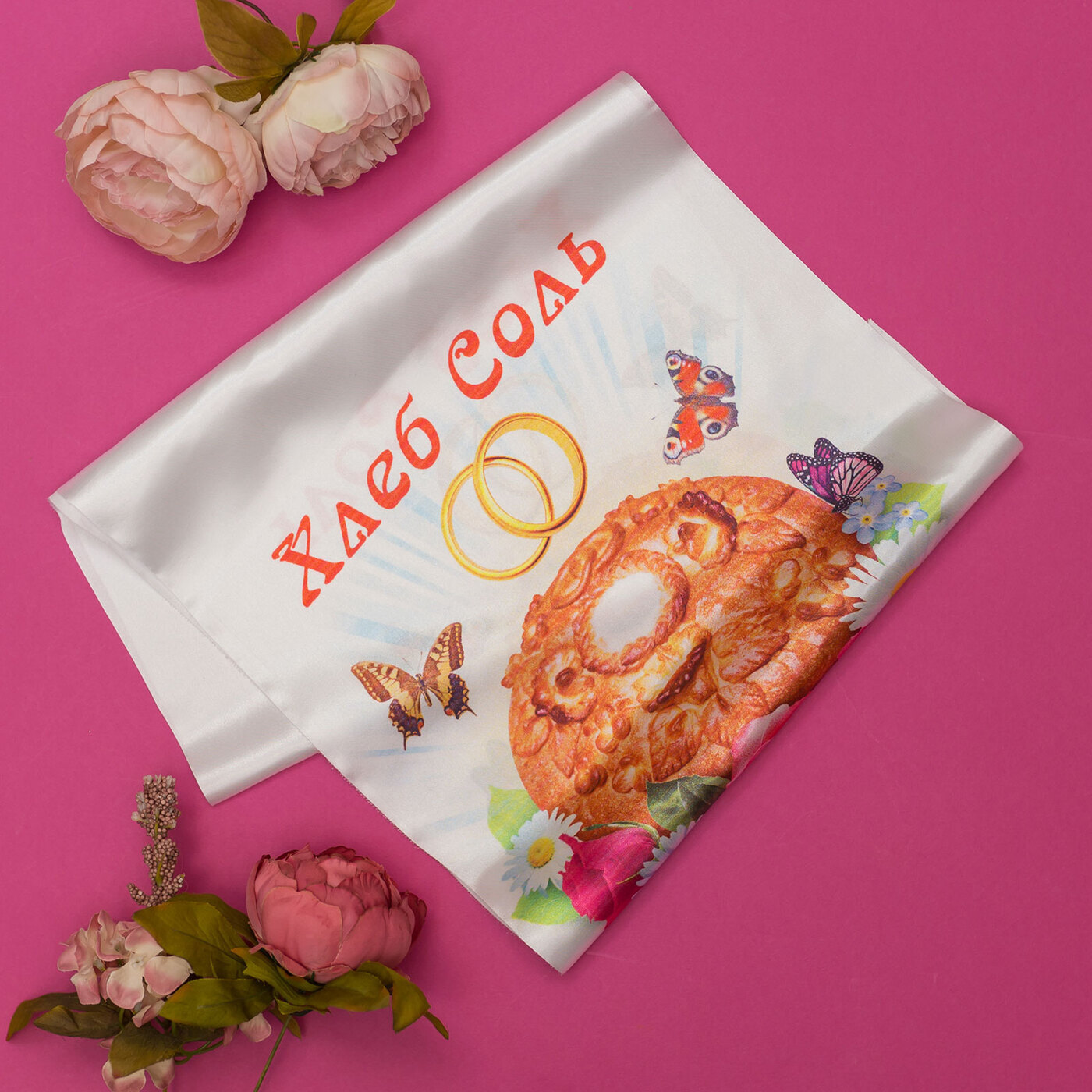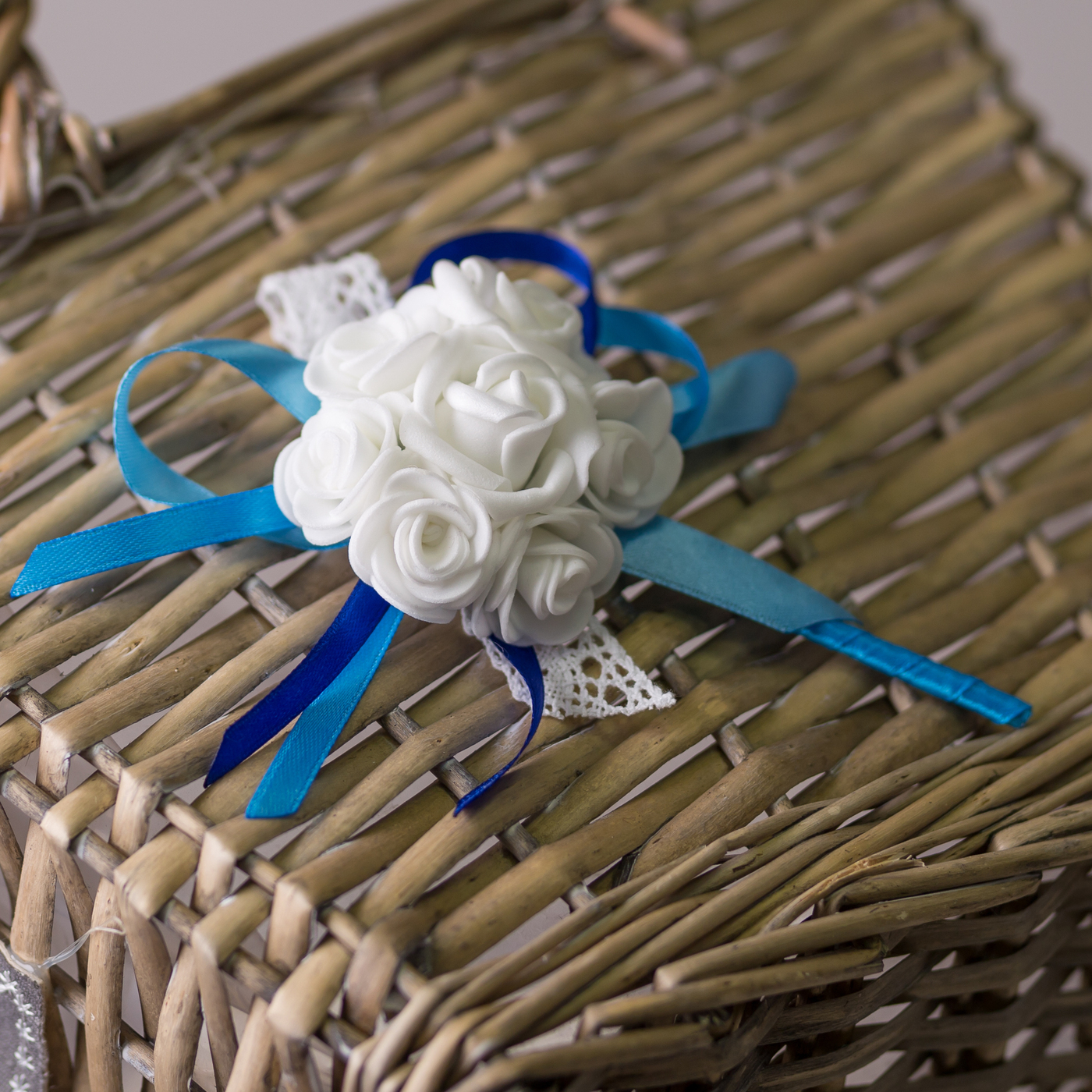 Двухцветная лента - рюш из атласной ленты на капот свадебного авто, белая и персиковая, 3 метра