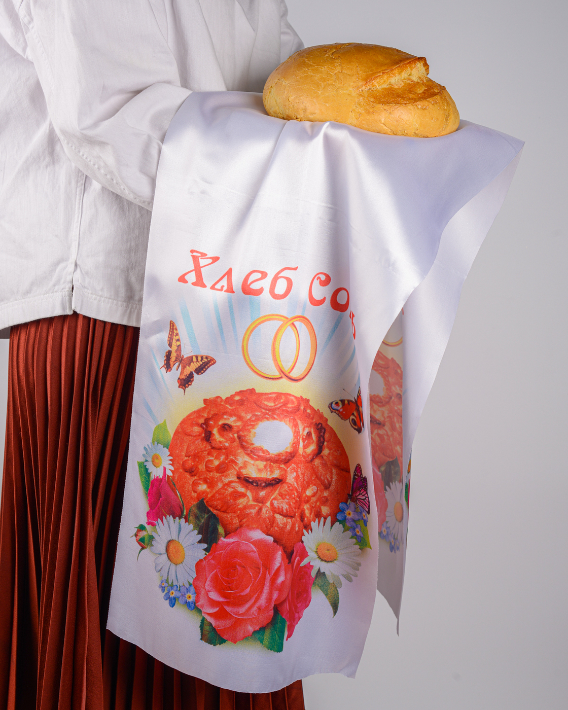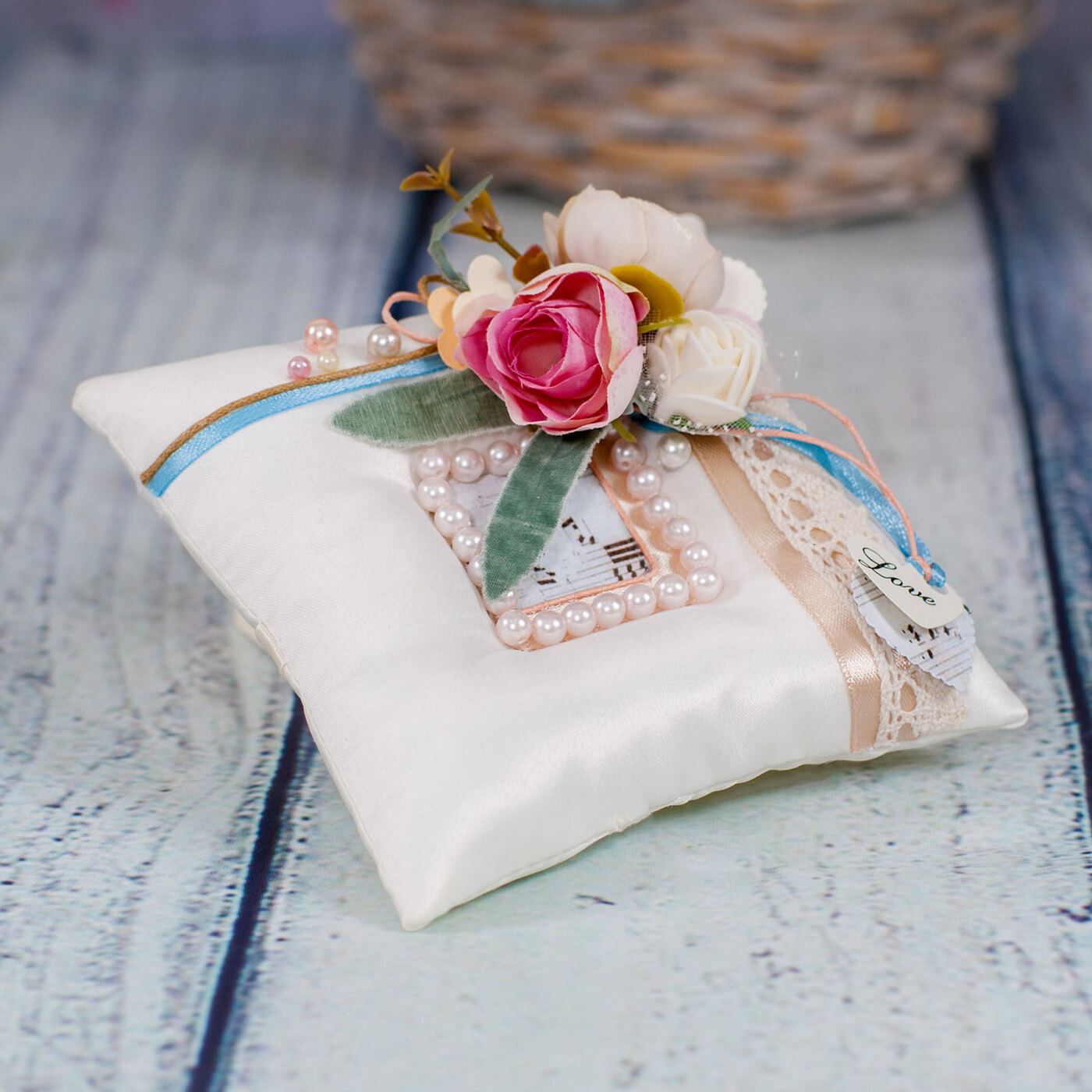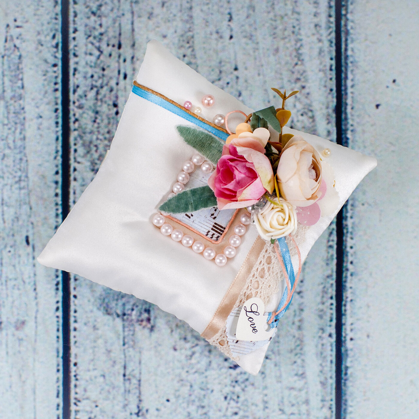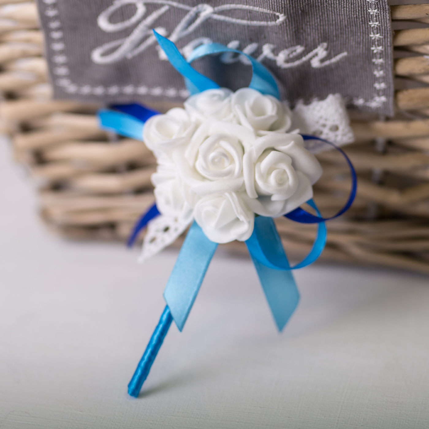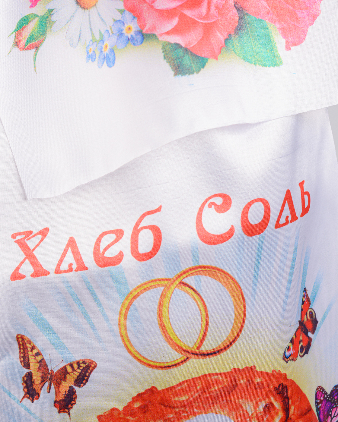Двухцветная лента - рюш из атласной ленты на капот свадебного авто, белая и персиковая, 3 метра