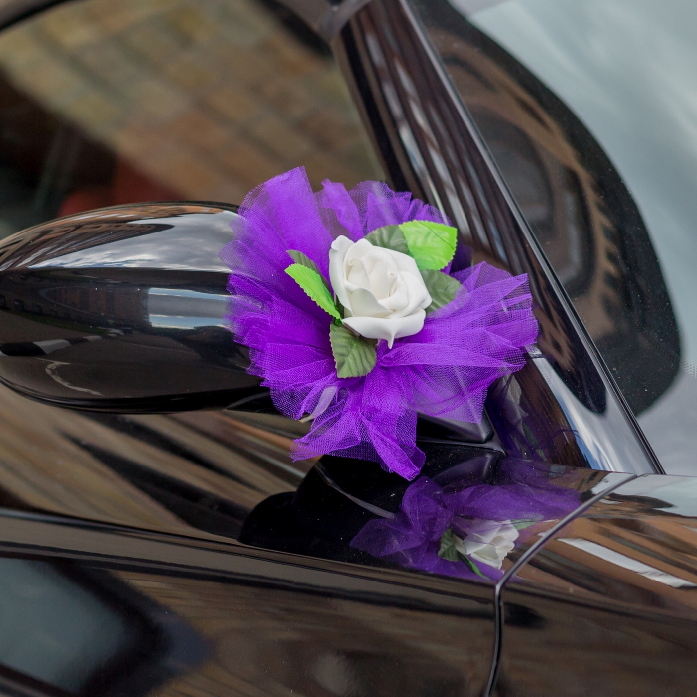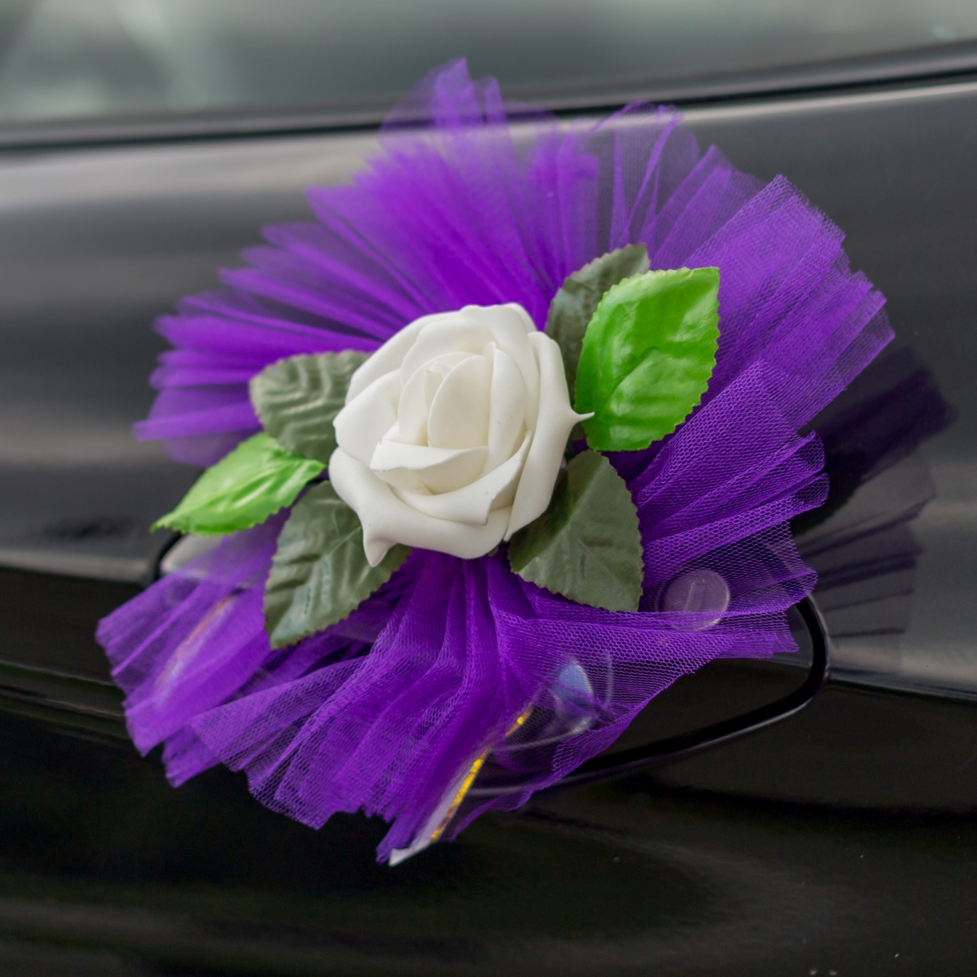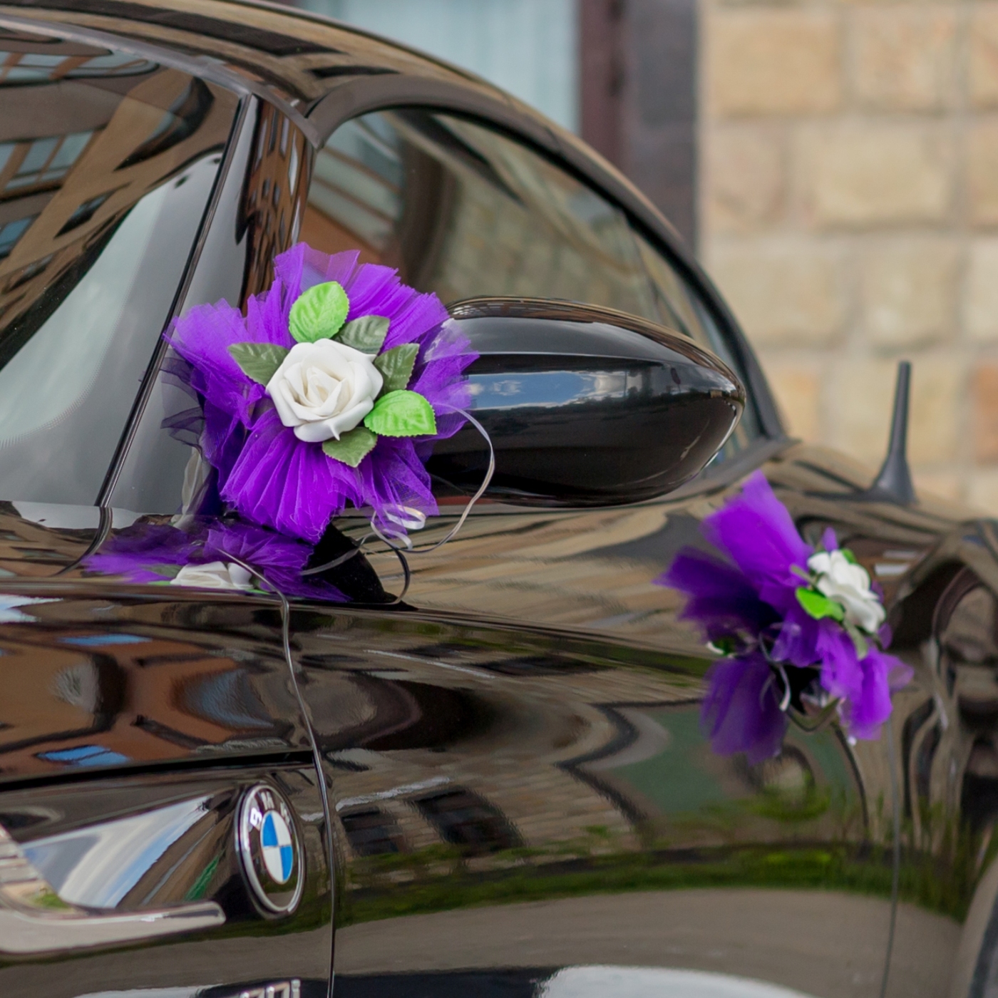 Двухцветная лента - рюш из атласной ленты на капот свадебной машины, белая и ярко-малиновая, 3 метра
