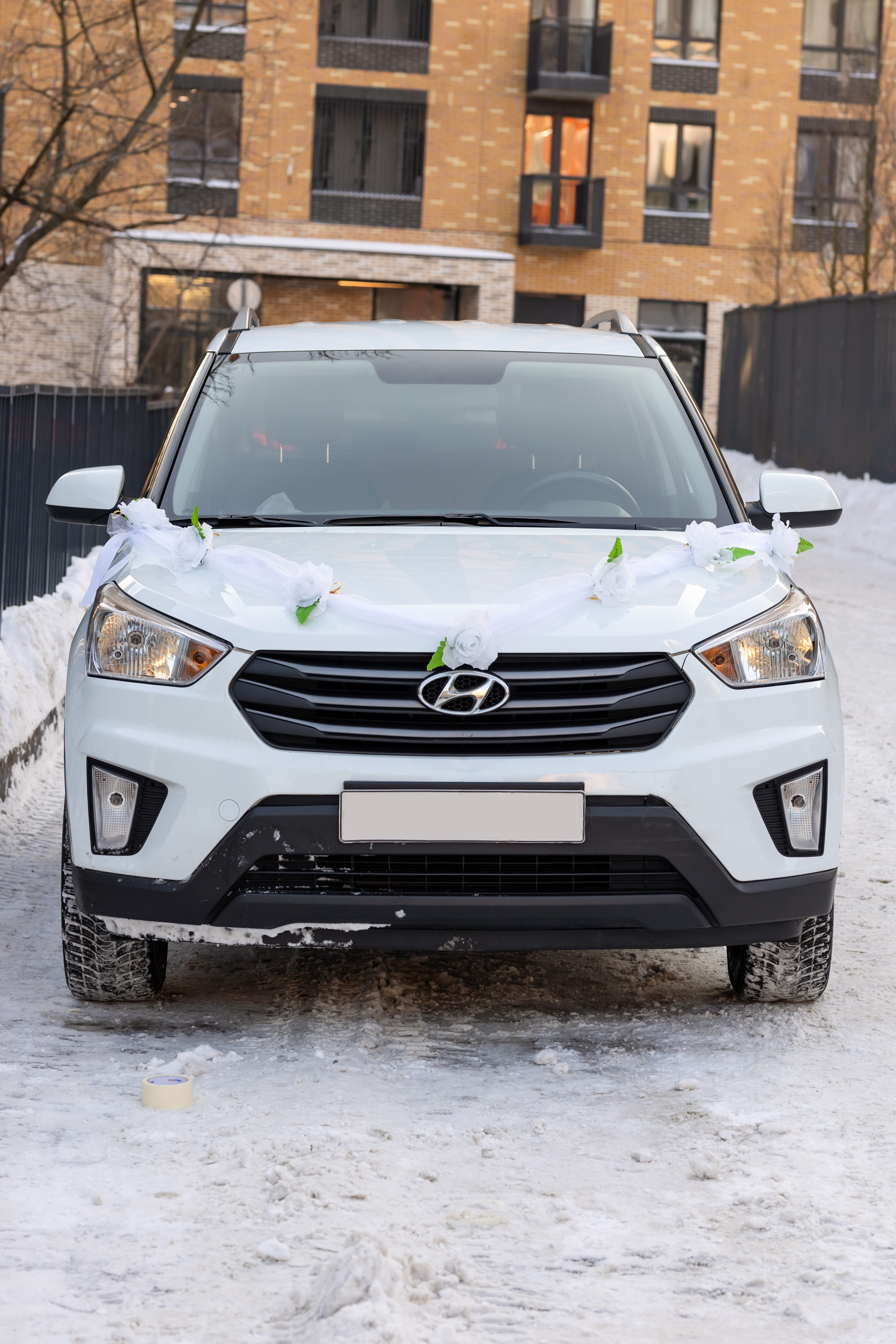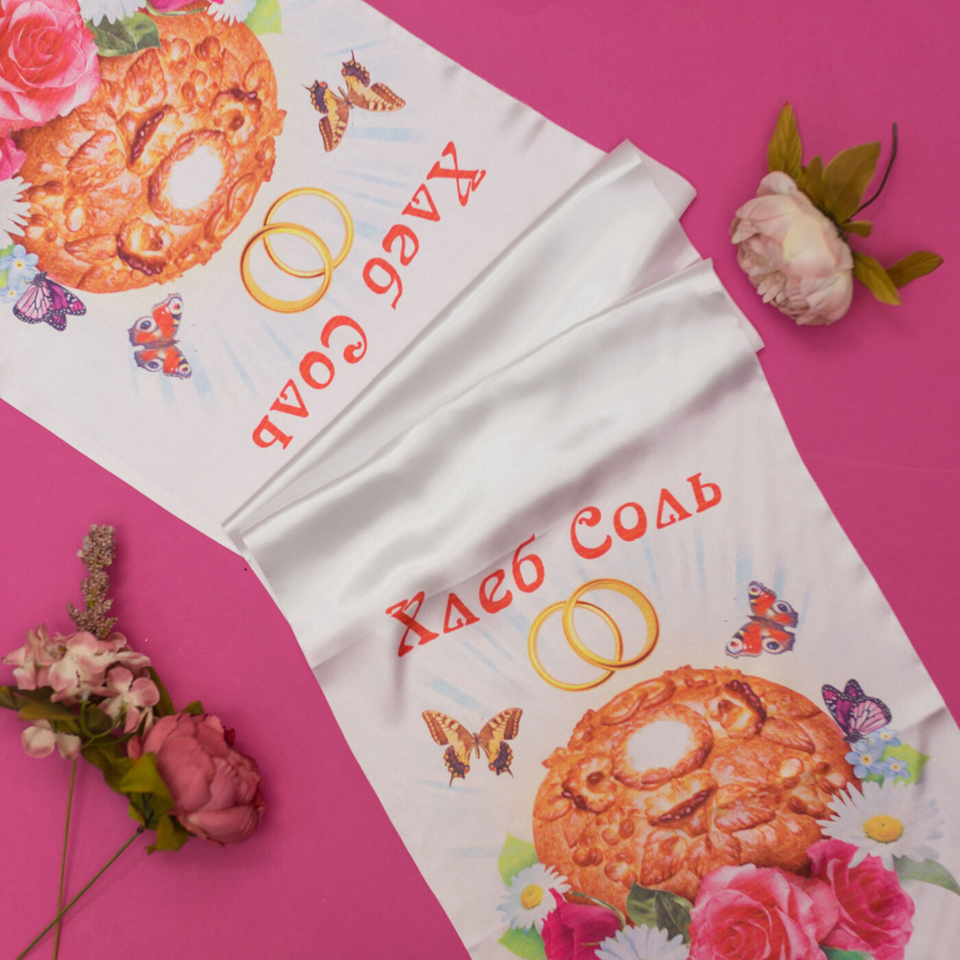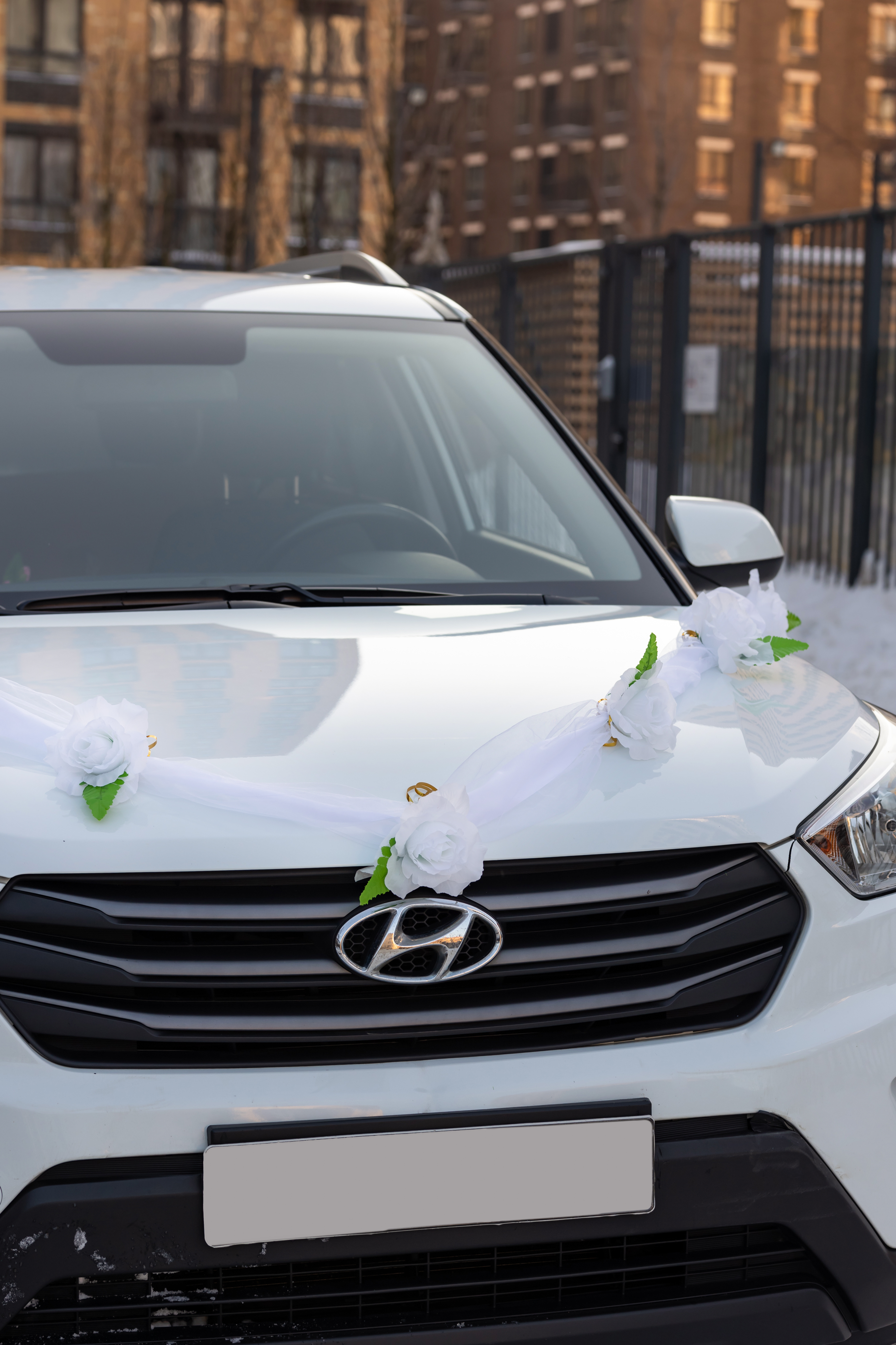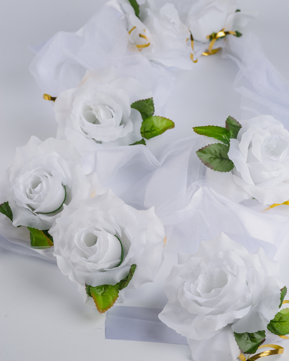 Двухцветная лента - рюш из атласной ленты на капот свадебной машины, белая и ярко-малиновая, 3 метра
