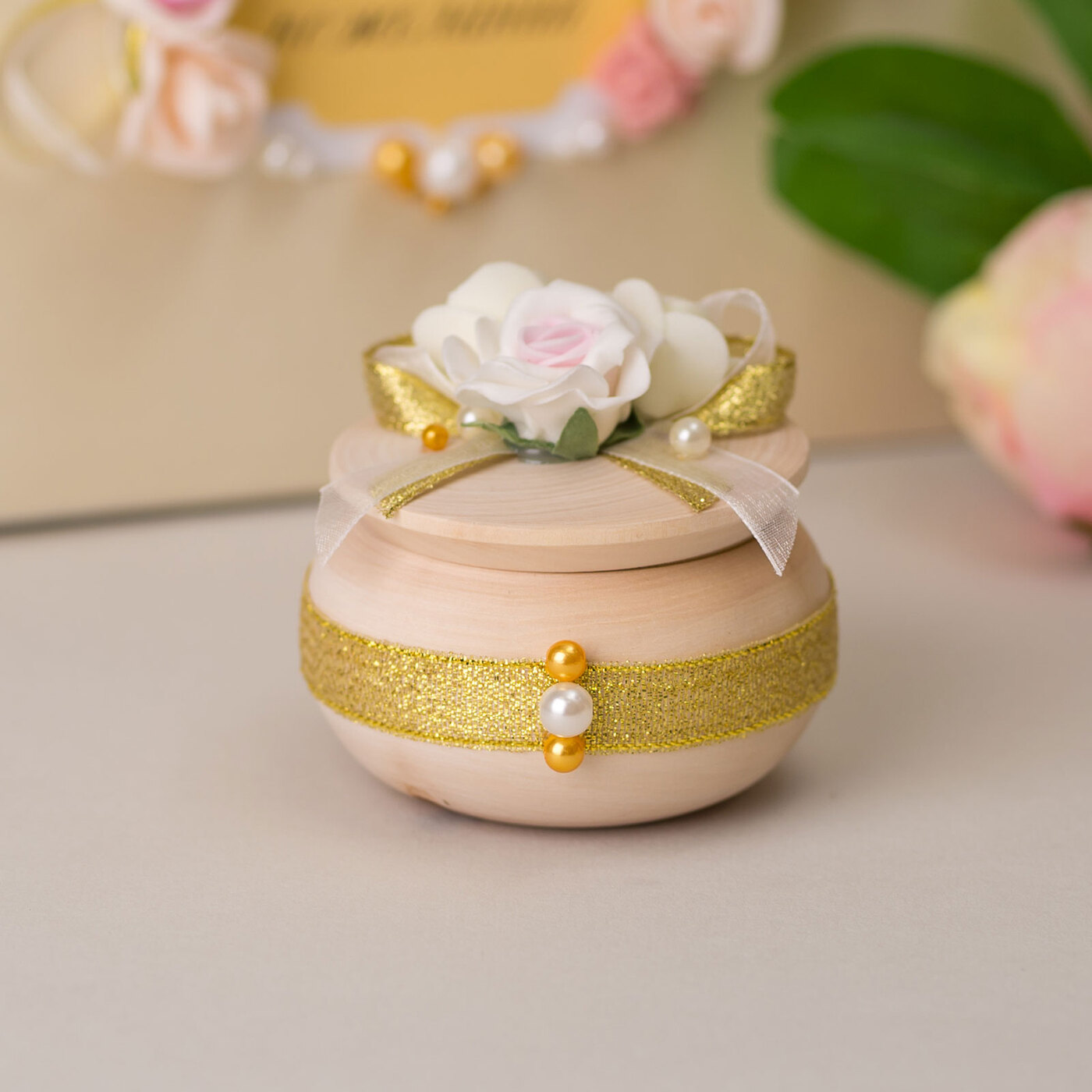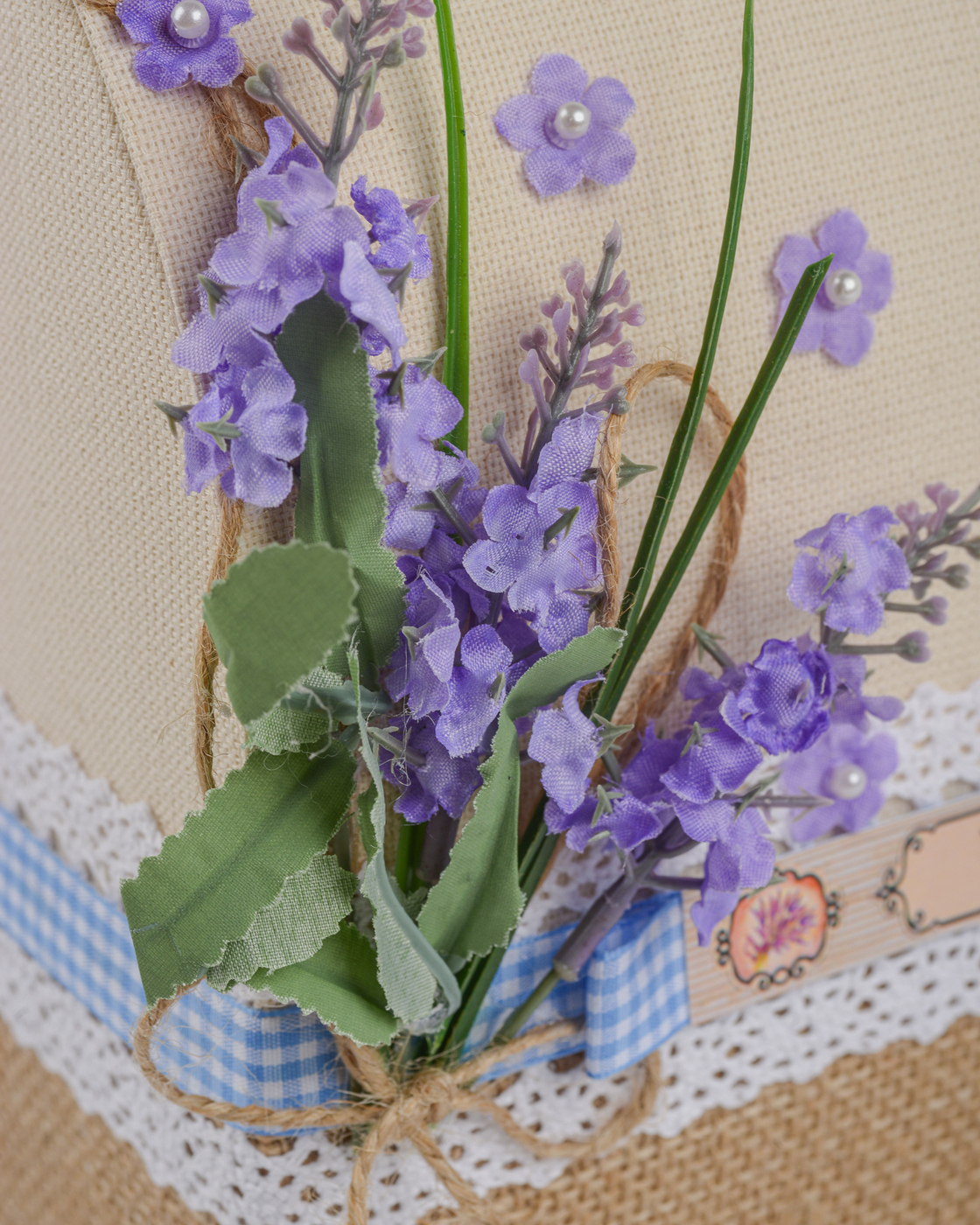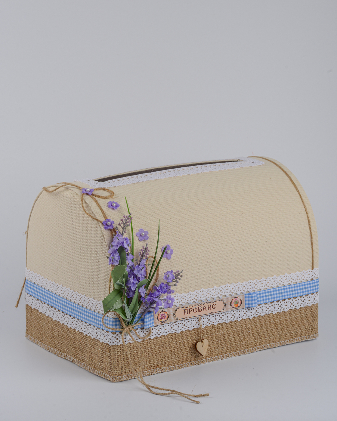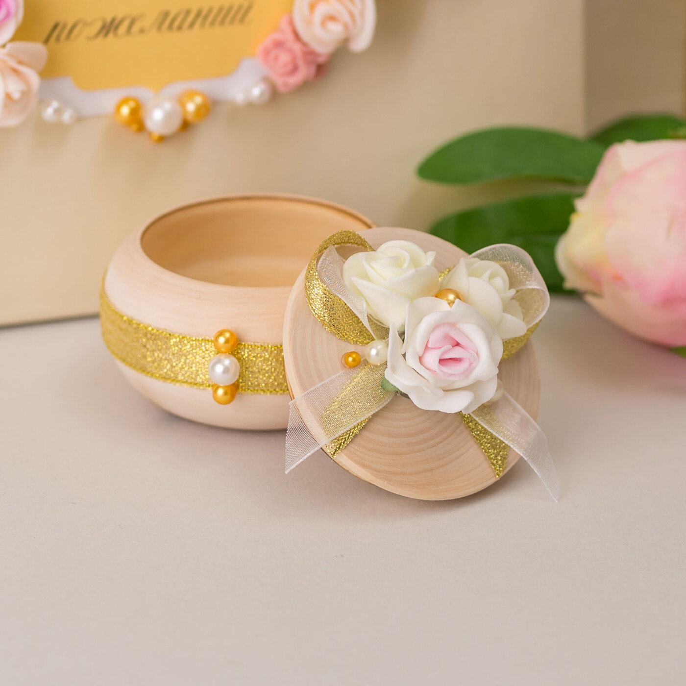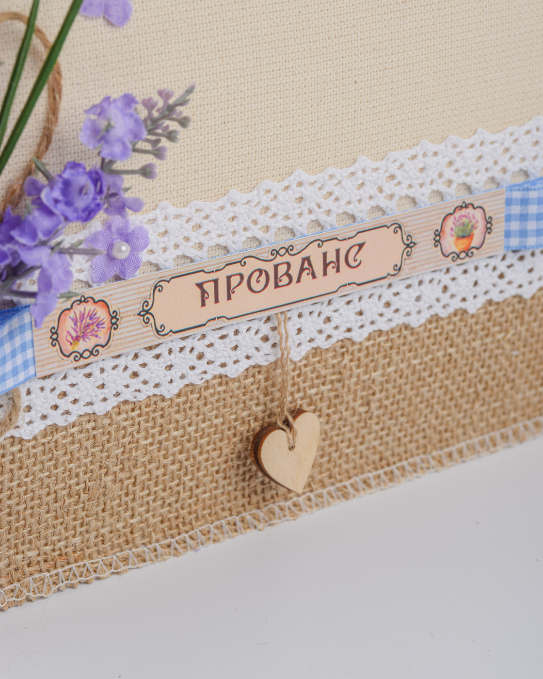 Маленькая свадебная солонка для встречи караваем "Сюита" из дерева с латексными розами, кружевом и атласным декором в белой и лиловой гамме