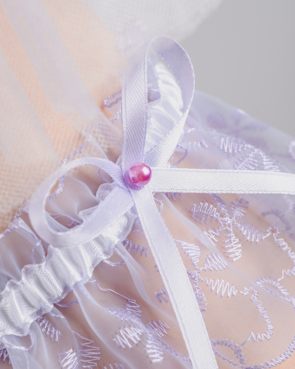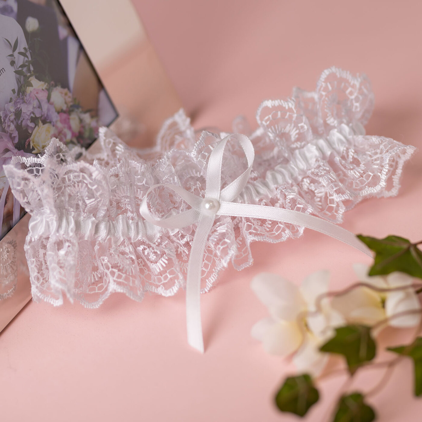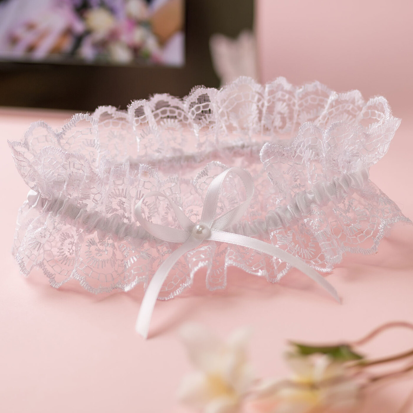 Дизайнерская подвязка для девушки на свадьбу, фотосессию и свидание из черного кружева с бантом из атласной ленты и темной бусиной