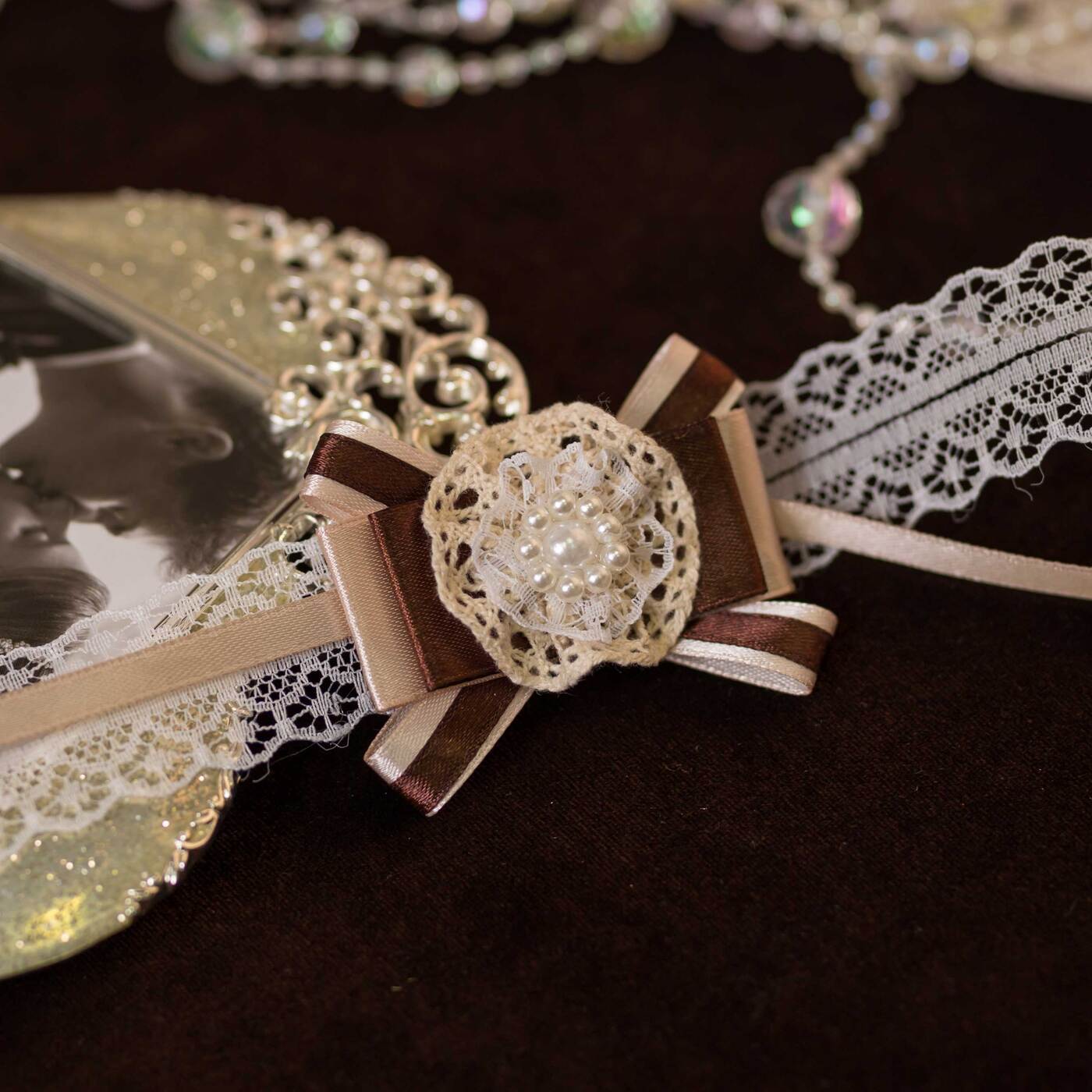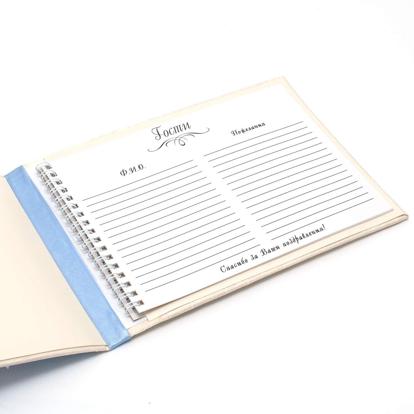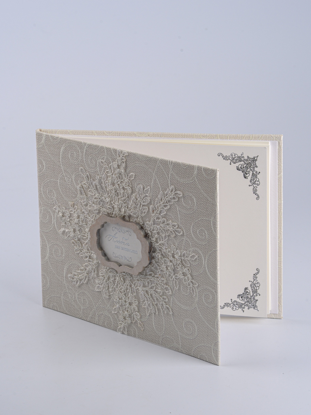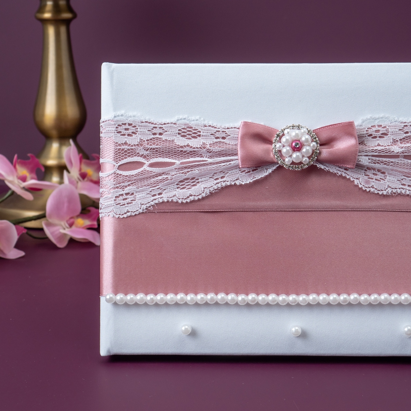 Свадебная книга для записи поздравлений молодоженам "Жемчужная фантазия" с кружевным декором, перламутровыми бусинами и атласным бантиком