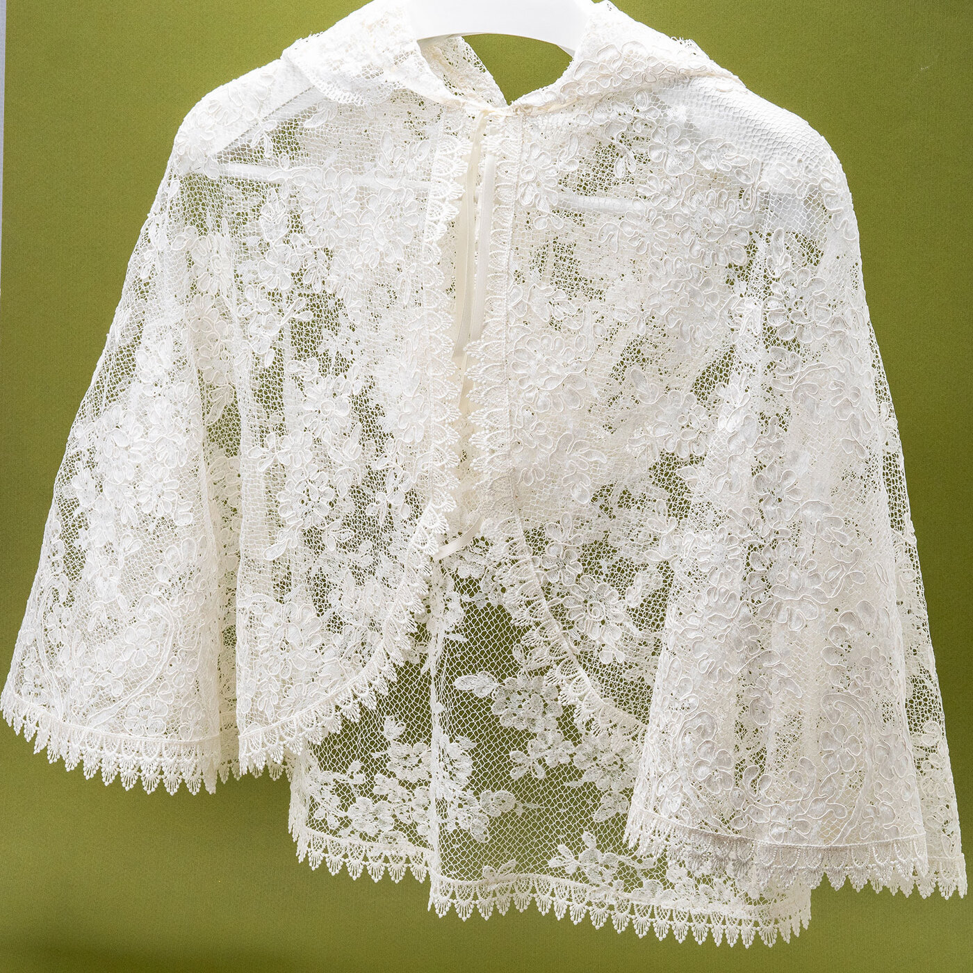 Кружевная накидка невесты с капюшоном для венчания в церкви из воздушной ткани айвори с кружевной вышивкой и ажурными оборками