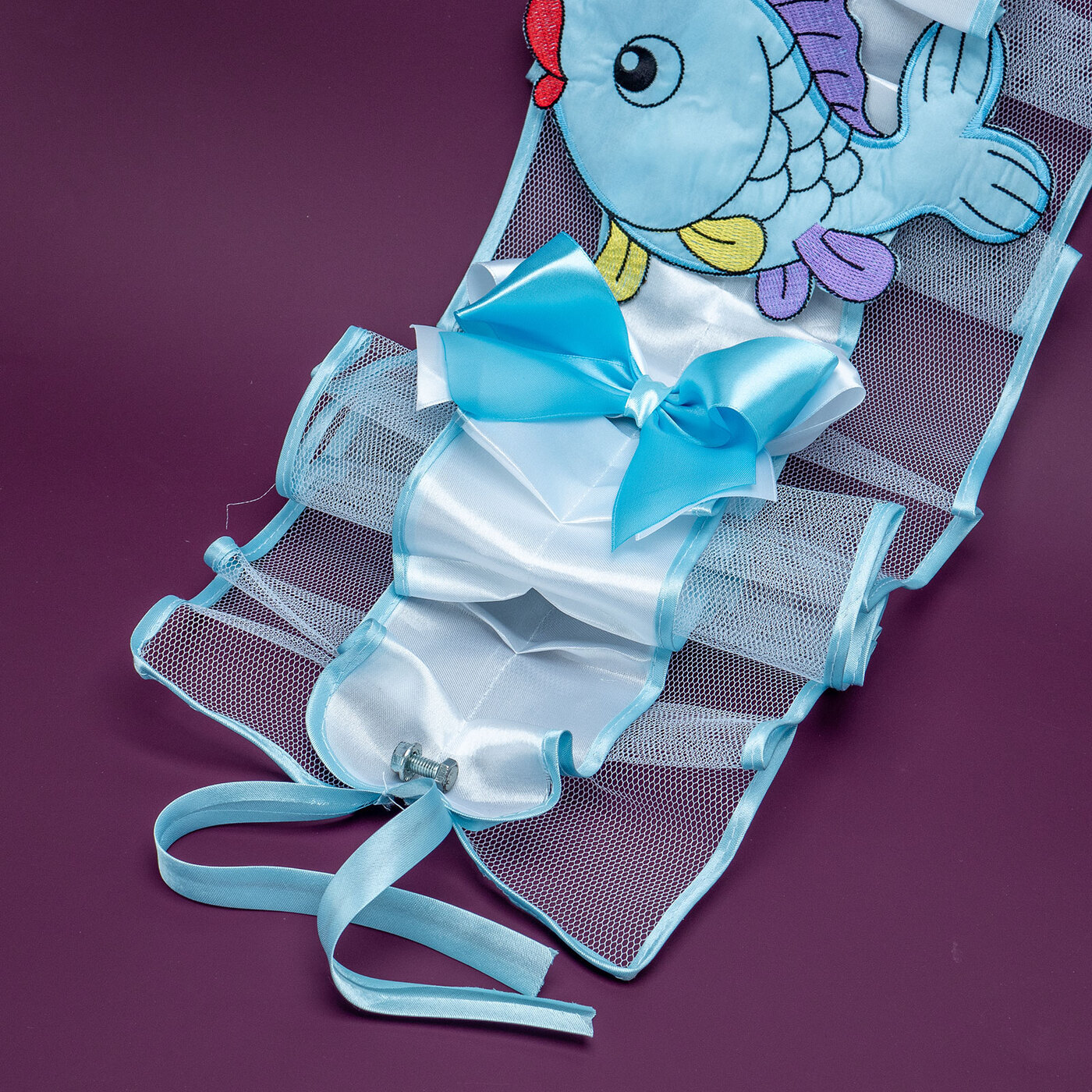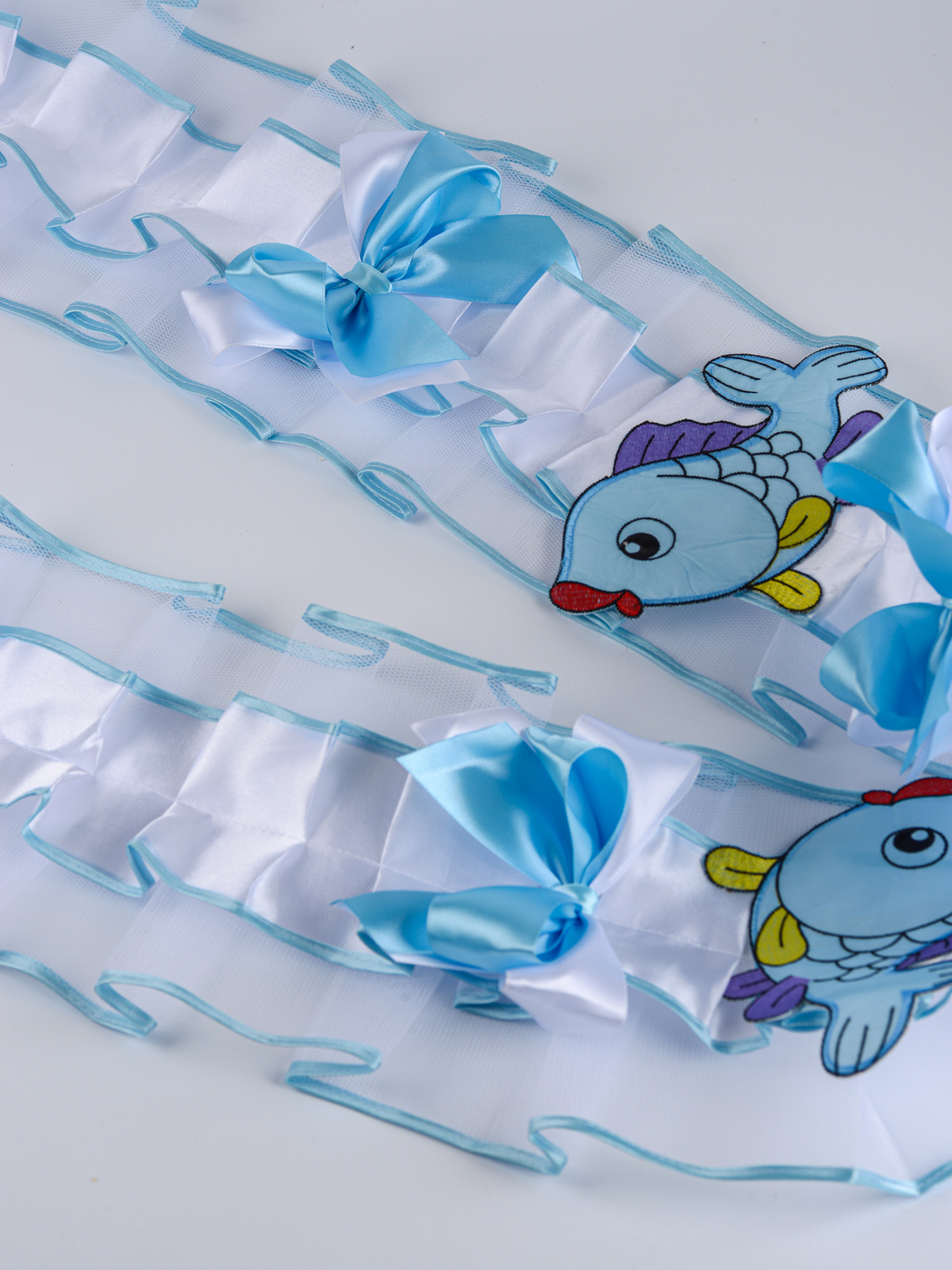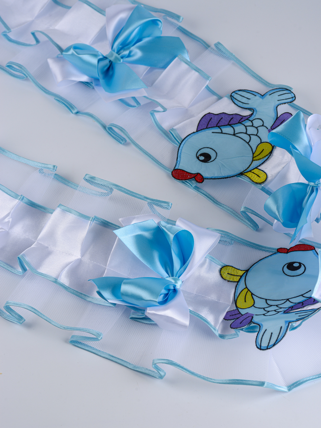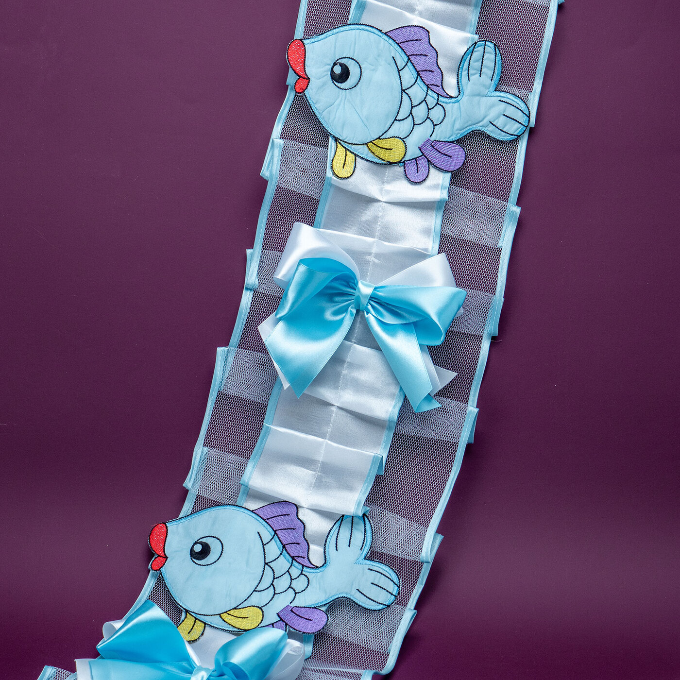 Голубая лента на автомобиль для встречи мамы и малыша из роддома "Моя рыбка" из белого фатина, голубого атласа и яркой аппликации (для сына)