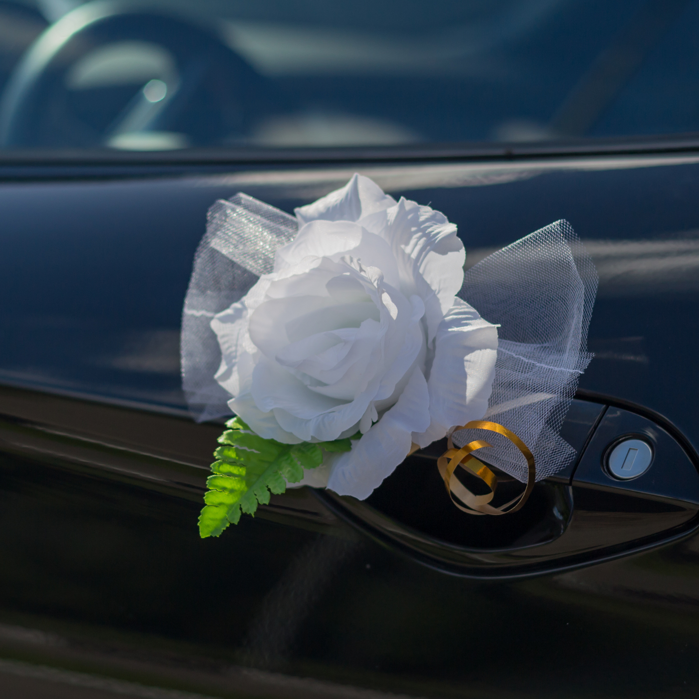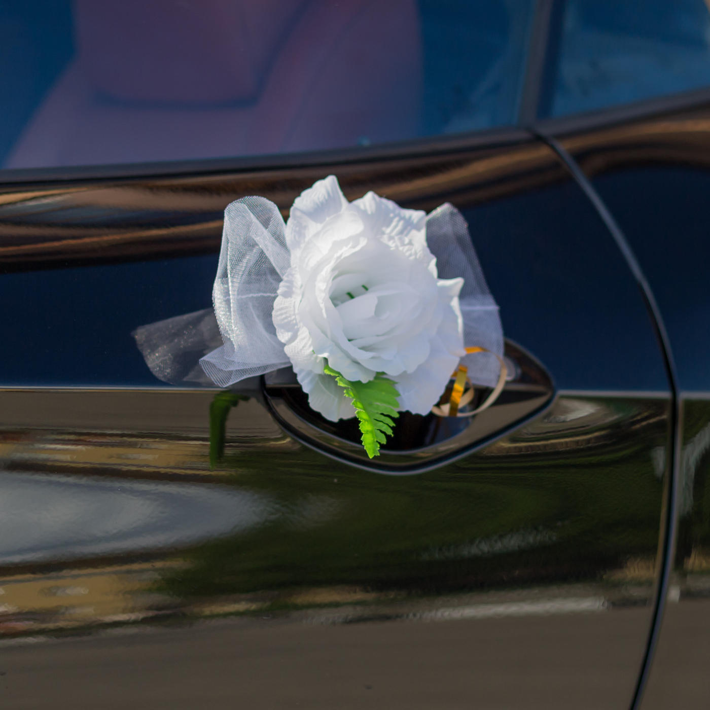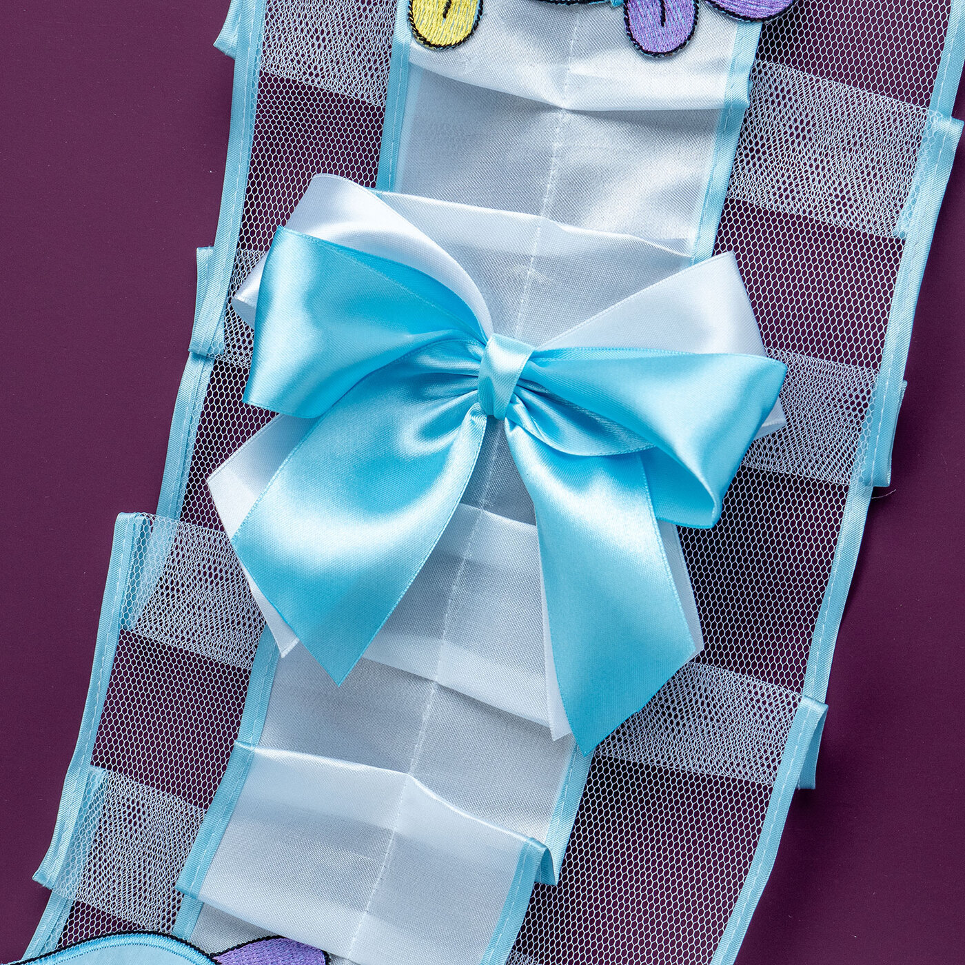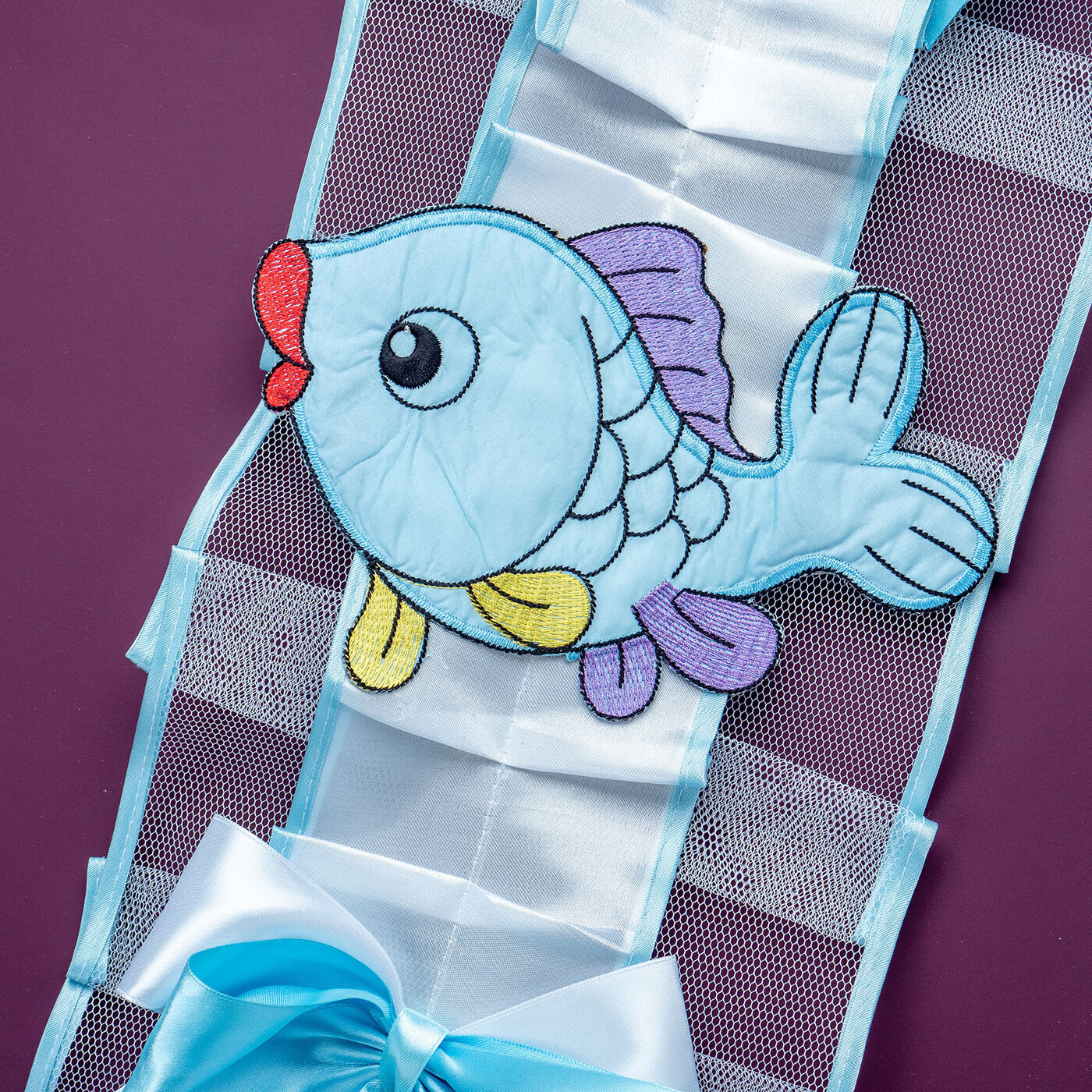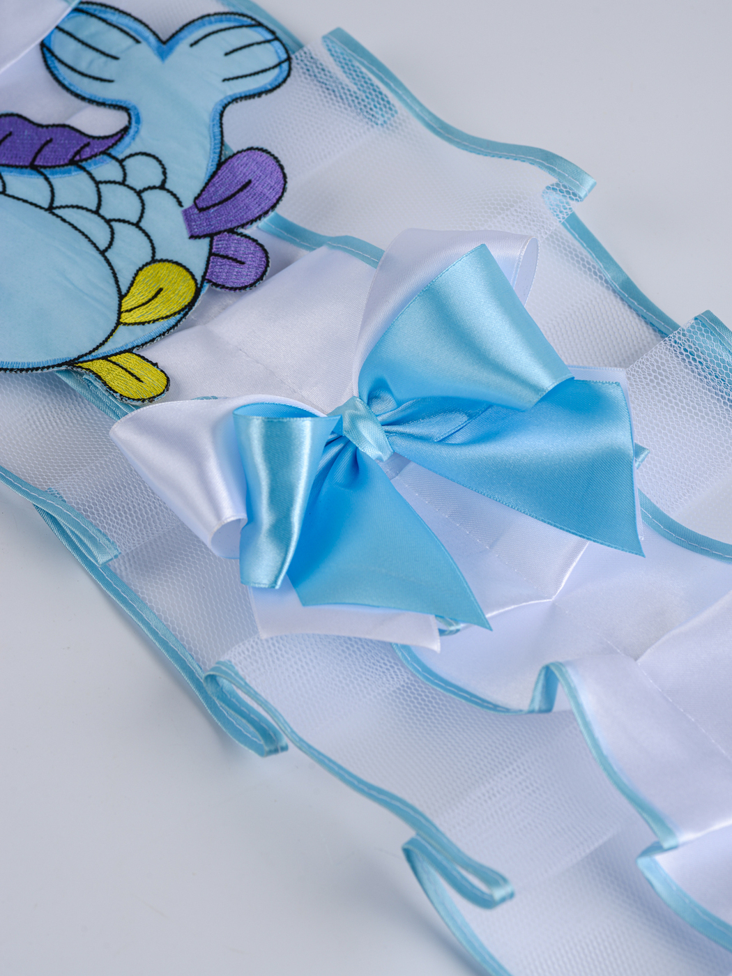 Голубая лента на автомобиль для встречи мамы и малыша из роддома "Моя рыбка" из белого фатина, голубого атласа и яркой аппликации (для сына)