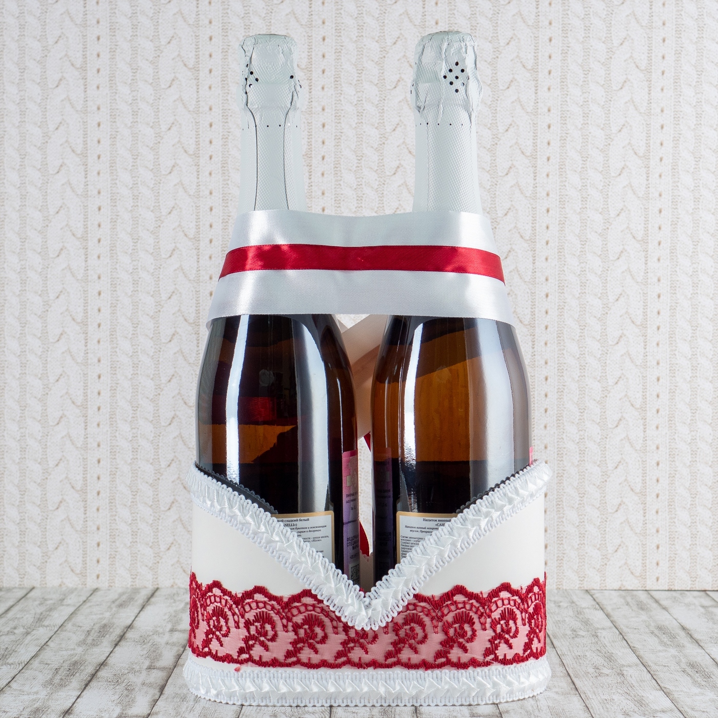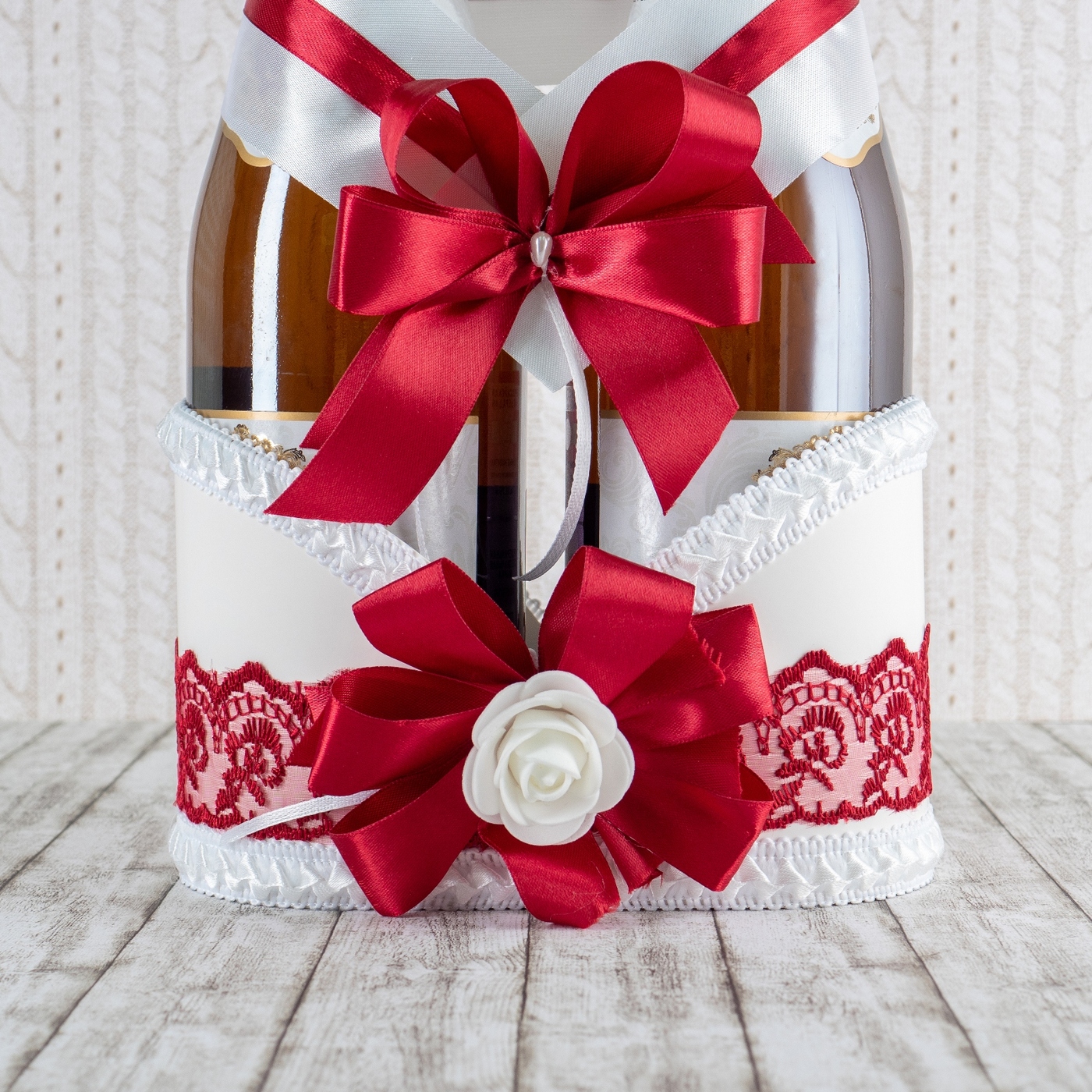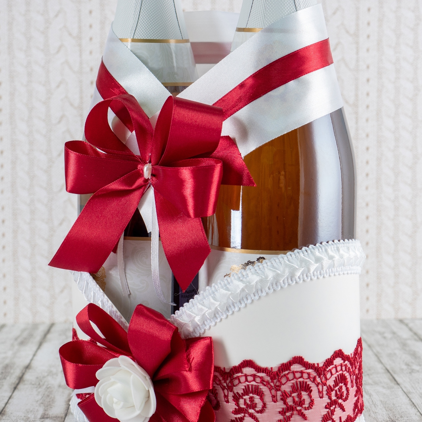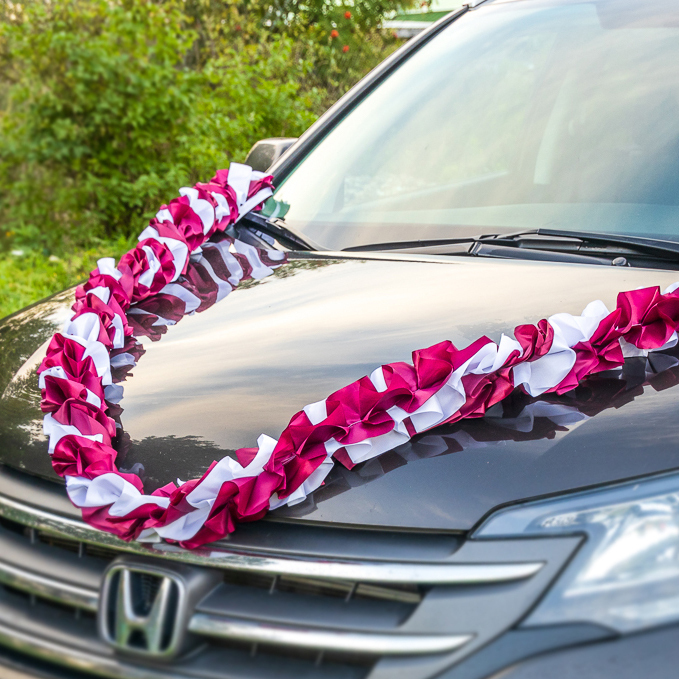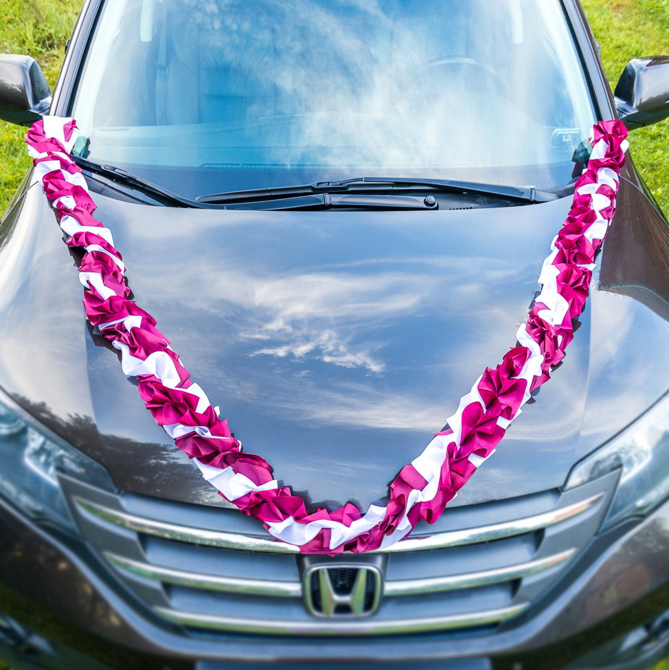 Двухцветная лента - рюш из атласной ленты на капот свадебной машины, белая и ярко-розовая, 3 метра