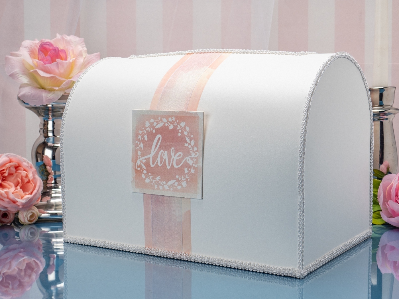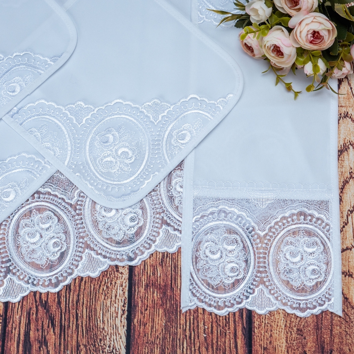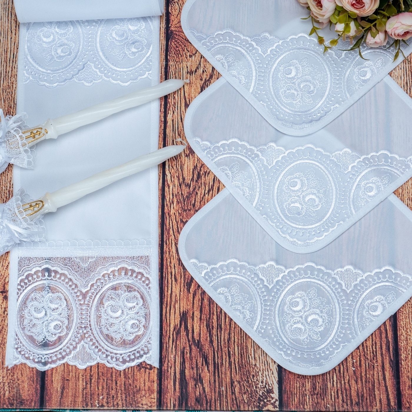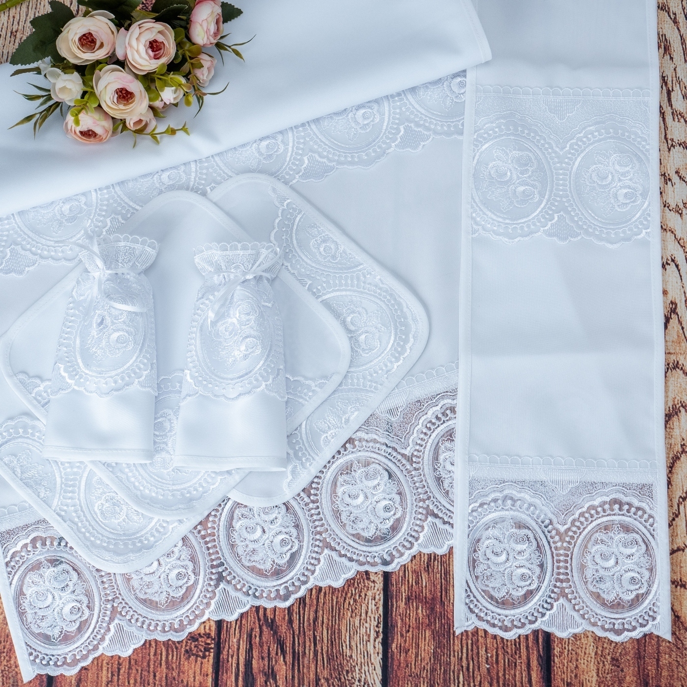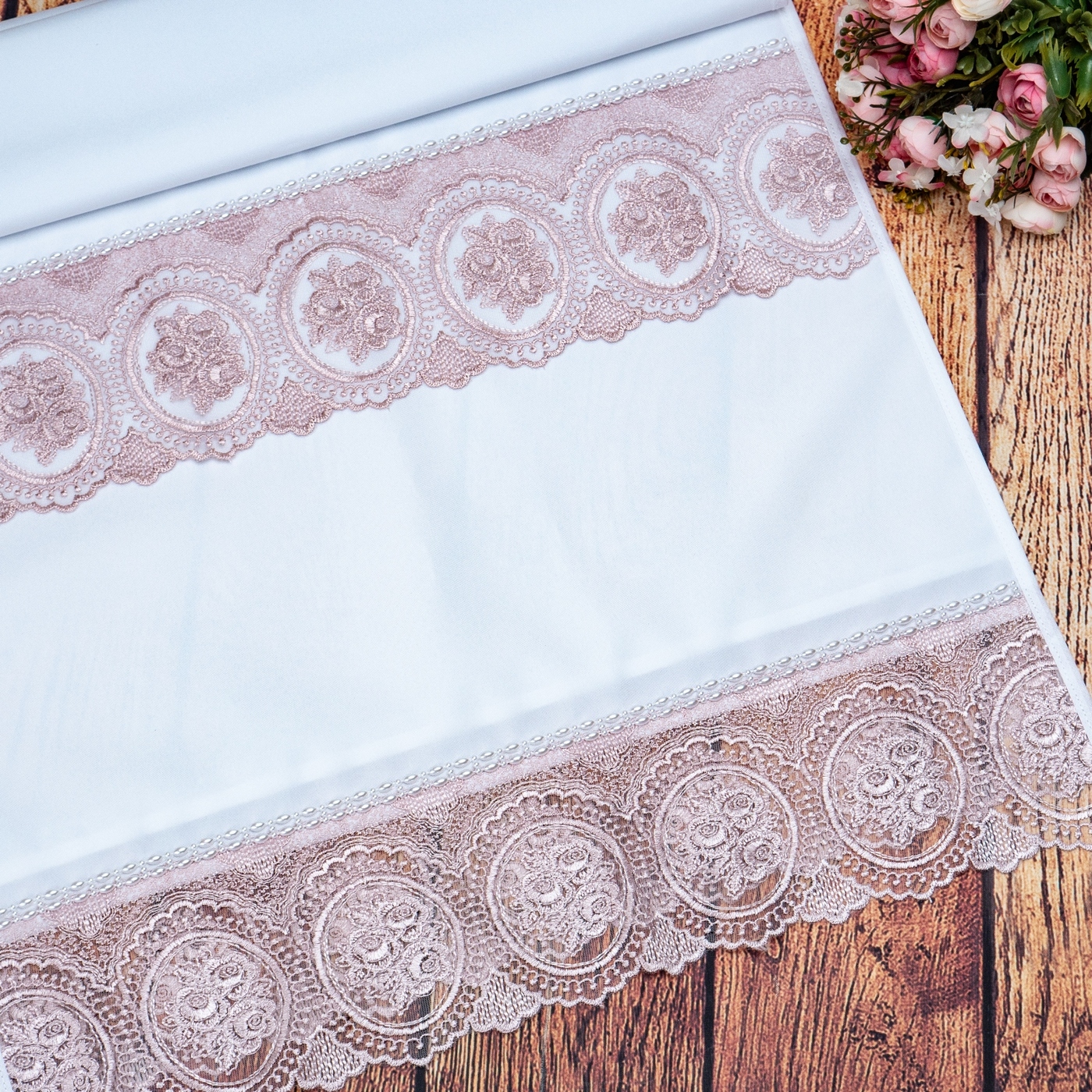 Атласный рушник белого цвета с пудровым розовым кружевом, на церковные праздники, свадьбу, венчание и хлебосольную встречу молодоженов