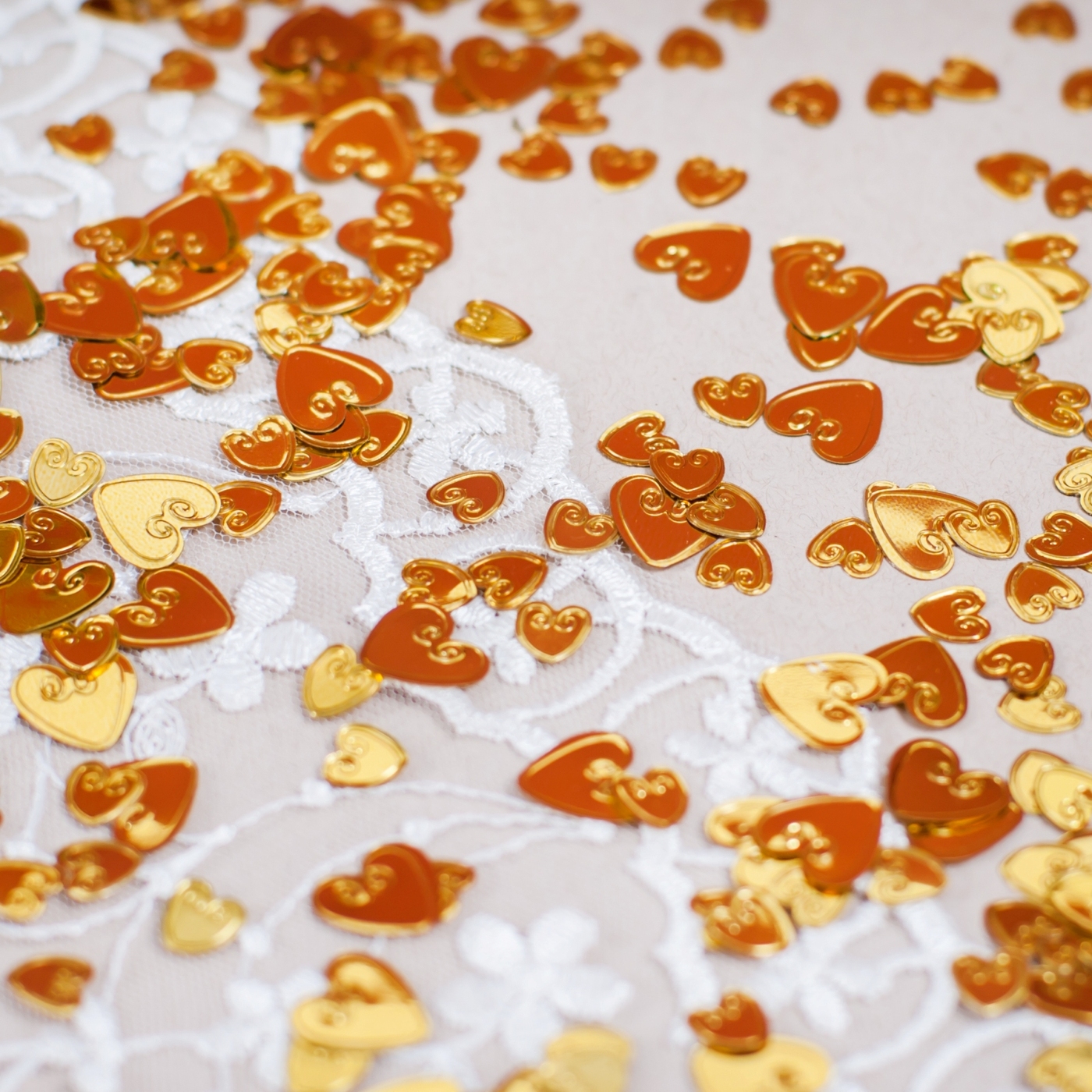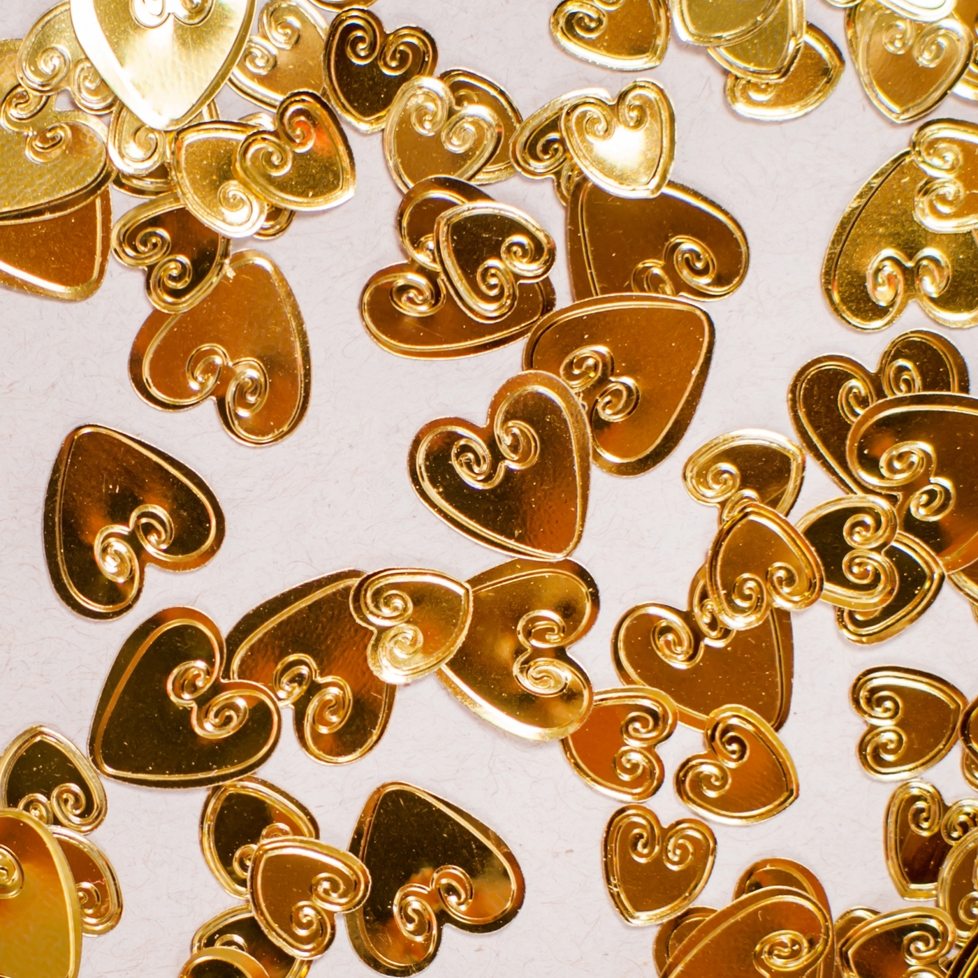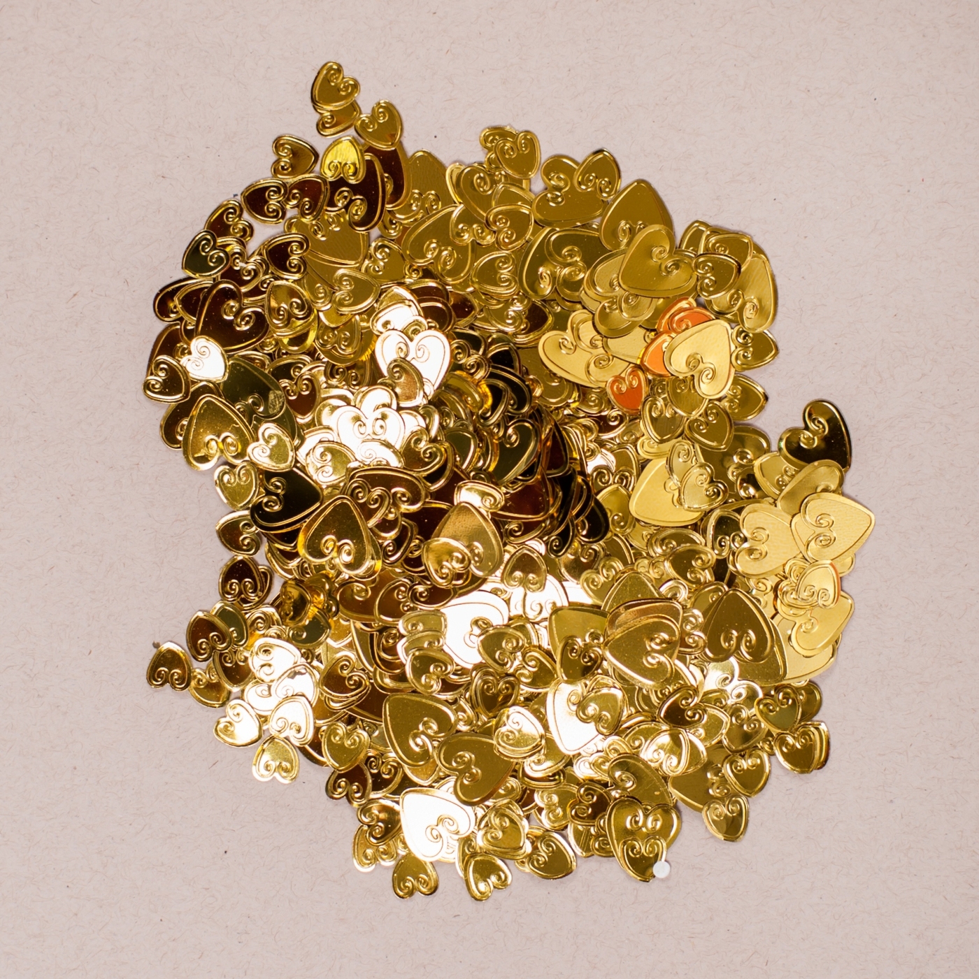 Золотое конфетти - сердечки с вензелем "Золотая свадьба" на юбилей 50 лет семейной жизни и осыпания молодоженов после ЗАГСа, 5 упаковок