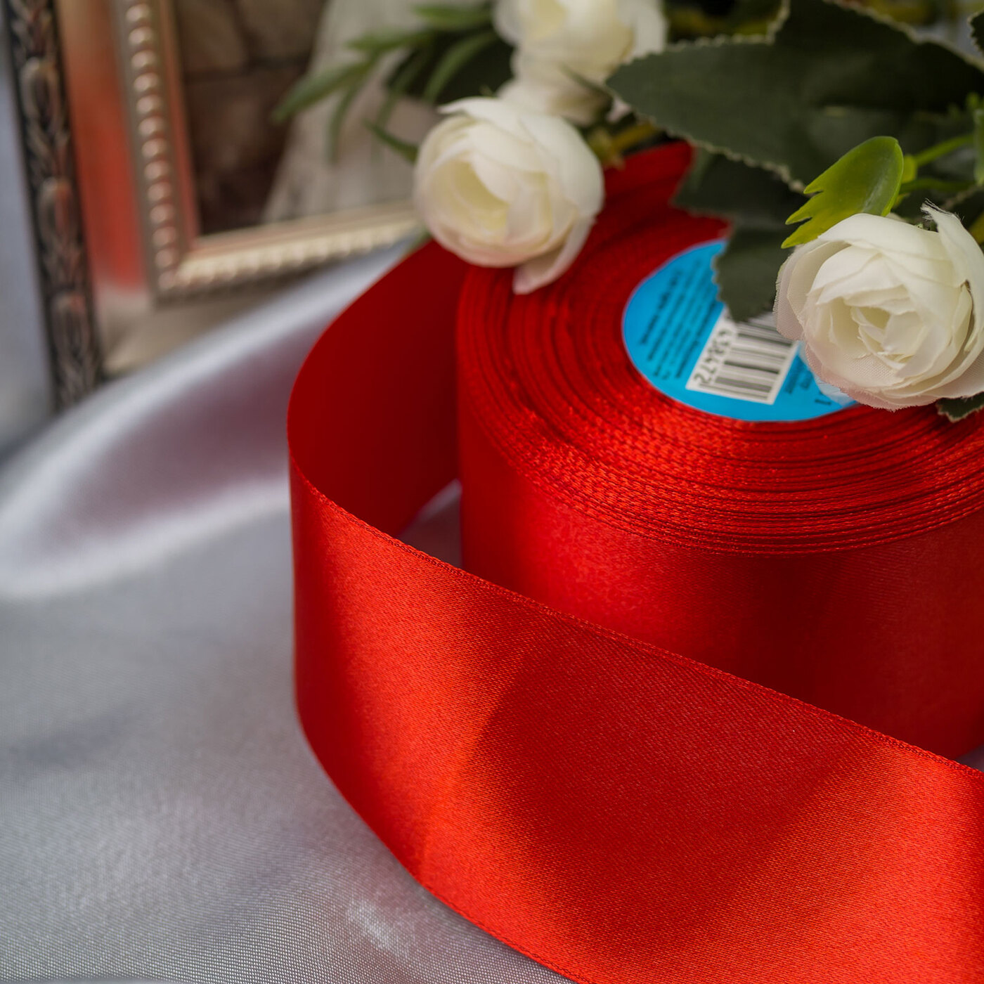 Широкая атласная лента "Алая" для декора свадьбы и подарков, 50 мм