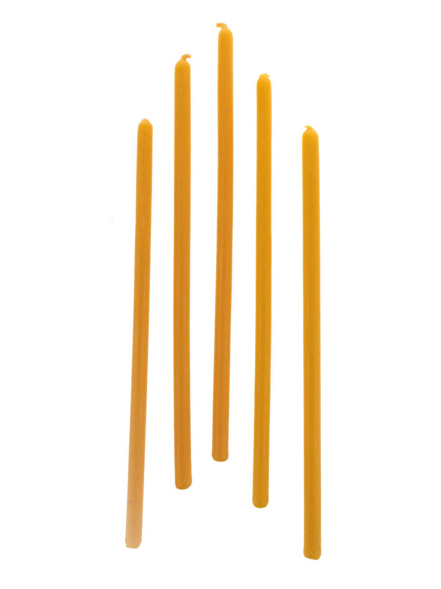 Свечи из воска, ЖЕЛТАЯ В СЕРЕБРЕ, набор 5 штук, 4г*5, высота 15 см, диаметр 0,5 см, 1ч