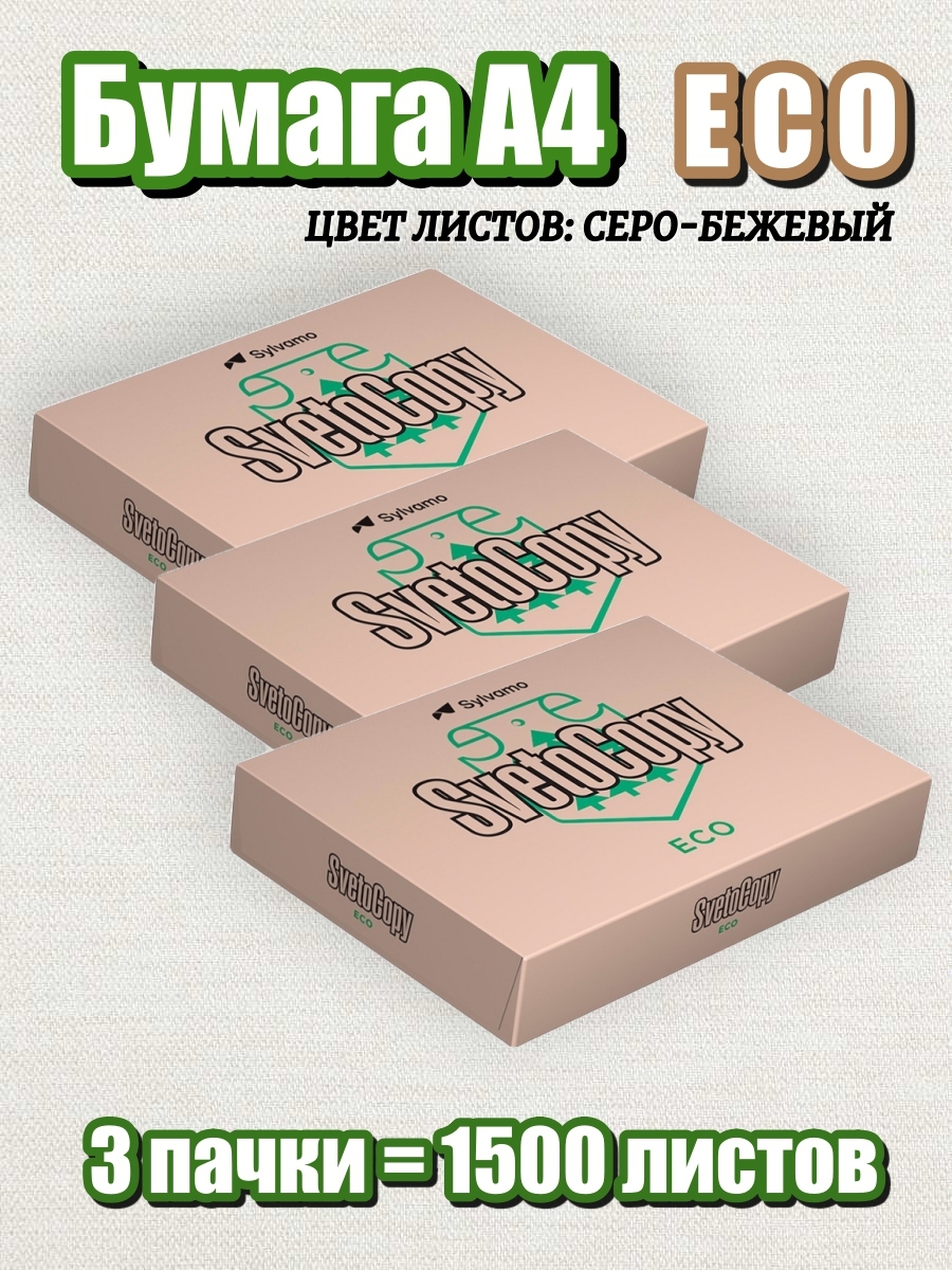 Бумага для принтера А4, неотбеленная, SvetoCopy ECO для офиса, 3 пачки (1500 листов)