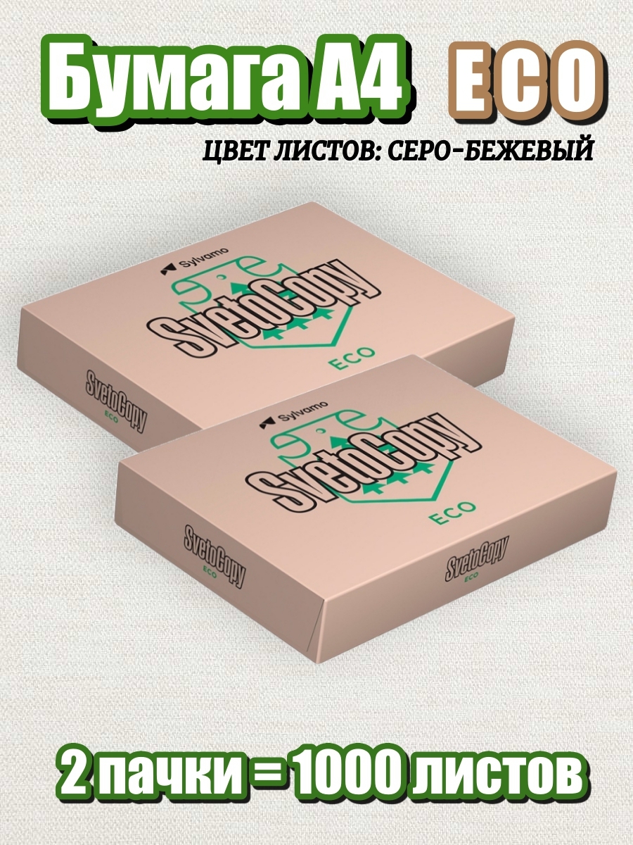 Бумага для принтера А4, неотбеленная, SvetoCopy ECO для офиса, 2 пачки (1000 листов)