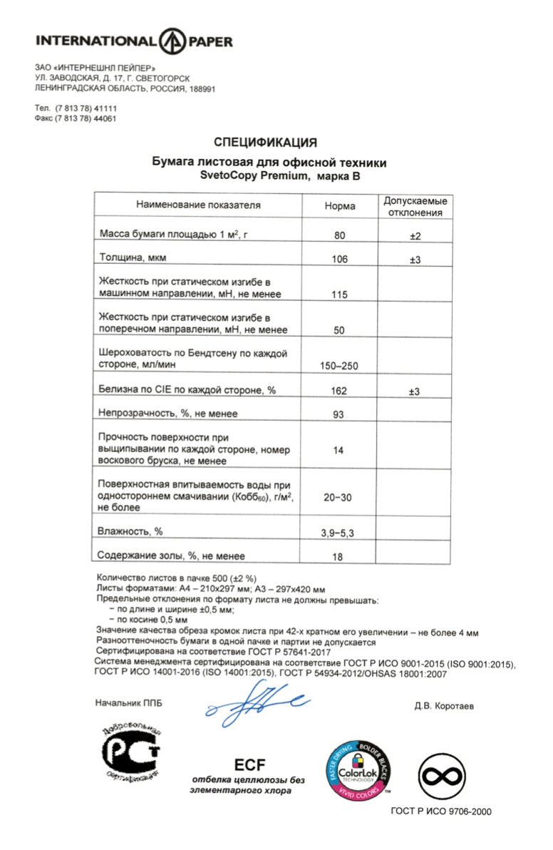 Бумага SvetoCopy Premium А4 офисная для принтера