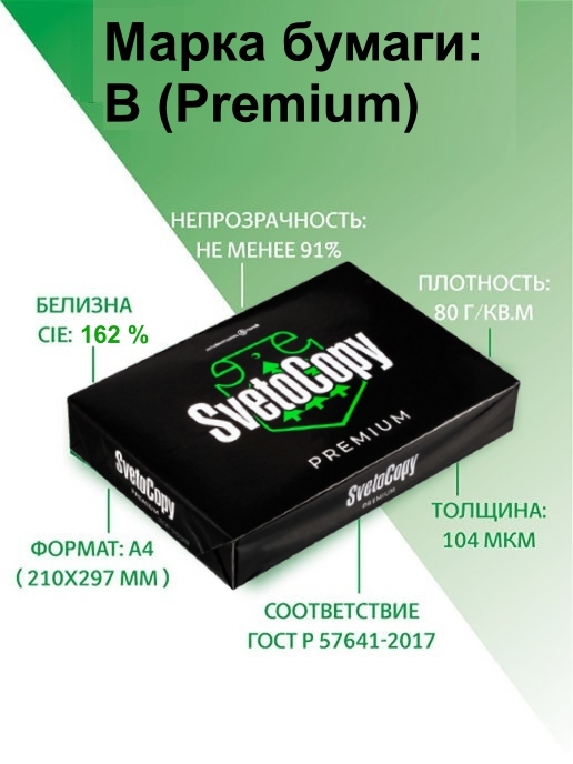 Бумага для принтера SvetoCopy Premium класс B, формат А4, 500 листов