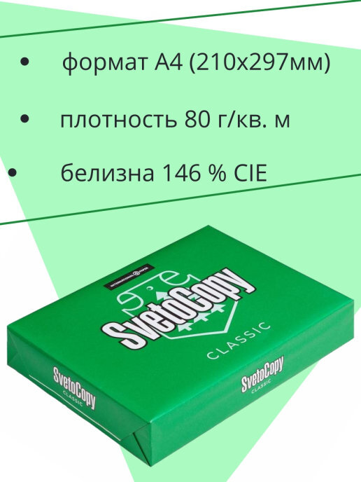 Бумага для принтеров и копиров Светокопия формат А4 (500листов) (80гр/м2)