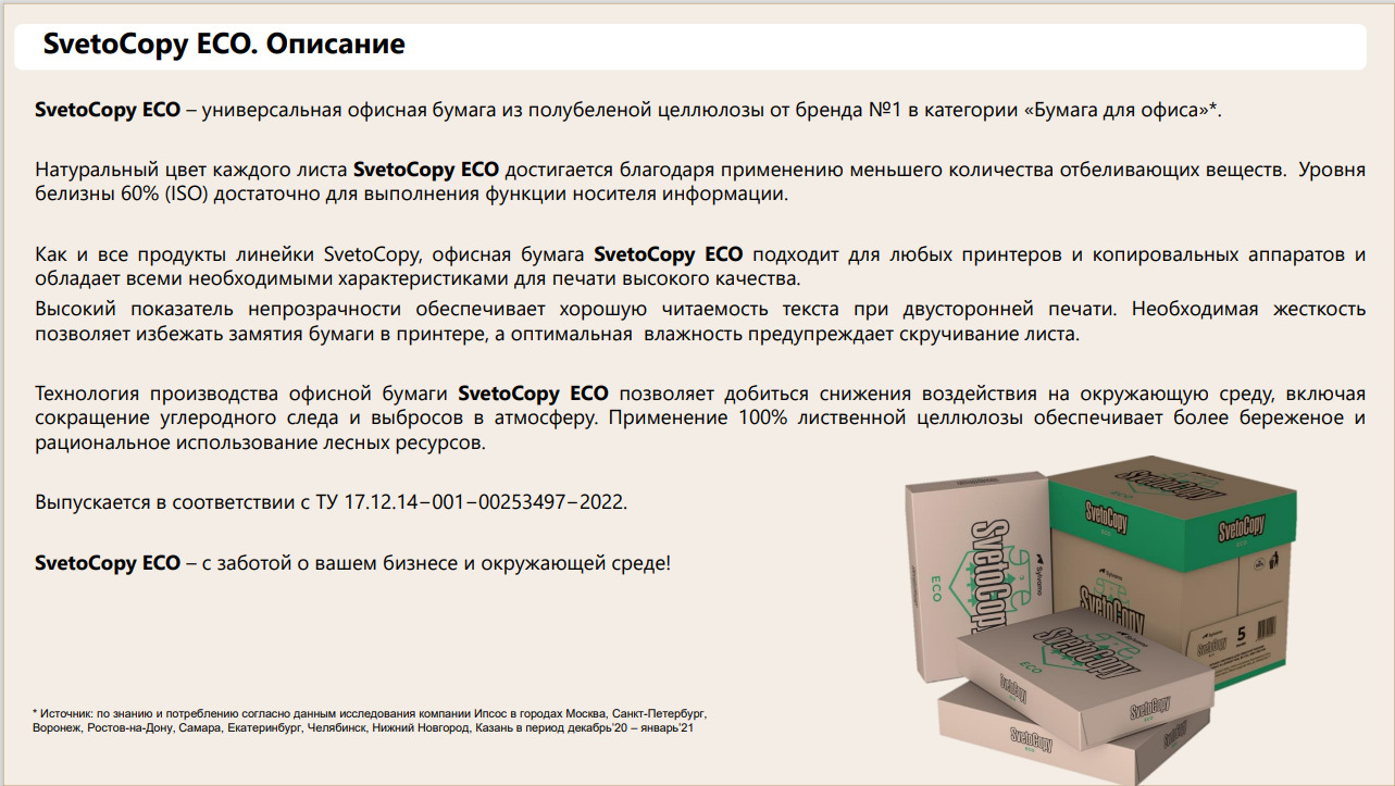 Бумага офисная А4, 80 г/м2, 500 л., SVETOCOPY ECO, белизна 60%, Sylvamo