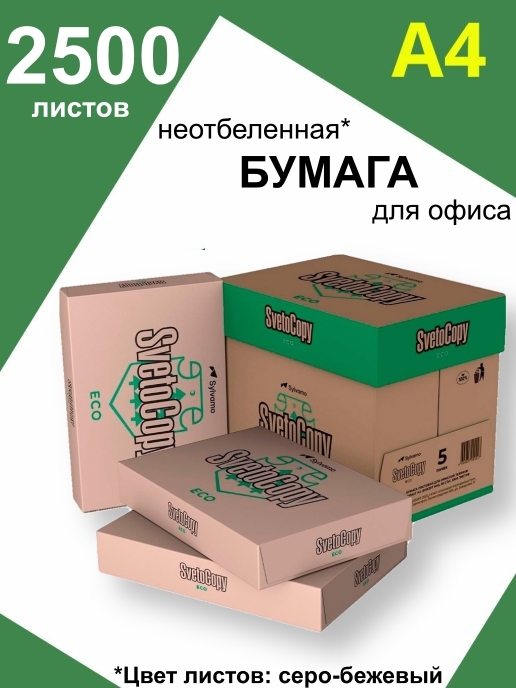 Бумага для принтера А4, неотбеленная, SvetoCopy ECO, 5 пачек (2500 листов)